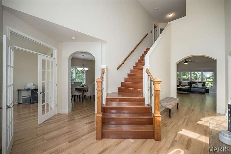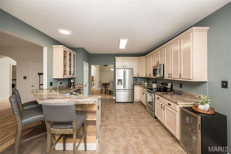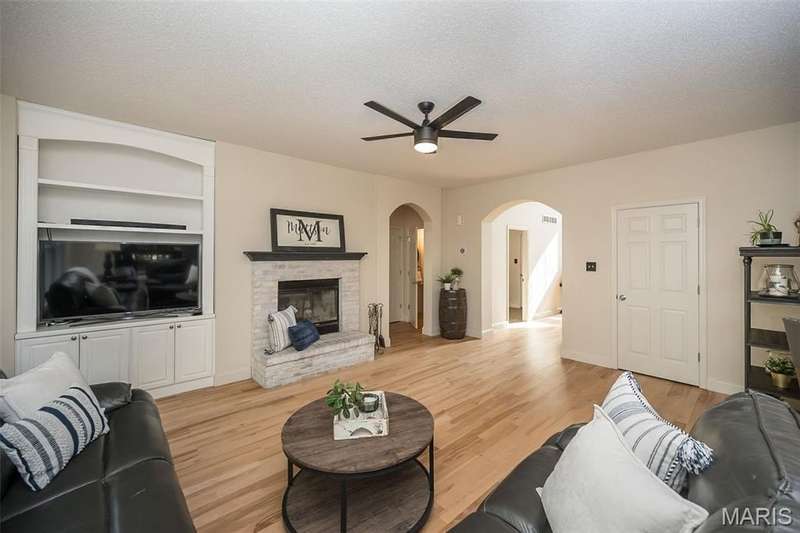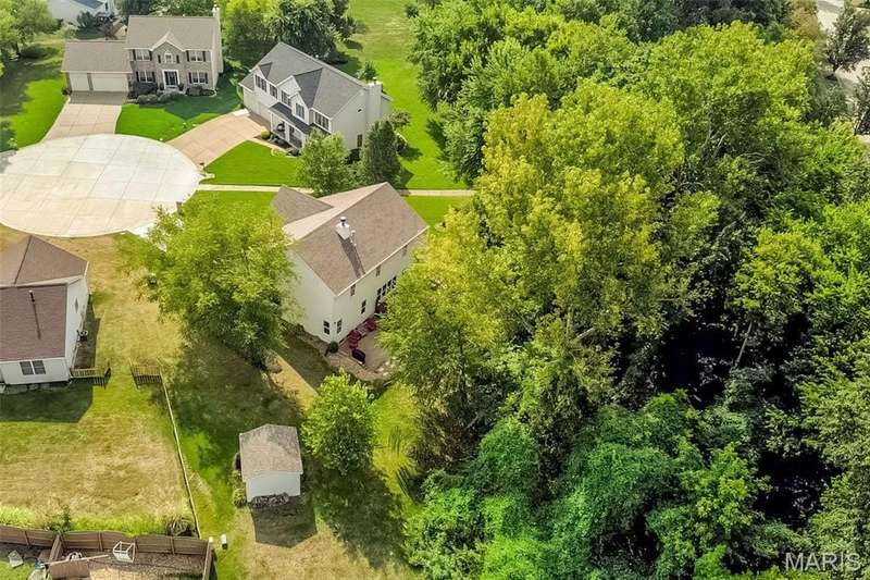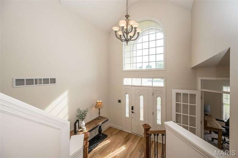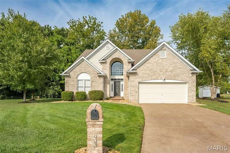 Welcome to this expansive 1.5-story home in the Villages of Dardenne, offering nearly 3,400 sq ft of living space designed for comfort, functionality, and entertaining. The heart of the home is the spacious kitchen, complete with 42' cabinets, gorgeous granite countertops, a breakfast bar, SS appliances, and a walk-in pantry. The inviting living room with a wood-burning fireplace, formal dining room, and private office with French doors create the perfect balance of style and practicality. The main floor primary suite is a true retreat featuring a large walk-in closet, dual sinks, a soaking tub, and separate shower. Main floor laundry and recently refinished hardwood floors add everyday convenience and charm. Upstairs, you’ll find three additional bedrooms—two with walk-in closets—a full bath, and a versatile flex room ideal for a gym, homeschool space, family room, craft area, or even an extra bedroom. Step outside to enjoy your private backyard oasis with a large deck, patio, and thick tree line offering peace and seclusion. An oversized 2-car garage and a 12x12 shed on a concrete pad provide extra storage and functionality. The home is equipped with 3.5 year new dual HVAC systems and a newer roof. Living in the Villages of Dardenne means access to multiple neighborhood pools, a clubhouse, and tennis courts. Plus, the subdivision sits adjacent to The Links at Dardenne Golf Course, making it the perfect home base for both relaxation and recreation.