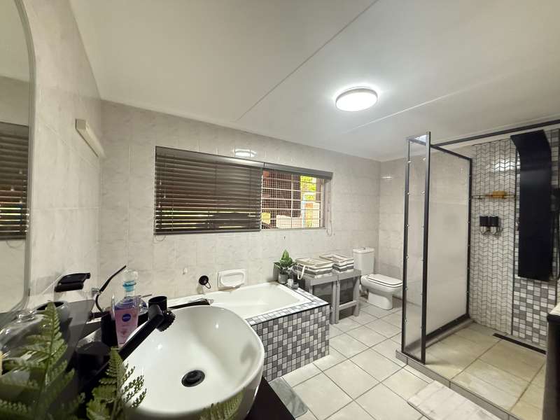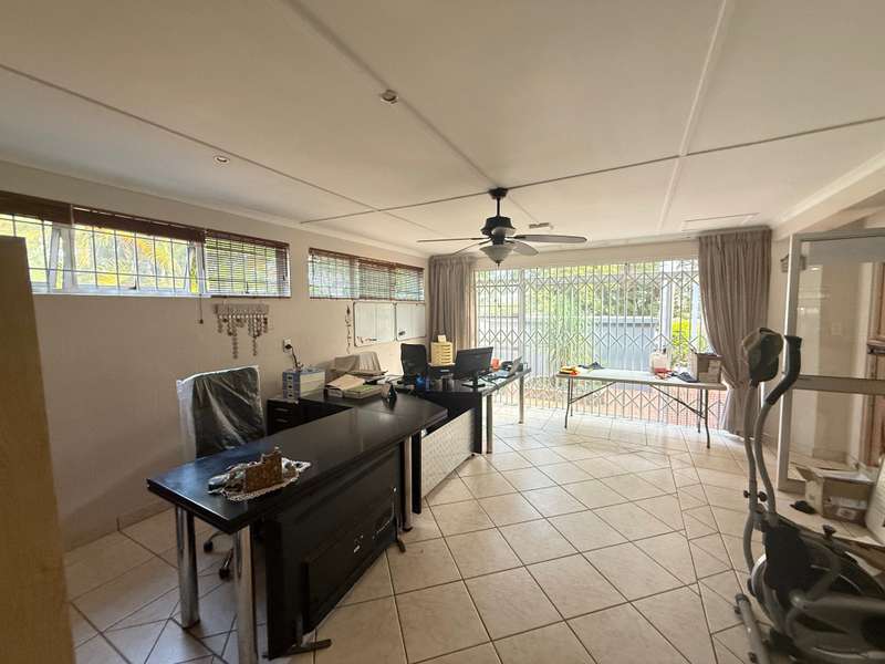 This three-bedroom residence is the perfect balance between relaxed family living and versatile income-generating opportunities. Two of the bedrooms each feature full en-suite bathrooms and flow seamlessly into private lounges or studies, creating ideal spaces for work, relaxation, or multi-generational living. The open-plan kitchen integrates with a welcoming lounge and dining area, which extend effortlessly onto a large, covered patio, perfect for year-round entertaining. The back garden is a true retreat, complete with a Lapa and a large Jacuzzi for relaxation and social gatherings. Practicality is well catered for with three garages, one single and a double garage, along with a store and workroom. Added extras include two 2,500-liter water tanks, an alarm system with beams, and security cameras for peace of mind. With its adaptable layout, this home can easily be reconfigured to provide additional rental units, making it an excellent option for accommodating company staff, generating rental income, or enjoying as a comfortable primary residence