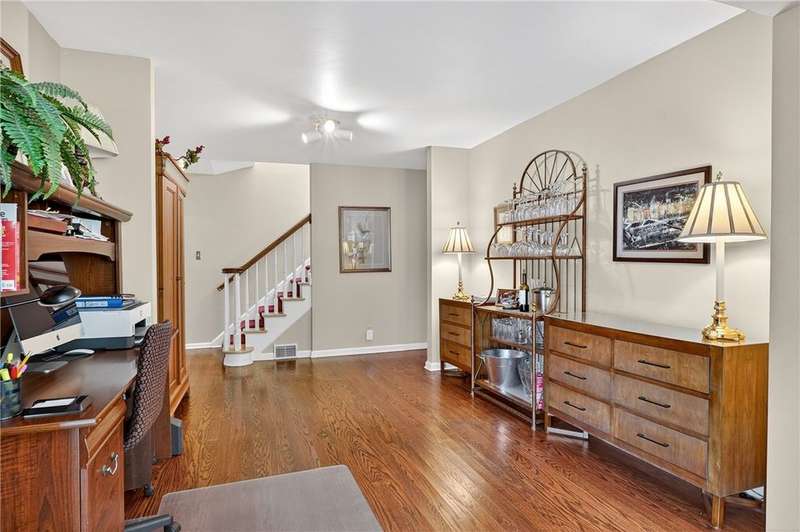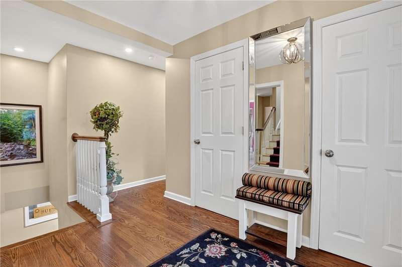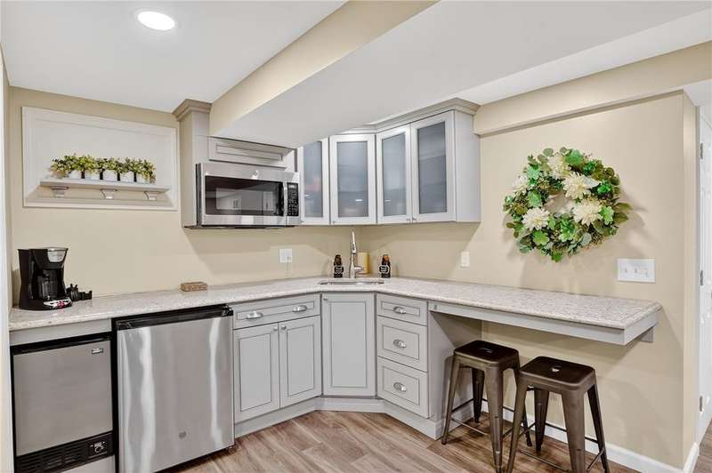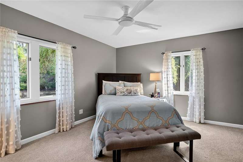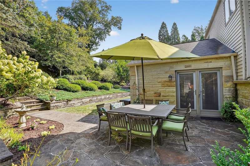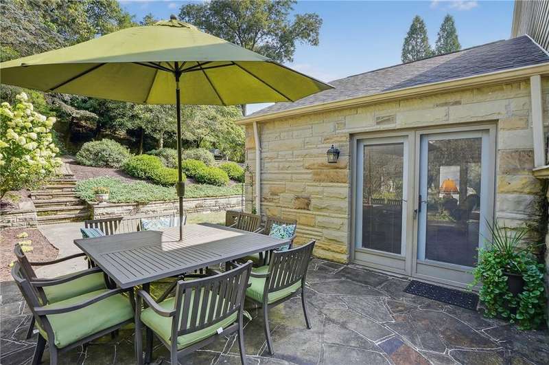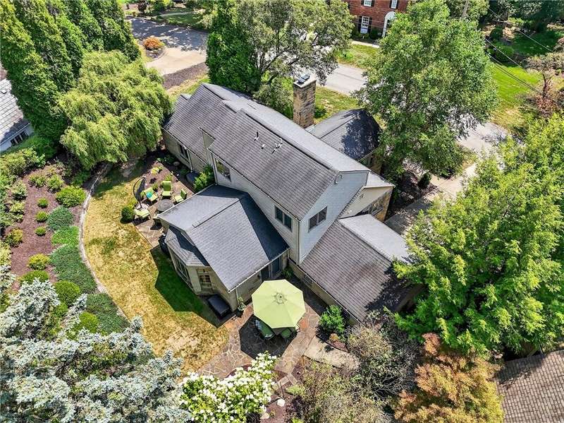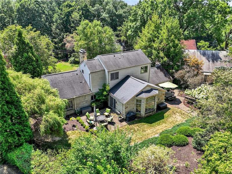 Located on a private street in the Mount Lebanon School District, this charming stone home backs up to Twin Hills Park, offering nearly half an acre of privacy and natural beauty. Ideally located just moments from the shops and restaurants on Beverly Road, this residence blends convenience with tranquility. Exquisite landscaping frames the property, complemented by two beautiful flagstone patios that invite outdoor living and entertaining. Inside, the updated primary suite and an additional bedroom on the main floor offer comfort and ease. Upstairs, you'll find two generously sized bedrooms and a full bath, perfect for family or guests. The modern kitchen, featuring new appliances, opens to a vaulted family room for a spacious, airy feel with direct access to the patios. The finished lower level includes a versatile game room with a kitchenette. Bright, sunny, and thoughtfully designed, this home combines privacy, elegance, and a prime location for your ideal lifestyle.