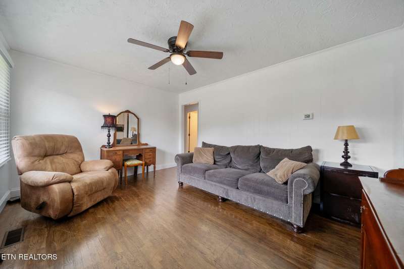 Charming Renovated Rancher on Private 1-Acre Lot in Halls - 1,072 Sq Ft! Adorable 2-3-bedroom, 1 full bath ranch-style home with 1,072 sq ft of living space, nestled on a quiet and private 1-acre lot in desirable Halls with no restrictions—bring your RV, boat, or outdoor toys! This flexible property features original hardwood floors, a bright sunroom, and a versatile layout. Recent updates include new HVAC, new exterior doors, new shutters, and a tankless water heater for energy efficiency and endless hot water. Roof is 11 years old. Detached one-car garage is heated and cooled—perfect for a workshop, or studio—plus a full-size detached garage in the back. RV parking space available on the property. Washer and dryer convey. Peaceful, level lot with plenty of outdoor space. Convenient to shopping, schools, and restaurants. A rare find combining comfort, flexibility, and freedom—no HOA, no restrictions! Schedule your showing today!