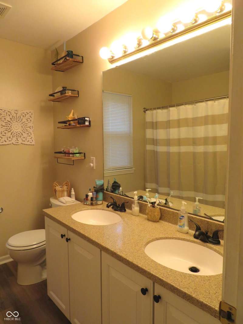 Gorgeous home with beautiful wooded view that extends beyond fenced back yard! As you enter the home you are greeted with a large open foyer with hardwood floors and high ceilings, to the left you will enter the formal dining room with trey ceiling & crown molding that leads to the kitchen featuring 9ft ceiling, hardwood flooring, granite counters w/tiled backsplash, 48" top cabinets, more crown molding, r/o water at sink and bottom cabinets w/pull out shelving! Next you'll find the breakfast room with bay area leading to the upper level deck, then great room with a 2 story ceiling and a view of the catwalk! The main level primary bedroom w/15 ft ceiling, newly remodeled bath with tiled/glass shower, stand alone soaking tub, quartz double sinks, private commode & walk in closet. 3 upper levels bedrooms all have great closet space, BR#4 could be a 22x14 bonus room. The finished walk-out basement also has full sized windows! You'll forget you are in a basement with the cozy gas fireplace in the family area! There are currently spaces for an office area, and rec area. Seller has moved laundry from main level mudroom to the basement for more laundry space and can be easily moved back. All utilities are located in the basement as well as a full bath! Tons of storage and all attached shelving can stay!Start your day with morning coffee on the upper level deck, end your day on the patio protected from the outside world by the woods and creek behind your home! Make your appointment today! You won't be disappointed!