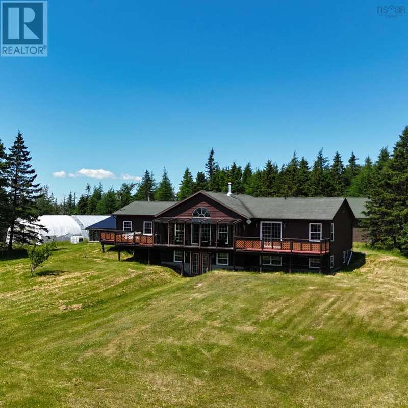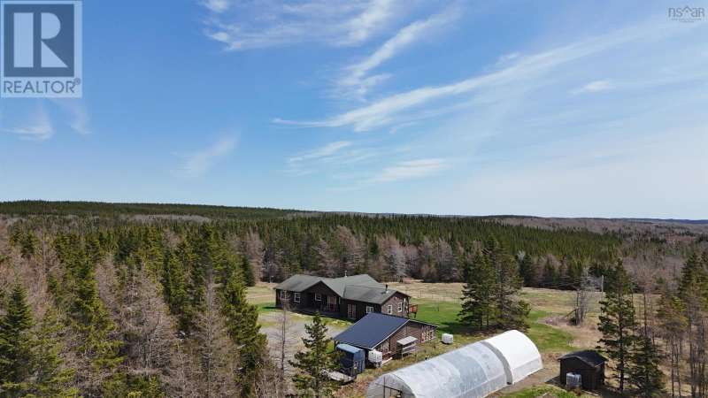 Experience the serene beauty of Cape Breton at 923 Soldiers Cove Road, where nearly 500 acres of pristine wilderness offer limitless possibilities. This extraordinary property is an ideal canvas for visionaries and entrepreneurs seeking peace, inspiration, and opportunity. Set amidst nature, this expansive estate features two custom-built Geo Domes and two charming Yurts, eachequipped with essential amenities to be hooked up, including septic systems, wells, and power lines. The foundation is laid, ready for you to personalize these unique structures into comfortable retreats or innovative business ventures. All are overlooking a small fresh water lake within the boundries of the property The main residence is a spacious, open-concept home, perfect for relaxation or entertaining. It includes three large bedrooms, featuring a luxurious master suite with a private sauna. An additional office space offers versatility for work or creativity. Outside, enjoy panoramic views through expansive windows, or unwind in the sun room or on the deck and soak in the tranquility. The property also includes a greenhouse, an oversized detached double garage, a barn, and a chicken coop, offering potential for many agricultural pursuits. Whether youre looking to create a private sanctuary, have a farm, or develop a business, 923 Soldiers Cove Road presents a rare opportunity. With endless potential limited only by your imagination, this property is your chance to shape your vision in the breathtaking beauty of Cape Breton. Located within 1 hour of Sydney and 20 minutes to St.Peter's, this is a great property. (id:2494)
