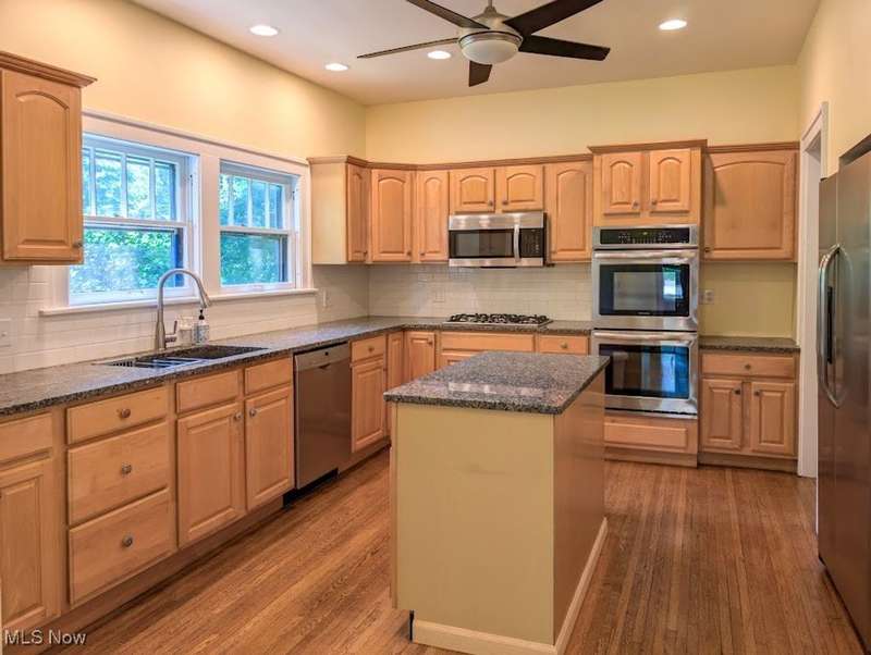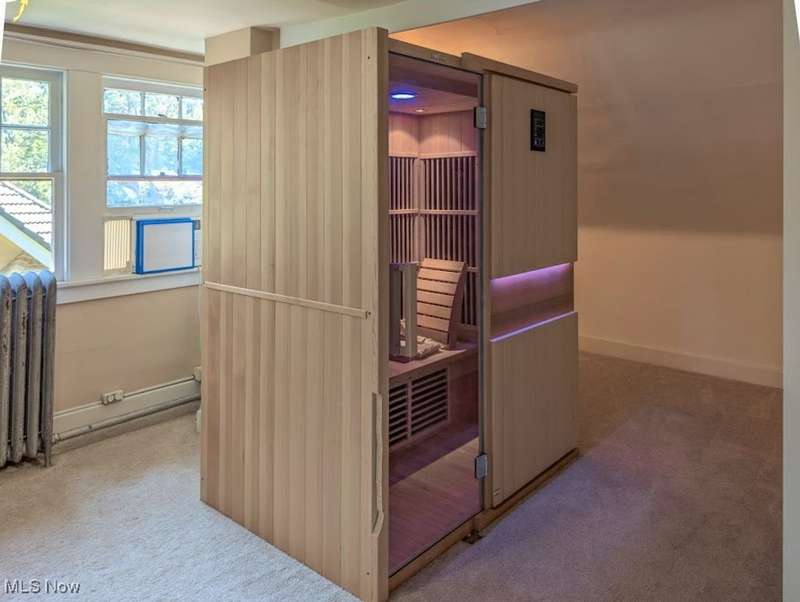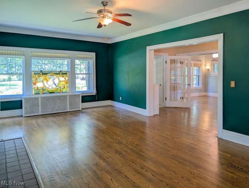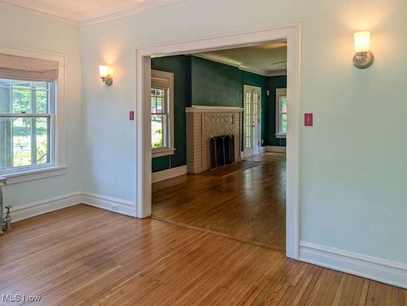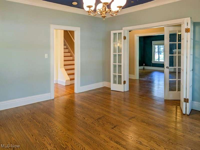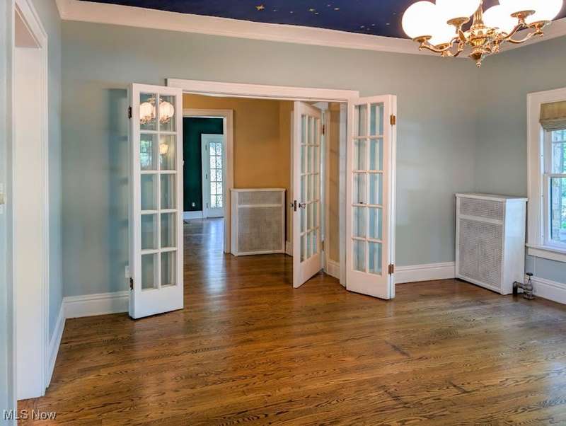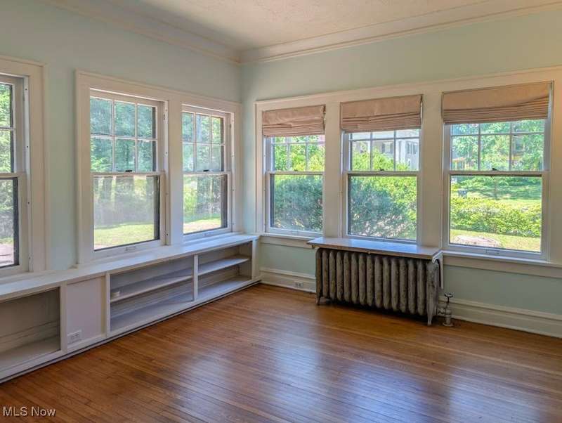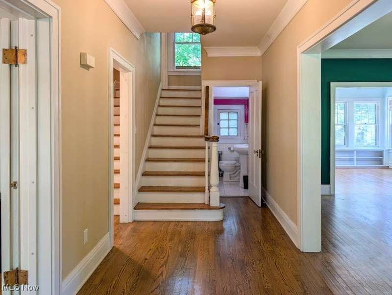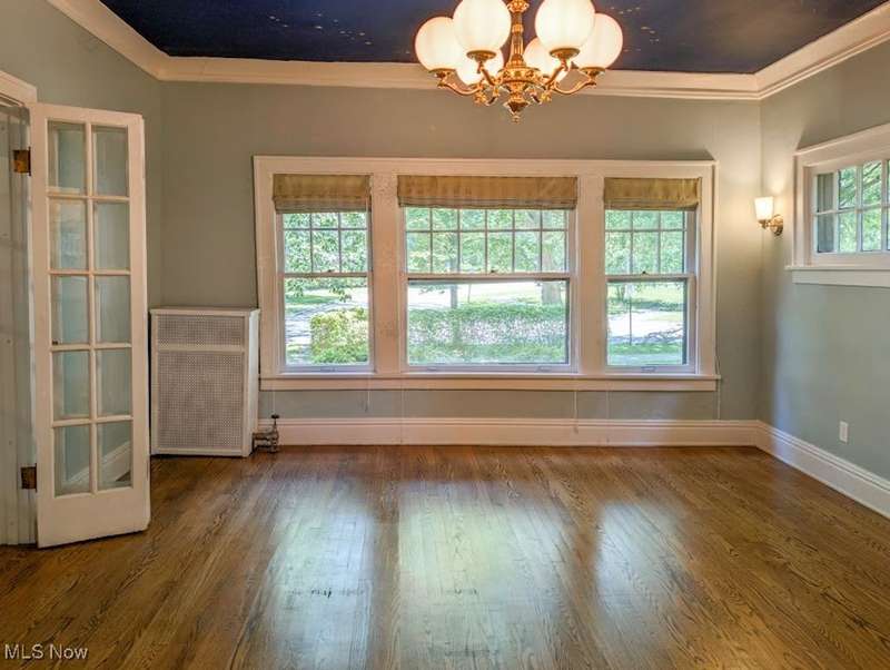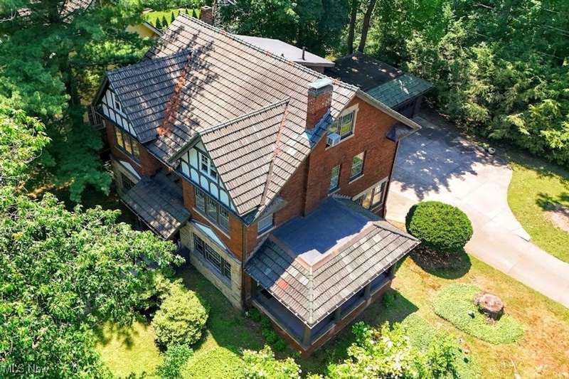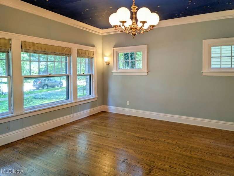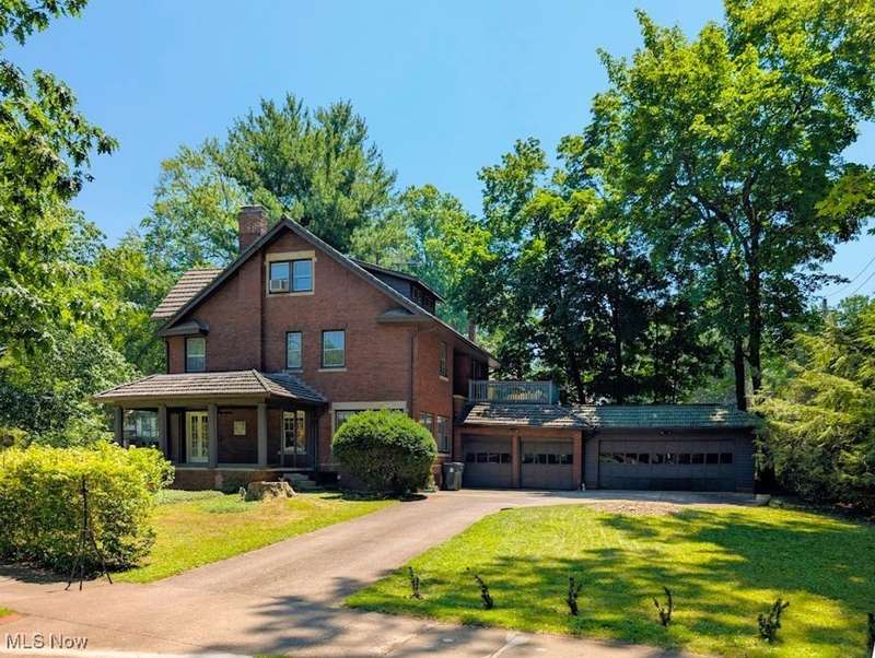Grand Tudor Revival on a beautifully treed lot situated in the Cleveland Heights Grant Deming Forest Hill district. This elegant and spacious home welcomes you with a gracious center hall floor plan with expansive, light-filled rooms and beautiful narrow plank oak flooring throughout the first and second floors. A spacious living room with a cozy gas fireplace and an entry to a large porch, perfect for entertaining or relaxing. Off the living room, a charming morning room offers a cozy, sun-drenched retreat. French doors open into the formal dining room with a star filled ceiling. The kitchen boasts abundant cabinetry, excellent counter space, a well-designed center island, and a bright, open layout ideal for both cooking and gathering. An elegant central staircase leads to four generously sized bedrooms and tastefully updated bathrooms. The primary suite features a half bath. One of the main bedrooms allows you access to a rooftop deck with calming green-space views. The third floor adds approximately 1,000 square feet of additional living space, including two oversized bedrooms, a full bath, and a sauna. Which is not recorded with the overall square footage. And a rare four-car attached garage. A perfect blend of historic character and modern comfort. Nestled in the heart of Coventry Village, with close proximity to Little Italy, University Circle, Cain Park and so much more.