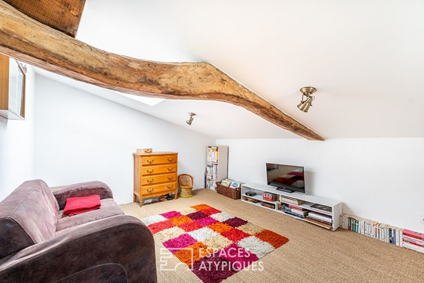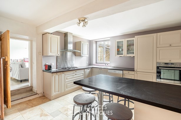 From the entrance, the living room seduces with its warm atmosphere, where the character of the old is fully expressed. The independent, adjoining kitchen combines practicality and conviviality, offering a pleasant space for sharing meals with family. This same level also houses three large, bright bedrooms, ideal for welcoming young and old in a peaceful and harmonious setting. Upstairs, you will discover a fourth bedroom as well as an office or a games room, a versatile space that will easily adapt to your needs and lifestyle. Outside, the charm is just as strong: on a plot of approximately 770 sqm, you will enjoy a beautiful wooden terrace, perfect for your moments of relaxation or your summer evenings with friends.