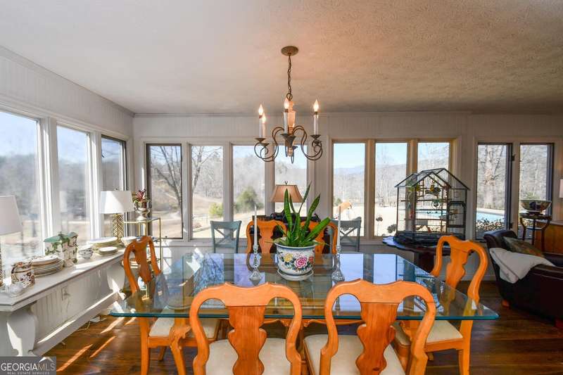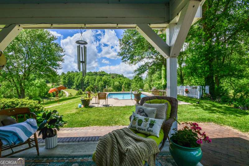 Peace and Plenty Farm ....Nestled on over 27 acres of serene countryside, this expansive property offers a large, welcoming home perfect for families, events, or commercial potential. With a 2020 pool, a 2017 barn, and a 1+ acre stocked, spring-fed pond, this tranquil retreat also boasts breathtaking views of the Chattahoochee National Forest and Lynch Mountain. Enjoy the privacy of a quiet gravel road with minimal traffic, surrounded by large tracts of land, and a beautiful balance of pasture and wooded areas. The home features a full basement, two spacious living rooms, a screened porch, and an open porch ideal for outdoor relaxation. Additional amenities include a two-car garage, large masonry fireplace, wood stove, remodeled kitchen, and an updated master bath and safe room. The property is equipped with a metal roof (installed in 2018), livestock-friendly fencing, and an asphalt parking area (added in 2021). Inside, you'll find wood floors, an updated HVAC system with both gas and electric heating and cooling and thriving gardens that add to the charm. Whether you're looking for a private retreat, a family estate, or a venue for special events or rentals, this property is a true gem.Peace and Plenty Farm in the beautiful sought after Nacoochee Valley is truly a property to view. Last two pictures are of the AVION trailer .