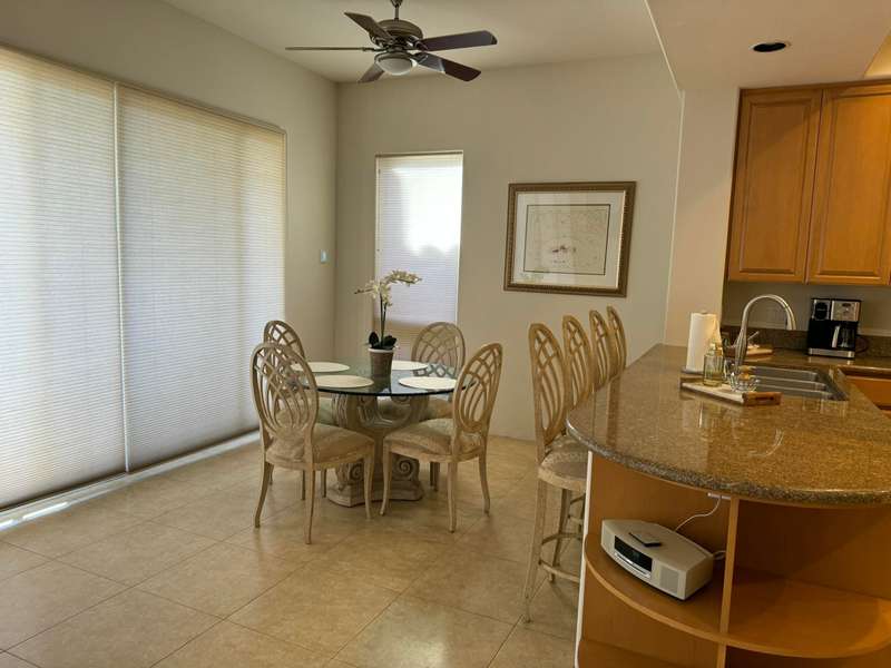 MONTANA I PLAN!!!This beautifully designed, brand new Casita in Rancho La Quinta offers one of the community's best floor plans. With 3,350 square feet of luxurious living space on a spacious 1/4-acre lot, this home is ideal for both relaxation and entertaining.Property Features:Freshly Updated: Brand new paint, bedding, bath essentials, a modern couch, and stylish backyard furniture.Open Great Room Plan: A formal dining room and informal living area adjacent to the chef's kitchen, perfect for gatherings.Gourmet Kitchen: Equipped with top-of-the-line stainless steel appliances, including a wine cooler and a 60-inch flat screen TV in the living area.Bedrooms & Baths: 4 bedrooms and 3.5 baths, offering plenty of room for family and guests.Stunning Views: The east-facing backyard offers breathtaking views of the double fairway and lake, overlooking the 11th & 12th holes of the Jerry Pate Course. To the south, enjoy the majestic Santa Rosa Mountains as your backdrop.This home is ideal for those who love to entertain, with a flow that combines indoor and outdoor spaces seamlessly.Call for summer prices!!Booked Jan 1, 2026 - March 31, 2026 Available April 2026 for $17,000