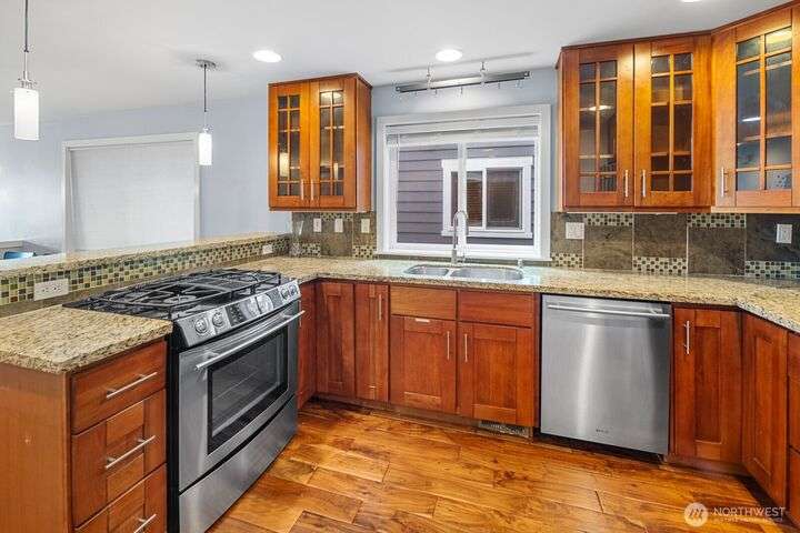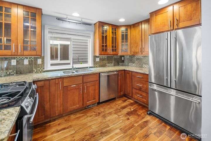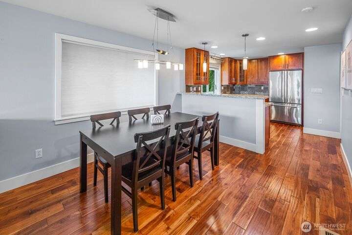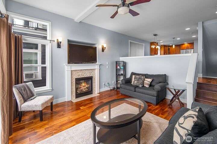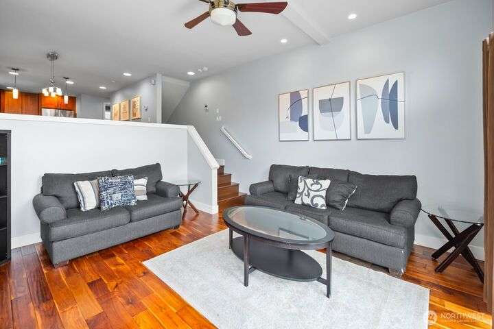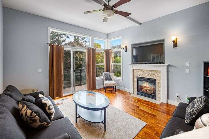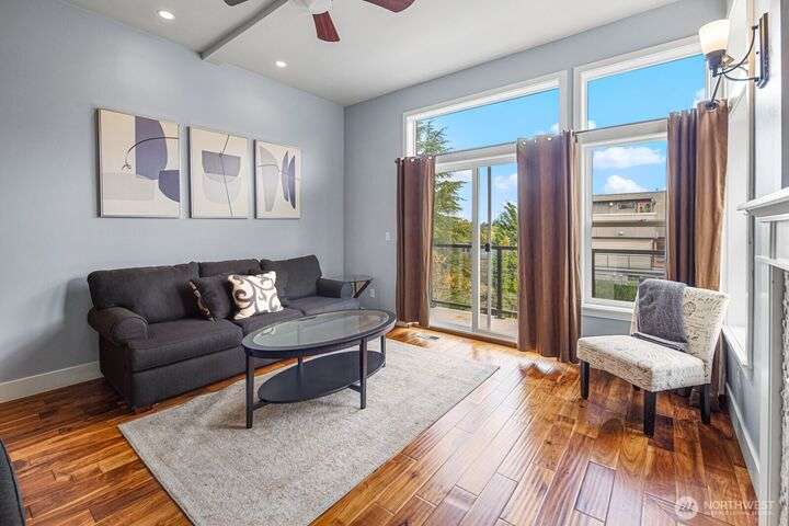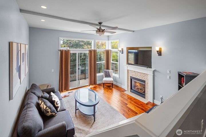 Not your average townhome! This Madison Valley gem offers 1,900+ sq ft of modern convenience, prime location, and thoughtful design. The main floor features an open kitchen with granite counters, breakfast bar, stainless appliances, gas range, and hardwood floors. The dining area flows to a sunken living room with gas fireplace and deck. The full-floor primary suite has vaulted ceilings, walk-in closet, balcony with valley views, and a 5-piece bath with soaking tub & water closet. Two additional bedrooms include generous closets, one with a sunny deck. An oversized garage offers extra storage, plus two interior closets. Tucked on a quiet, tree-lined street yet steps to Madison Valley shops, cafés, groceries, parks, and top-rated schools.