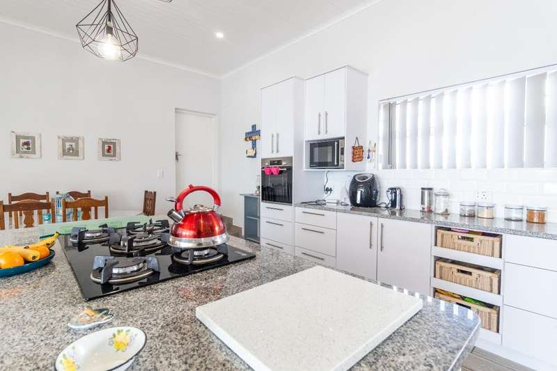 Enjoy spectacular, uninterrupted 180-degree views of St Helena Bay from this property. The spectacular sunrises are a luxurious permanent fixture! Embrace the coastal lifestyle you've always wanted while enjoying the financial security of a built-in rental income. The main house features two spacious bedrooms, both with ample cupboard space. The main bedroom includes an en-suite with a shower, toilet, and basin. There's also an extra bathroom with a shower, toilet, and basin. The open-plan kitchen is perfect for cooking and entertaining, complete with a large walk-in pantry. Relax in the large living area, which includes a cozy fireplace and a charming kaggel. Stacker doors open the living area onto the tiled stoep, perfectly blending indoor and outdoor living to create a fantastic holiday vibe. The partially covered stoep is an ideal spot for outdoor entertaining. A huge double garage provides plenty of space for two large vehicles and includes an extra area for laundry. This property includes two self-catering flats, each with its own kitchenette and a bathroom featuring a shower, toilet, and basin. These versatile units are perfect for accommodating a large family, providing a dedicated space for working from home, or generating extra rental income. The property is fully walled, making it a safe and secure space for children and pets. This is a versatile property with endless options for you to enjoy. Contact me to arrange your viewing! St Helena Bay, located on the West Coast of South Africa, is a tranquil and historic town known for its unique geographical features, rich marine life, and significant role in the country's fishing industry. History and Geography St Helena Bay was discovered by Portuguese explorer Vasco da Gama in 1497, who was the first European to set foot on South African soil. He originally named it "Bahia de Santa Elena" after Saint Helena. What makes the bay's geography particularly unique is that it's one of the few places on the South African coast where the sun rises over the sea due to its north-facing orientation. The bay itself is made up of 18 smaller bays, each with its own character. It stretches from Dwarskersbos in the north to Cape St Martin in the west and includes towns like Stompneusbaai and Britannia Bay. The area's landscape is characterized by imposing granite boulders and long, white sandy beaches. Marine Life and Economy The bay's waters are fed by the nutrient-rich Benguela Current, making it one of the world's prime fishing areas. This has made the town a major hub for South Africa's fishing industry, with several fish processing factories located in the area. The main harbor at Sandy Point is a busy place, with a constant flow of fishing vessels. The abundance of marine life also makes it a popular destination for dolphin and whale watching. Endemic Heaviside's dolphins, as well as dusky and common dolphins, are frequent visitors. Southern right whales come to the calm waters of the bay to calve and mate during the second half of the year, making it an excellent spot for whale watching from the shore. Humpback and killer whales also visit the bay. Things to Do While fishing is central to the local economy, St Helena Bay is also a growing tourist destination, offering a mix of relaxation and outdoor activities. Outdoor Activities: Visitors can enjoy activities like kayaking, bird watching (the bay is on a migratory route for many species), and exploring the beautiful beaches. The area is also part of the West Coast Way Foodie Route. Attractions: A monument marks the historic landing site of Vasco da Gama. The nearby Shelley Point Peninsula is a popular attraction with a golf estate and a spa. The Cape Columbine Lighthouse is also a short drive away. Wildflowers: Like many places on the West Coast, St Helena Bay is famous for its stunning display of wildflowers that bloom in the spring after a good winter rain season. LOVE WERE YOU LIVE!!!
