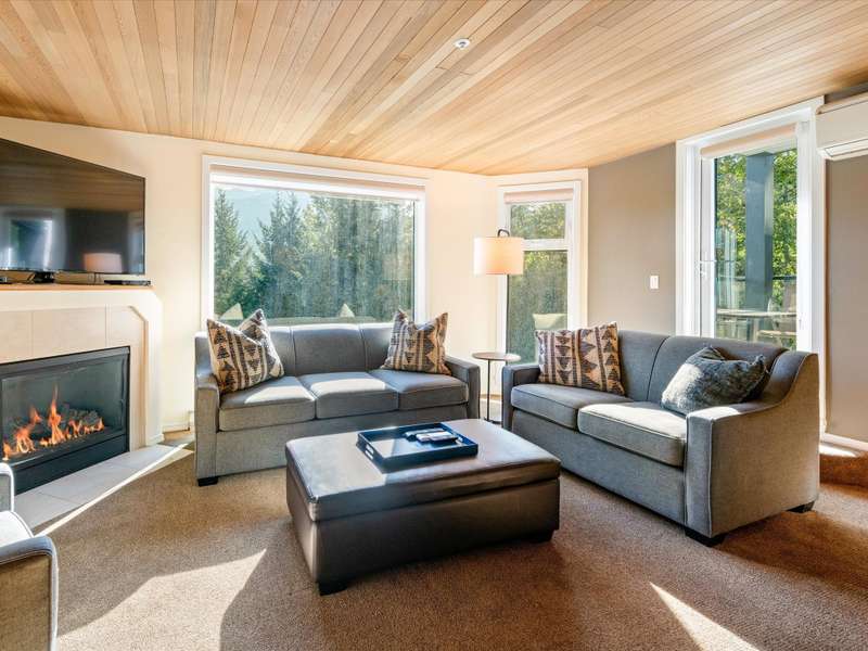 Blueberry Hill! Ironwood is a quiet building with special location overlooking the Whistler Golf Course and walking distance to Village restaurants & shops. The outdoor pool and hot tub area get plenty of sun and have panoramic views of both Whistler & Blackcomb! The building is just completing an exterior upgrade which includes new siding, new windows and doors, new balconies and decks, and other updates to modernize the development. #213 is one of the larger 2 bedroom condos available in Whistler. It has beautiful ski area views and features a full kitchen, in-suite laundry, a gas fireplace, and air-conditioning in the living area and both bedrooms. Phase 1 zoning allows unlimited owner use and the ability to rent short-term via Airbnb or any rental company of your choice. Come have a look!