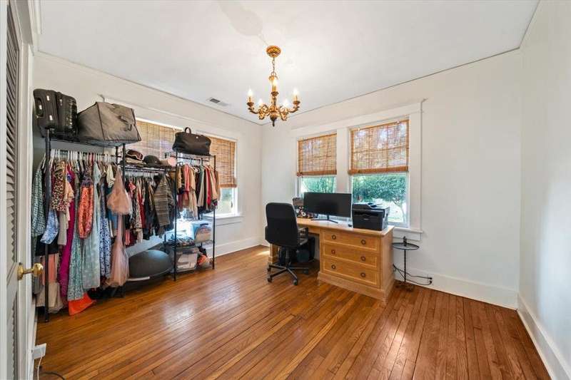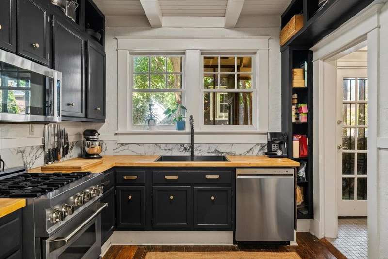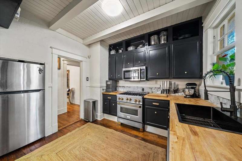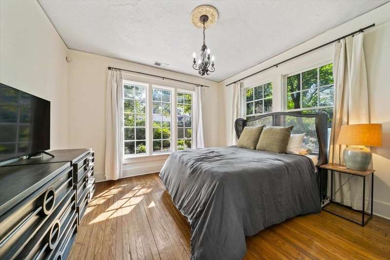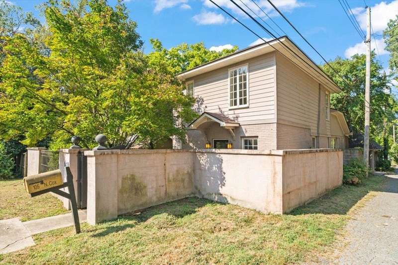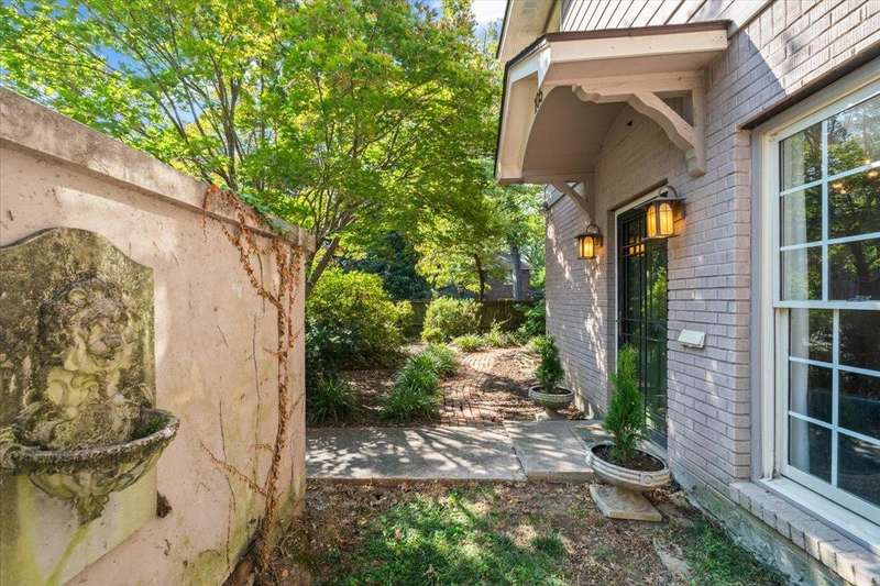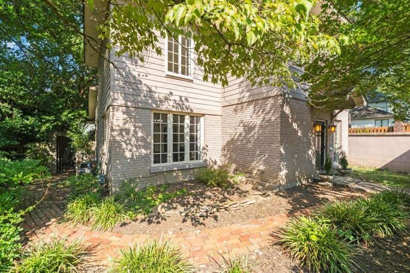 Behind a private walled garden in the heart of Midtown, 105 N Cox is a home that feels like a hidden retreat. Just steps from Overton Park, Overton Square, and Cooper-Young, this 5-bedroom, 2-bath beauty balances historic soul with bold, modern character. Step inside to southern charm, dramatic light fixtures, and sunlight pouring through oversized windows. The living and dining rooms flow effortlessly, anchored by a striking fireplace and rich hardwoods. The kitchen blends function and artistry with butcher block counters, marble backsplash, and professional-grade appliances. A bar nook, intimate sitting areas, and curated details throughout create spaces as stylish as they are livable. Upstairs, the bedrooms are spacious bedrooms, framed by treetop views. Outside, multiple patios and lush gardens invite year-round entertaining, while a detached guest house offers endless flexibility for a studio, gym, or office. Private, architectural, and unforgettable this home is a statement.