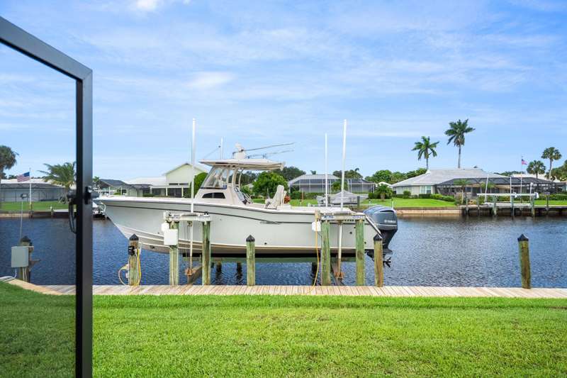 Welcome HOME to your 3-bdrm 3-bath waterfront house with PRIVATE DOCK located in the prestigious, guard-gated Stuart Yacht & Country Club. 30,000 lb boat lift with newer Seawall cap and tiebacks-2019. Perfectly positioned on a quiet cul-de-sac with direct canal access, this residence blends luxury living with effortless coastal charm. Designer chefs kitchen boasts custom cabinetry, Thermidor 6 ?burner gas range & wall oven,wine fridge and NEWER S/S fridge, dishwasher & microwave. Airy and open living area perfect for entertaining or just relaxing, IMPACT glass windows/sliders throughout, owners suite w/ spa bath; 2 guest rooms with Jack n Jill full bath. Step through the sliders to your newly screened lanai and stunning pool! You must come see this home in person!!