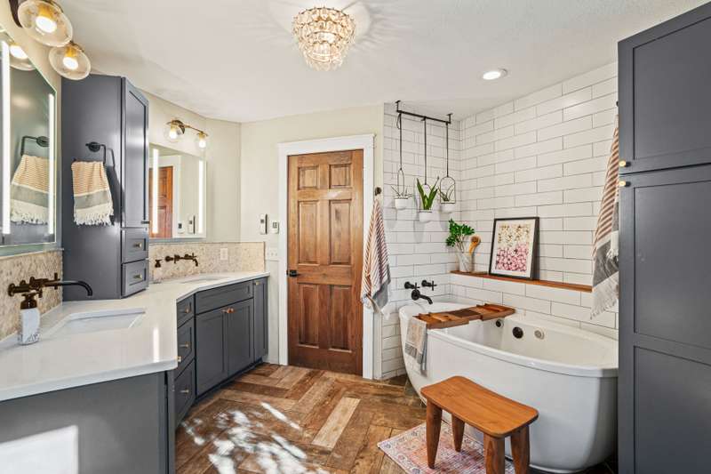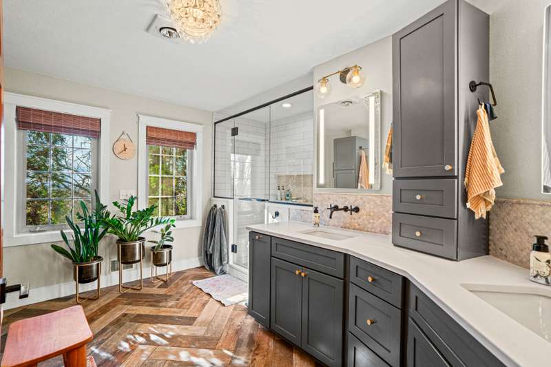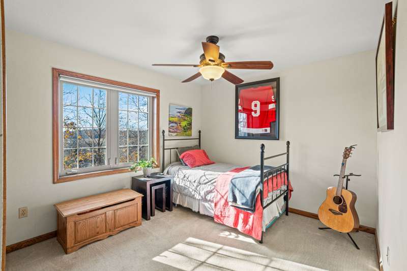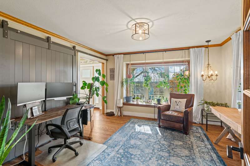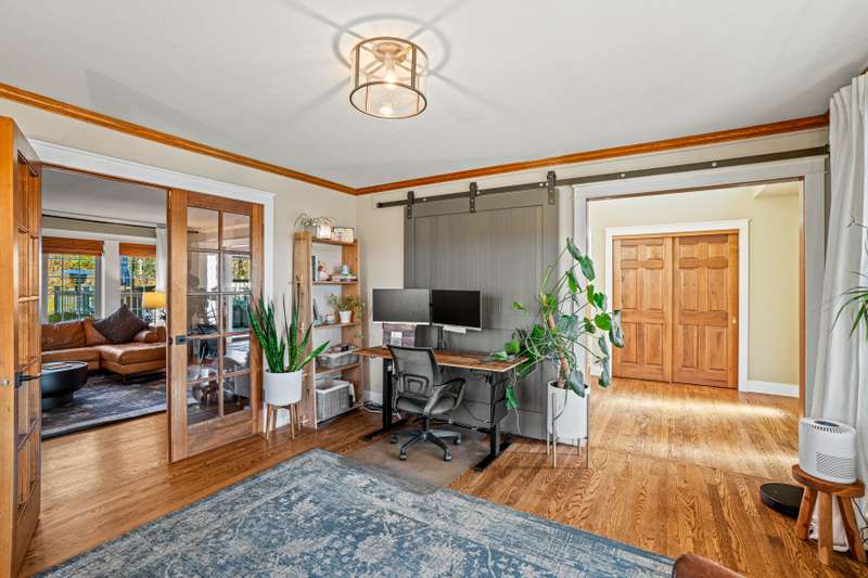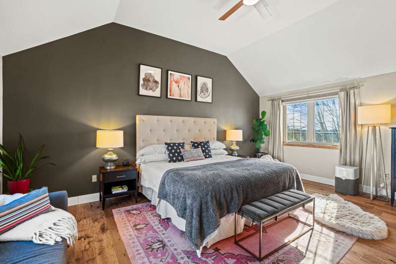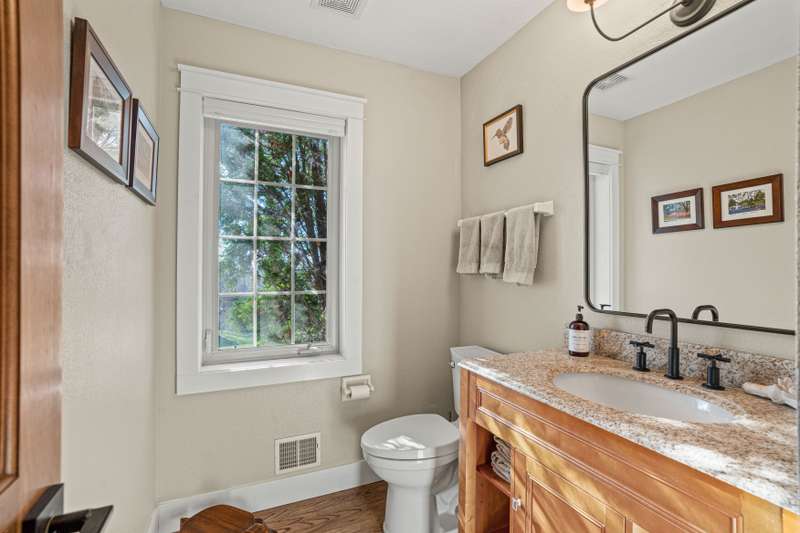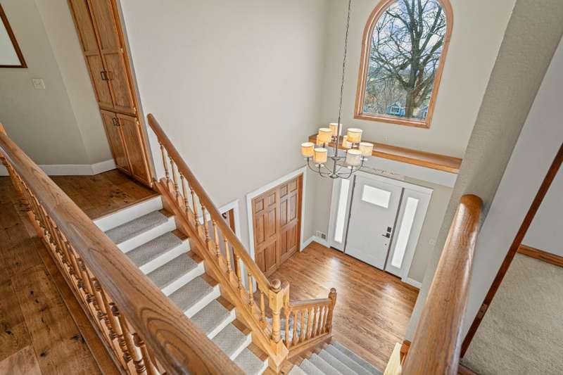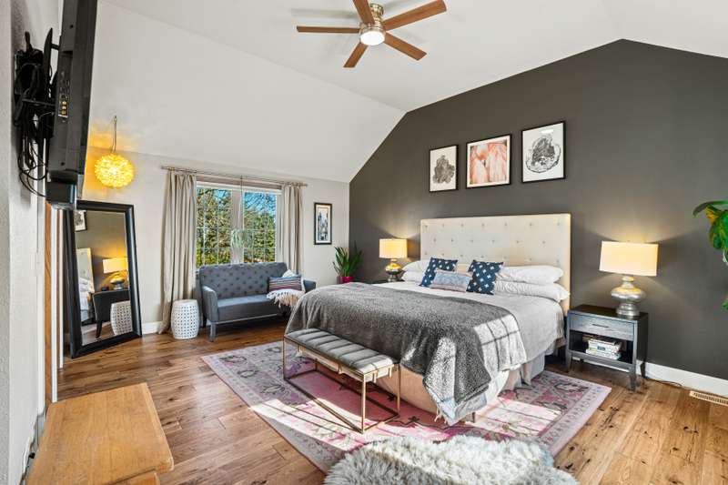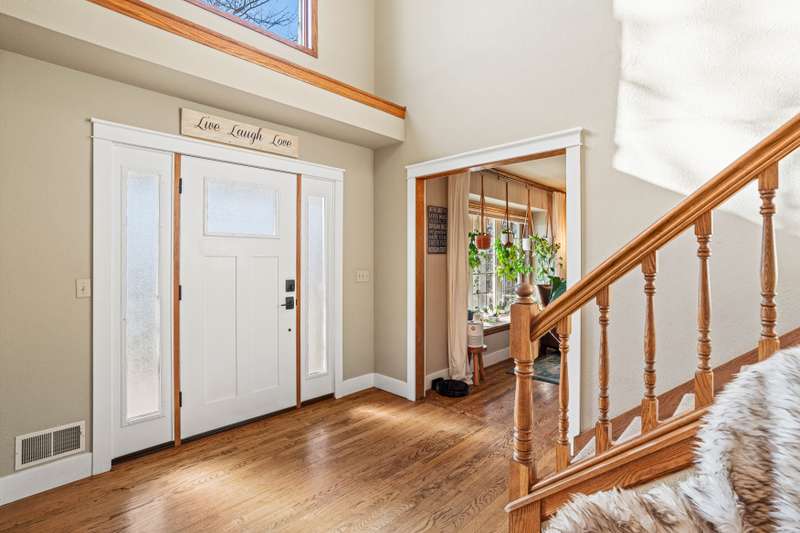 Perched on an acre lot, this stylish, updated home instantly welcomes you. A 2-story foyer sets the tone, opening to oak floors that bring character and warmth throughout the main level. The eat-in kitchen blends everyday ease with granite countertops, stainless appliances (including a beverage fridge), a walk-in pantry, and sliding doors that open to a 3-tier deck overlooking the landscaped, fenced backyard -- an ideal spot for morning coffee or starlit nights. A custom barn door reveals a sun-drenched office/den that flows through French doors into an inviting living room, where a gas fireplace adds a cozy touch. Upstairs, you'll find all four bedrooms, highlighted by a standout primary suite with vaulted ceilings, remote-control blinds, two walk-in closets, and a spa-caliber bath with a Kohler shower system (body jets & rain head) and a Kohler bubble-massage soaking tub. Ahhh...welcome home!