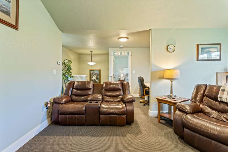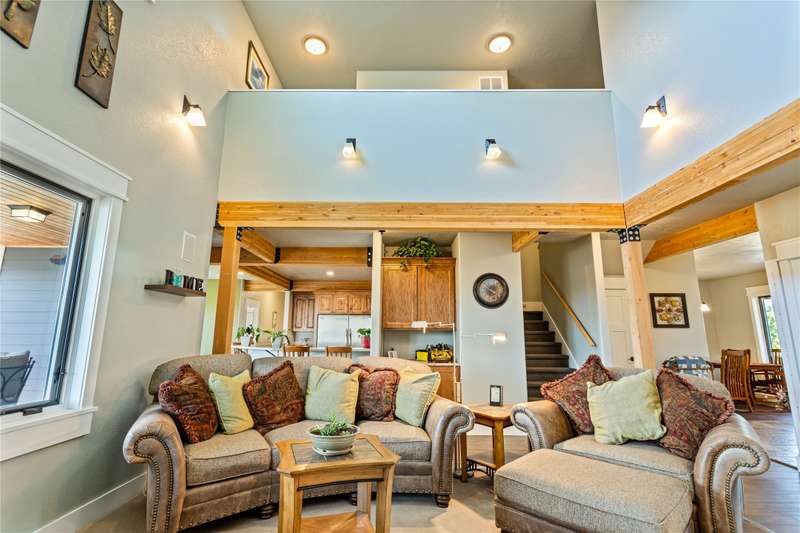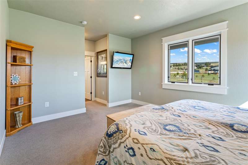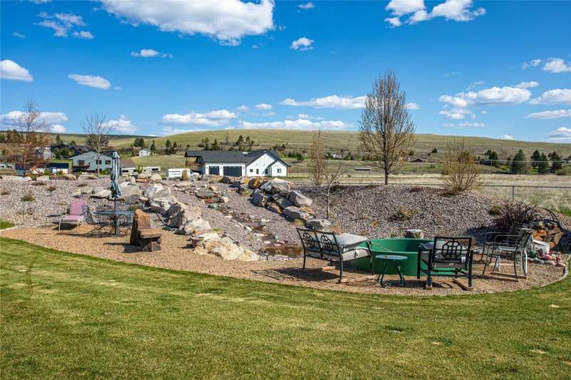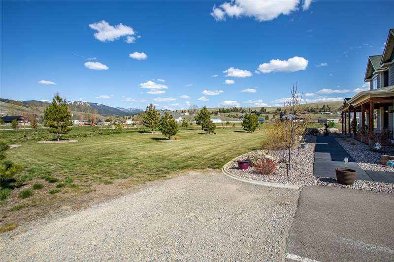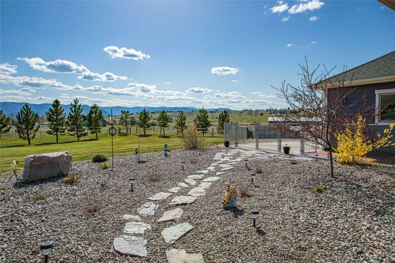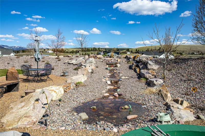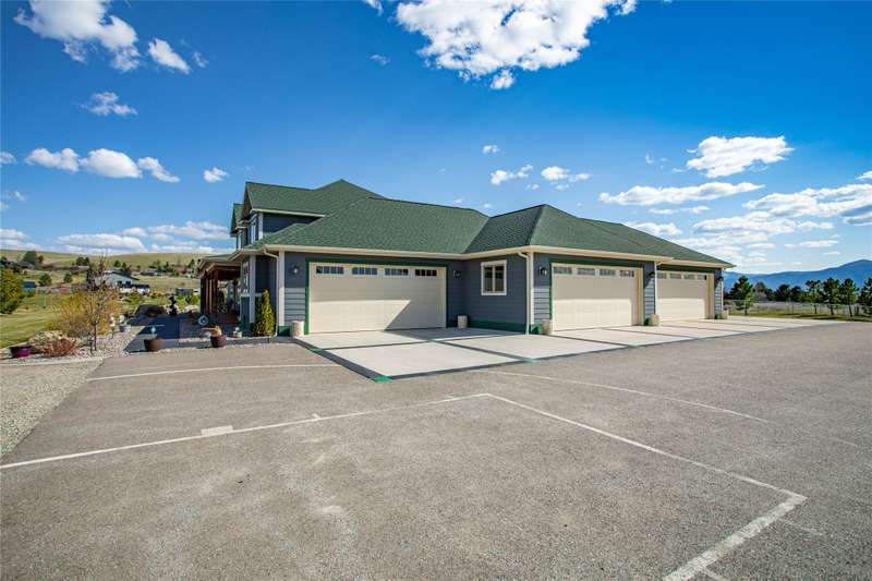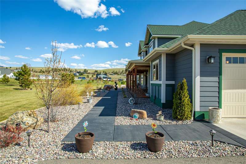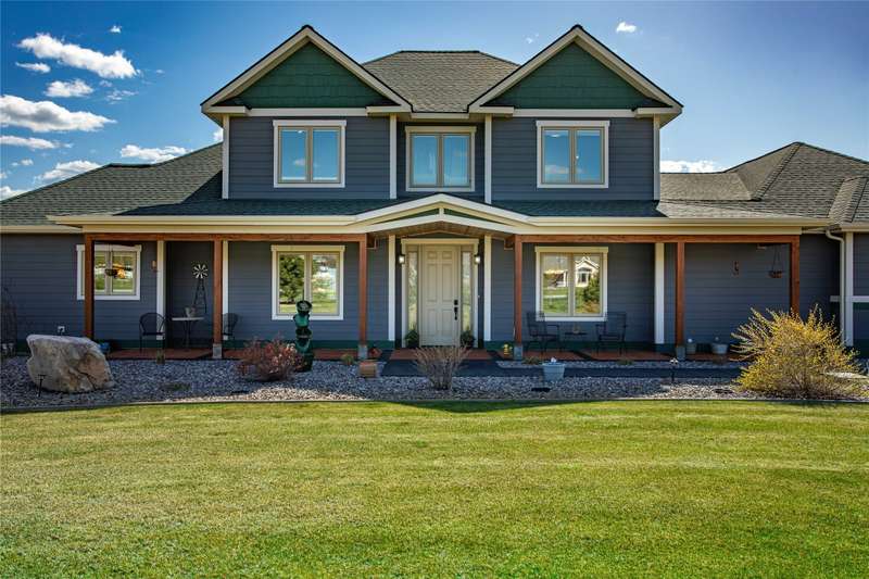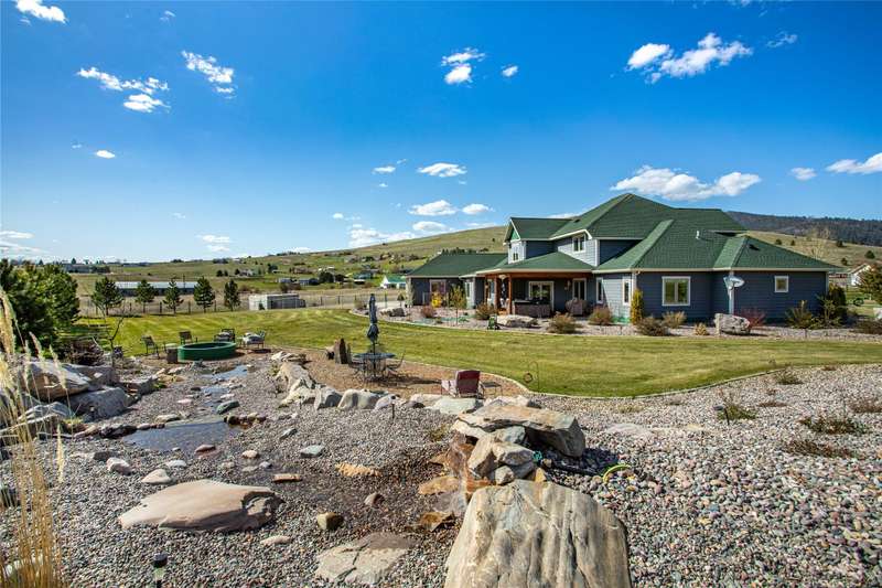 This stunning 3,446 sq. ft. custom home, completed in 2017, sits on nearly 3 beautifully landscaped acres with expansive mountain views. The 4-bedroom, 3-bath layout features 9' ceilings, Pella windows with built-in shades, a gourmet kitchen with both gas and electric cooktops, and a geo-thermal heating and cooling system for year-round comfort and efficiency. Outdoor amenities are second to none-enjoy a fenced backyard, sand volleyball court, basketball hoop, fire pit, water feature (no winterization required), and low-voltage landscape lighting. The oversized 6-car garage accommodates full-size vehicles, and there's a concrete RV pad with electrical hook-up. A new roof and gutters were added in 2023. Located in a quiet cul-de-sac with school bus service and just minutes from I-90 and Missoula International Airport, this one-of-a-kind property blends luxury living with space to play, relax, and entertain. Don't miss your chance to own a rare slice of Montana lifestyle-schedule your showing today!