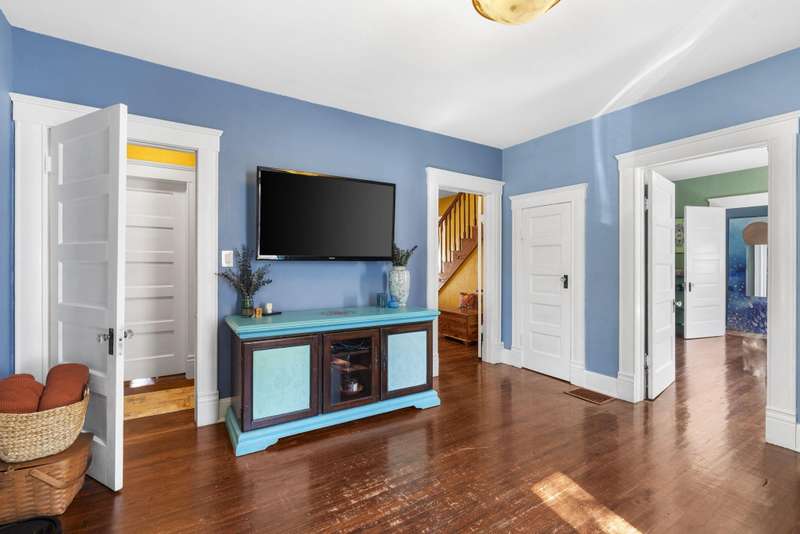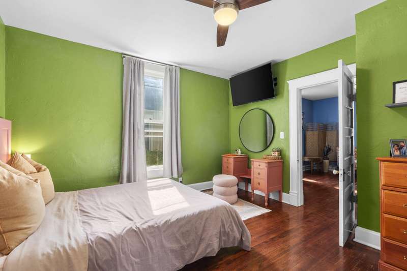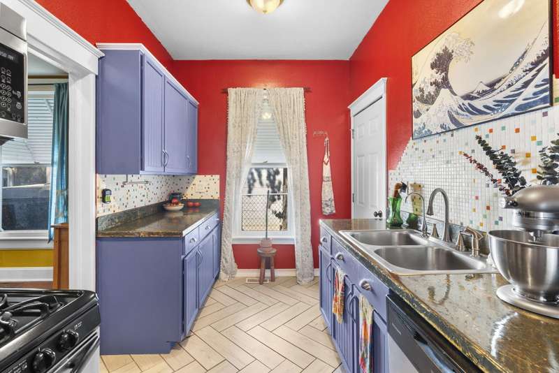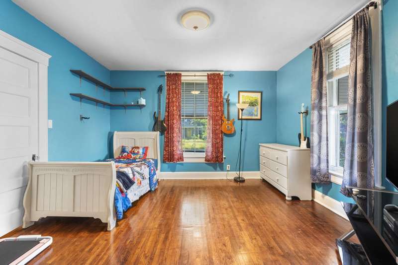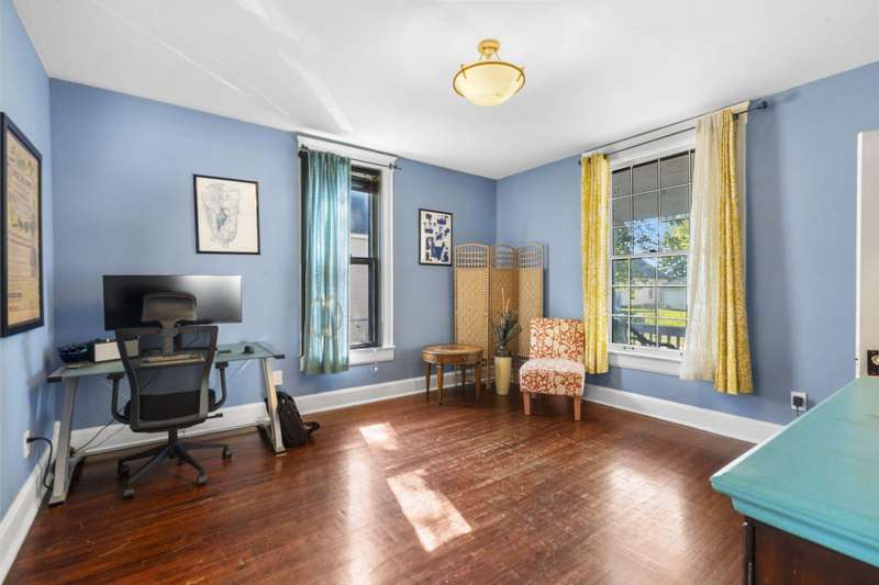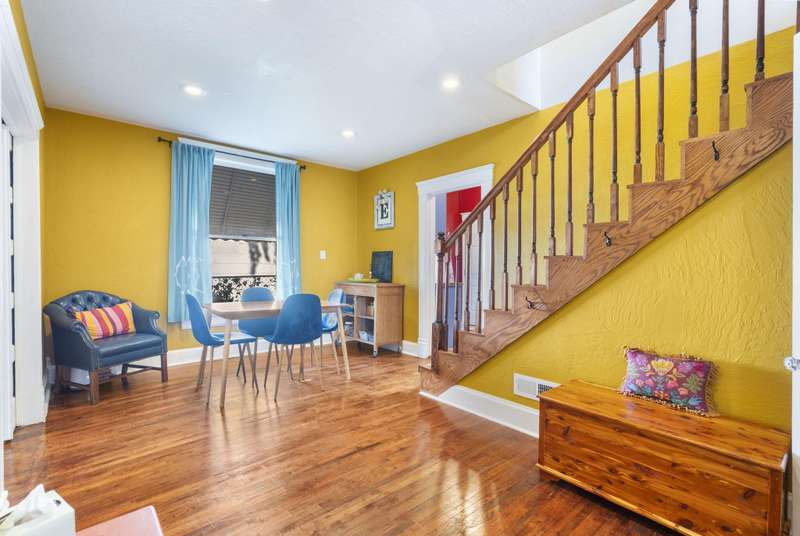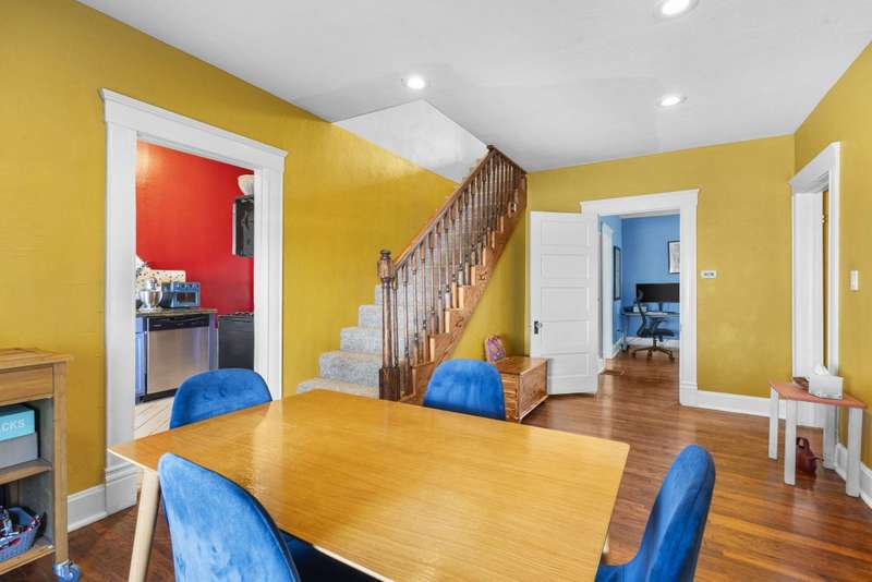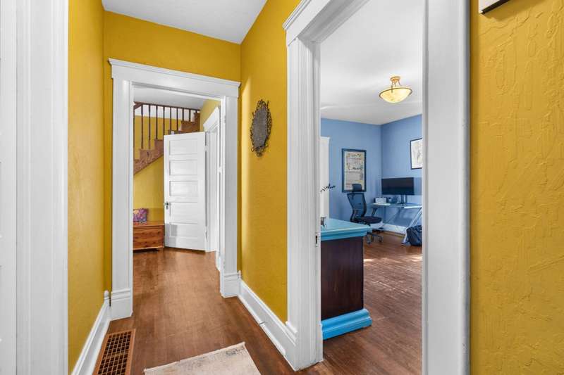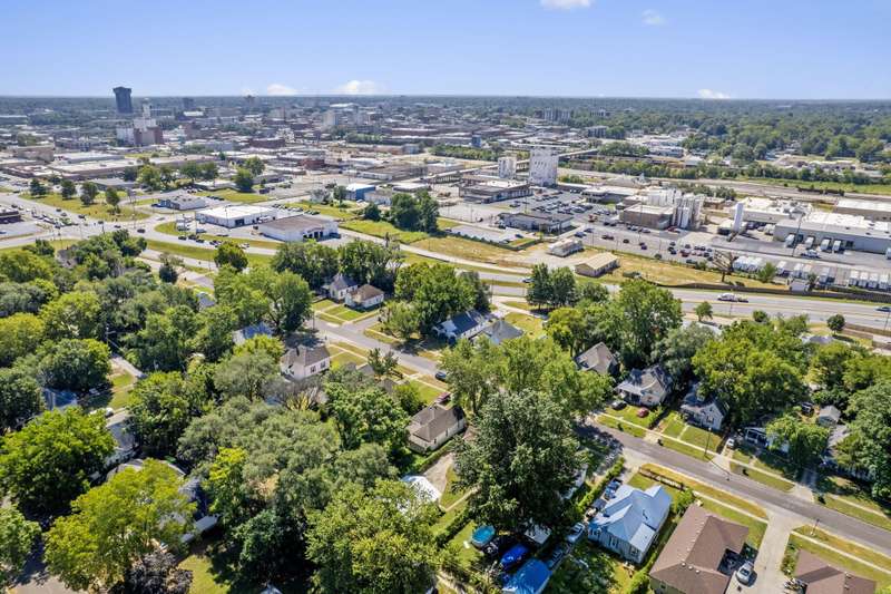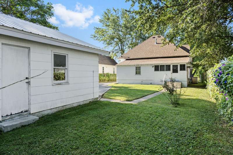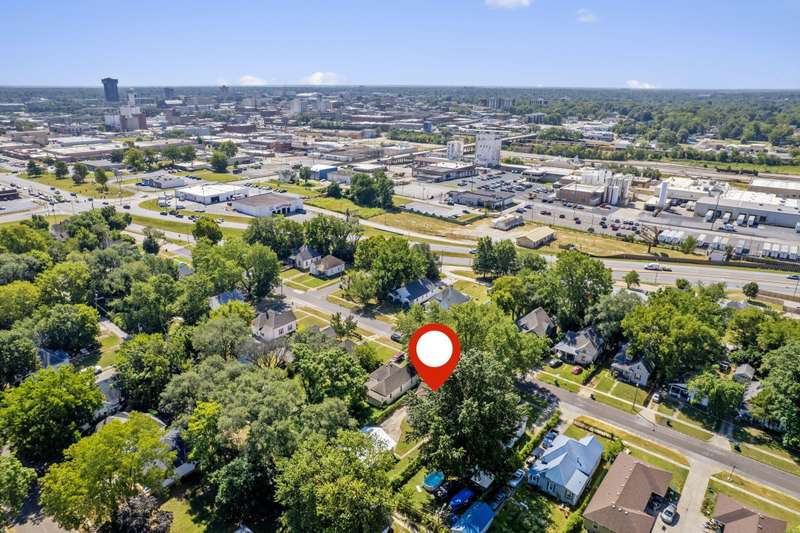 This 3-bed, 1-bath home combines farmhouse charm with well-preserved original features and modern updates throughout. It has a brand new roof and sits on nicely landscaped grounds with mature maple trees, David Austin roses in front and back, a wisteria tree, and morning glories. A fully fenced yard with a 5' chain-link fence and rolling gate to the driveway provides added privacy and security. Come home to an inviting front porch, ideal for morning coffee or relaxing outdoors. Inside, you'll find real hardwood floors and original trim, a formal dining room with working pocket doors, and a bright living space with floor-to-ceiling windows and newer recessed lighting. Fresh paint throughout the home compliments the refinished stairway and original woodwork. The kitchen features custom countertops, a real tile backsplash, herringbone-patterned tile floors, and a breakfast nook just outside filled with natural light. A spacious extra-large laundry room and an updated bathroom with a brand new double-sink vanity and tile backsplash sit nearby. Upstairs, an oversized bedroom includes recessed lighting, dormers with bull-nose sheetrock corners, a full-length double closet, brand new carpet, and a kid-friendly nook, kept comfortable with its own mini split, alongside a newer central HVAC unit for the entire home. A back sunroom brings in abundant light, while the master bedroom stands out with two closets that provide generous storage and help keep everything organized. Outside, a 25x25 oversized shop/garage with a newer metal roof, security system, and plenty of workspace complements the property. All of this is just minutes from vibrant downtown Springfield, close to restaurants, shops, and everything the city has to offer. Don't miss your chance to see this one before it's gone!