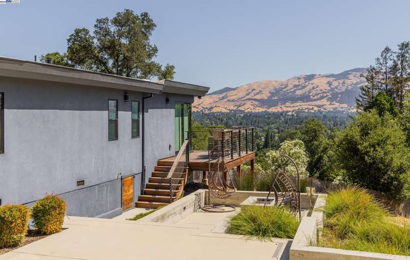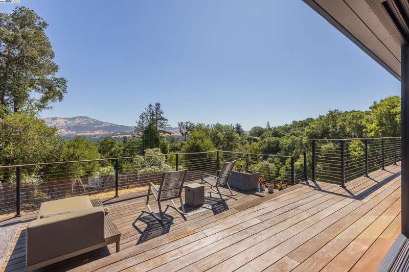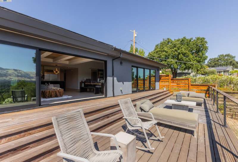 Experience elevated living in this stunning, fully rebuilt modern home on Danville’s coveted Westside. Located in the exclusive Sky Terrace community, this rare 1.4+ acre property offers panoramic views of Mount Diablo and seamless indoor-outdoor living through La Cantina doors that open to a spacious deck. The open-concept floor plan features high-end modern finishes throughout, including wide-plank hardwood flooring, marble tile bathrooms, sleek Euro-style cabinetry, and natural Quartzite countertops with a waterfall island and glass-beveled backsplash. A chef’s kitchen showcases top-tier appliances, including a premium Sub-Zero refrigerator, 48 professional cooktop with griddle, smart double ovens, and a built-in drawer microwave. The primary suite offers breathtaking views and direct access to the deck. One of the four bedrooms has been transformed into a custom walk-in closet by Valet Cabinets, perfect for a fashion-forward lifestyle. All bedrooms, including the luxurious primary suite, are conveniently located off a single hallway for ideal flow and functionality. Step outside to a fully hardscaped backyard oasis complete with an infinity-edge pool, custom outdoor furnishings from Terra (most included in sale), and multiple gathering spaces designed for both !