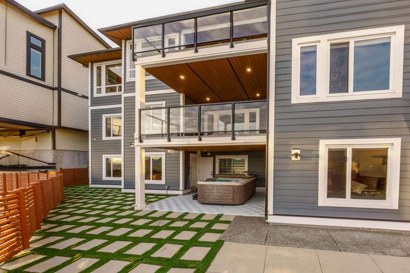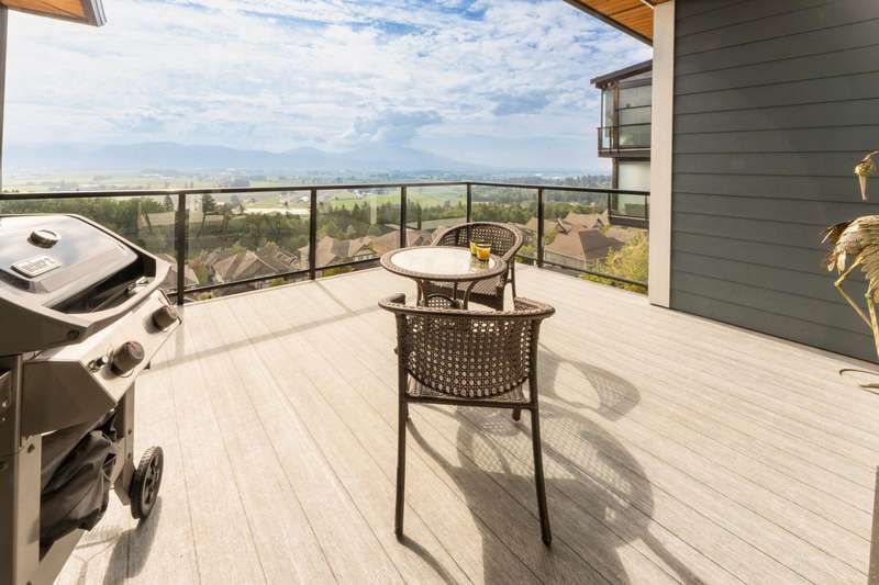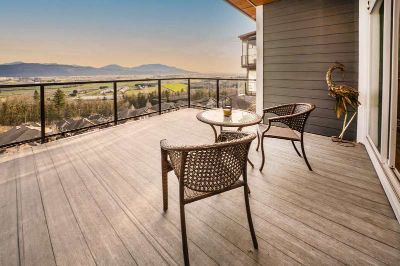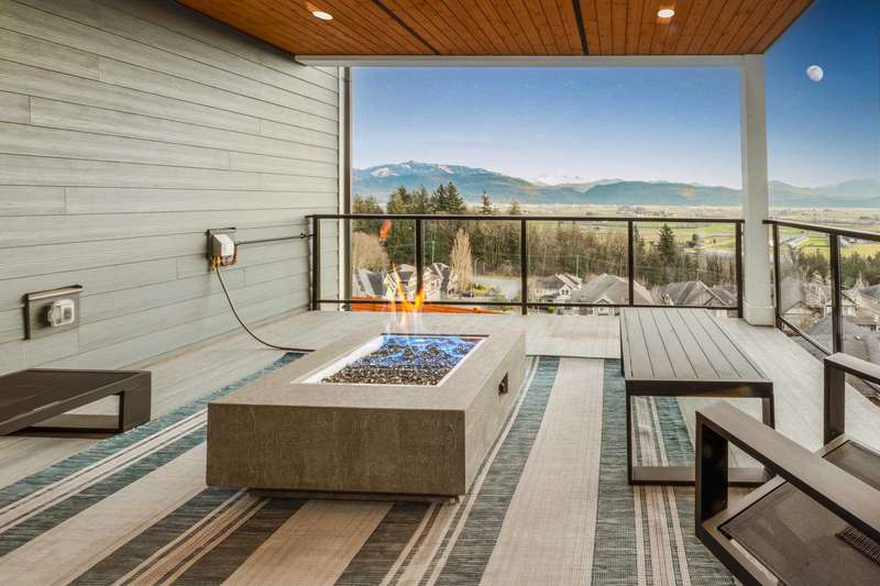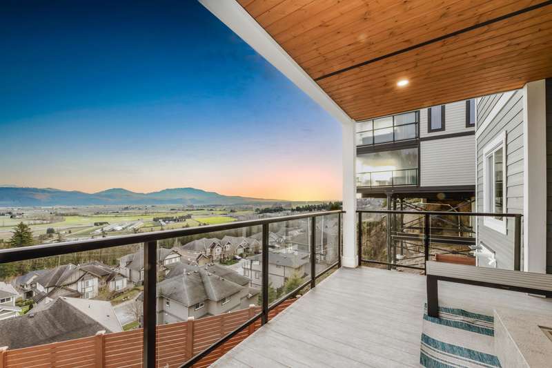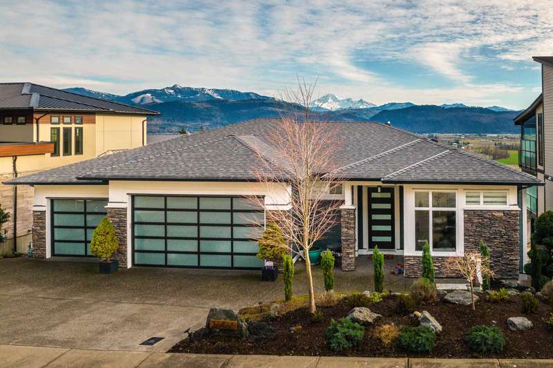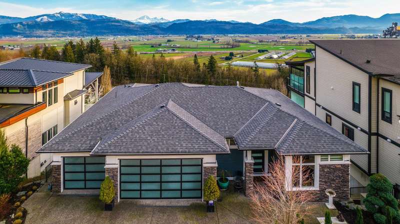 LUXURY HOME WITH GREAT INCOME POTENTIAL: This impressive home descends down the natural landscape to maximize on the BREATHTAKING valley & MNT Baker views on every level. As soon as you enter, the open living area with picture windows simply takes your breath away. The primary bdrm on the main has two walk in closets & a luxury ensuite with a view from the soaker tub. The main level offers a kitchen rough-in & 3 more bdrms including a second primary, lg deck, rec room & separate entry. At the bottom level you will find a games room, wet bar & finished one bdrm suite with separate laundry & entry as well as a newer top of the line hot tub on private covered patio. BONUS: Triple car garage has upgrades and details like no other, low maintenance landscaping with irrigation & AC.