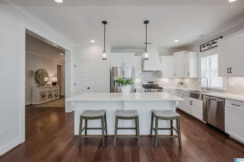 Discover the perfect blend of style and comfort in this 5-bedroom, 4-bath home nestled in the coveted Waters Ridge at Lake Wilborn. From the moment you step inside, you’ll notice the thoughtful upgrades—quartz countertops, designer finishes, & spacious, open-concept living. The primary suite & a second BR/BA are both on the main level, while the third through fifth bedrooms are upstairs-including a versatile fifth bedroom currently used as a movie room. With multiple gathering spaces, & abundant natural light- this home is as practical as it is beautiful. Outside, you’ll find a fenced backyard—perfect for pets, play, & private gatherings—adding even more to the home’s appeal. Set in one of Hoover’s most desirable neighborhoods, you’ll enjoy the charm of community living with access to Lake Wilburn amenities, nearby shopping, dining, & award-winning schools.