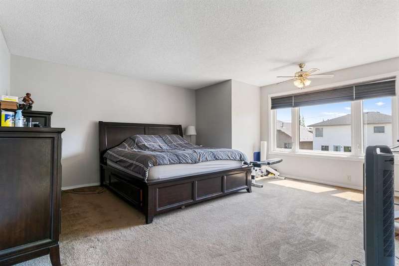 Located in the quiet, family-friendly community of Harvest Hills, this well-kept home offers the space, layout, and location you've been searching for. Tucked away in a peaceful cul-de-sac and facing a large green space, it’s a great spot for kids to play and for families to enjoy a sense of community. Upstairs you'll find 4 large bedrooms, giving everyone their own space—ideal for expanding families. The main floor office is perfect for working from home or setting up a homework zone. Enjoy a bright, spacious kitchen and dining area, with multiple cozy living spaces and two fireplaces for relaxing or hosting family and friends. The pie-shaped lot features a sprawling 32' composite deck, perfect for BBQs, playtime, or just enjoying the outdoors. You're just minutes from all the amenities in Country Hills, with quick access to Deerfoot Trail, Stoney Trail, and the airport—making life that much easier. Recent upgrades include a new roof and skylight added in June 2025, stylish Hunter Douglas blinds throughout, updated second-floor windows enhancing both aesthetics and insulation, and fresh interior paint for a move-in-ready finish. If you’re looking for more room to grow without giving up convenience, this is the one for you!