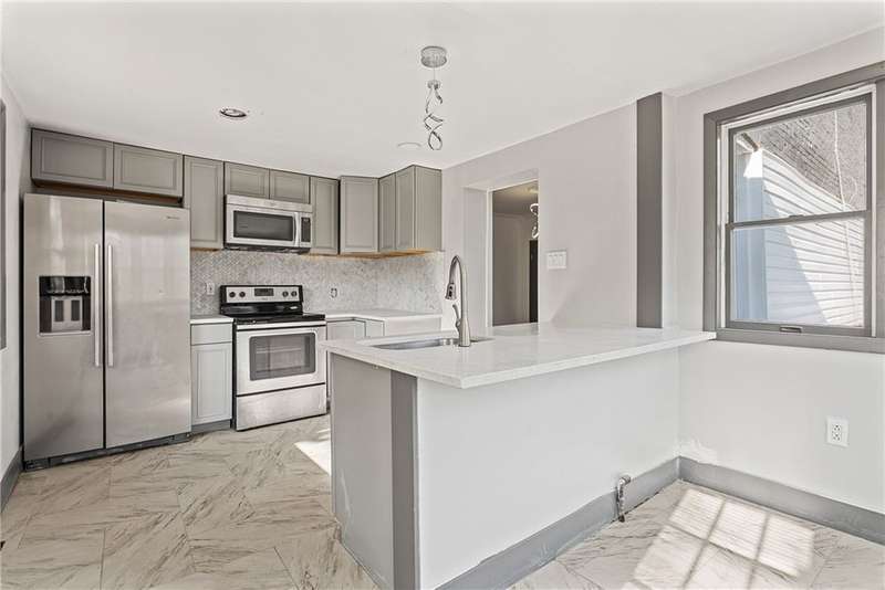 Must See! Nestled on a quiet and peaceful street in red hot Swissvale! Spacious, modern, newly renovated home conveniently located near shopping, transit, and access to the city. Upgrades include kitchen w shaker cabinets, quartz counters, tile back splash, and high end s. steel appliances. Brand new half bath/laundry room combo and brand new full bath with beautiful tile tub surround and a new vanity, lighting, and toilet. Brand new Furnace/AC, H2O tank, roof, drywall/trim, plumbing, electrical, and 4 new windows. Fresh interior and exterior paint, lighting, tile, carpet, and vinyl flooring throughout. 1st floor: living room, dining room, kitchen, den, and 1/2 bath/laundry room. 2nd floor: large master bedroom, full bath, and another bedroom. 3rd floor has 2 large bedrooms. 1 car integral garage and 2 car detached garage. Nice front porch and rear patio area! Great sized "worry free" home- perfect for entertaining, young children, or pets. Move right in and call this house your home!