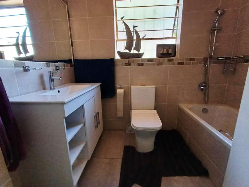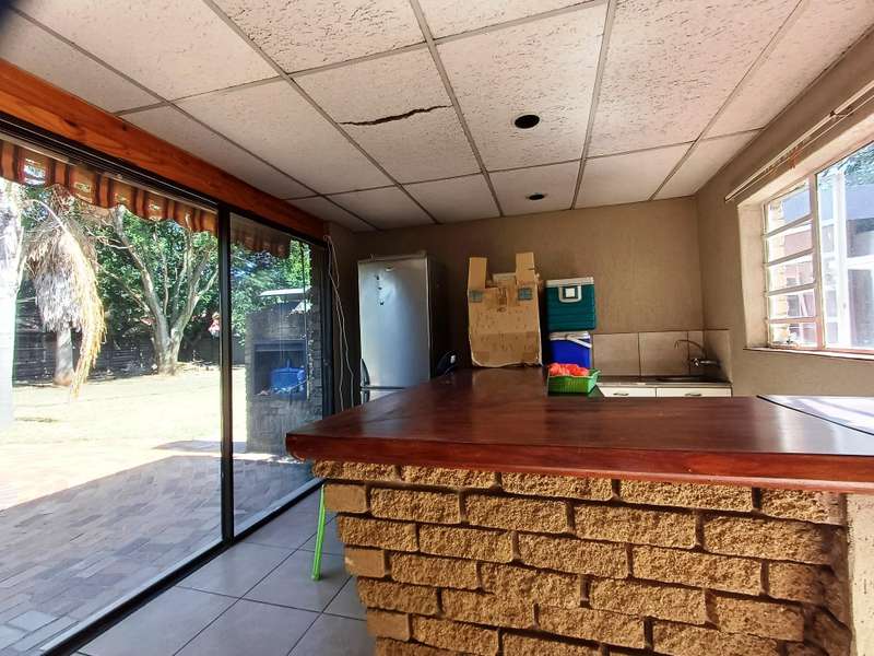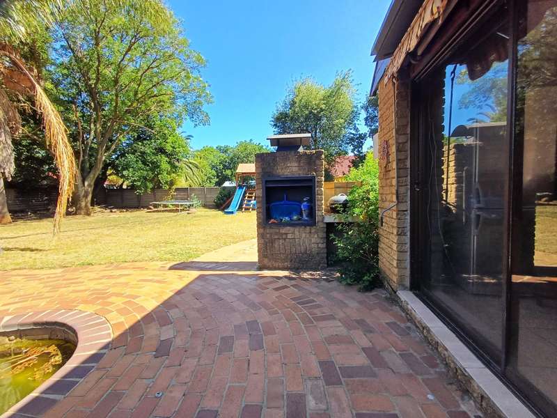 Separate entertainment room with a guest bathroom overlooking swimming pool and large garden and built-in braai