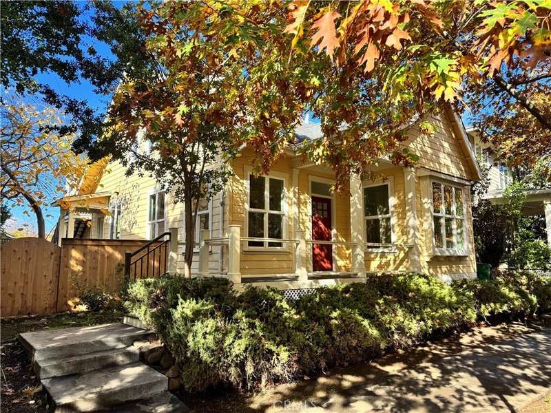 Adorable home in the highly sought-after Doe Mill neighborhood! This charming property offers not one, but two living spaces—a 2-bedroom, 2-bathroom main home with a loft, plus a 430 sq. ft. carriage studio above the detached 2-car garage. The main home welcomes you with an inviting front porch, perfect for morning coffee or chatting with neighbors. Inside, you’ll find a bright and open living area with high ceilings that flow into the cheerful kitchen, creating a comfortable and airy space. The primary suite is conveniently located downstairs and includes its own en-suite bathroom, while the guest bedroom and second bathroom are also on the main level. Upstairs, you’ll find a large loft—perfect for an office, additional living room, or even a guest bedroom. Other interior features include new carpet, fresh paint and designer light fixtures throughout. Step outside to a spacious backyard, ideal for entertaining, gardening, or play. Above the detached garage, the carriage studio offers a roomy living/sleeping area, full kitchen, and private bathroom—an excellent setup for guests, extended family, or potential rental income. It even includes its own private parking spot next to the garage and separate electric meters for added convenience. Located in one of Chico’s most beloved neighborhoods, you’ll love the tree-lined streets, beautiful landscaping, and neighborly feel of Doe Mill. Plus, you’re just moments from Meriam Park, scenic bike paths, restaurants, and local shops. This home is the perfect blend of charm, functionality, and community living! More photos coming soon!