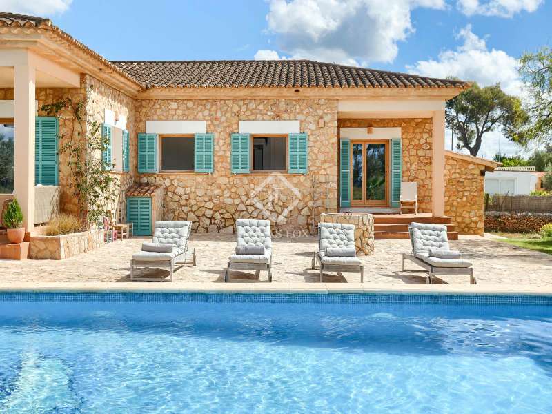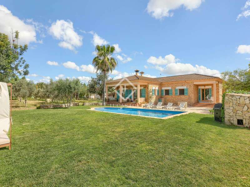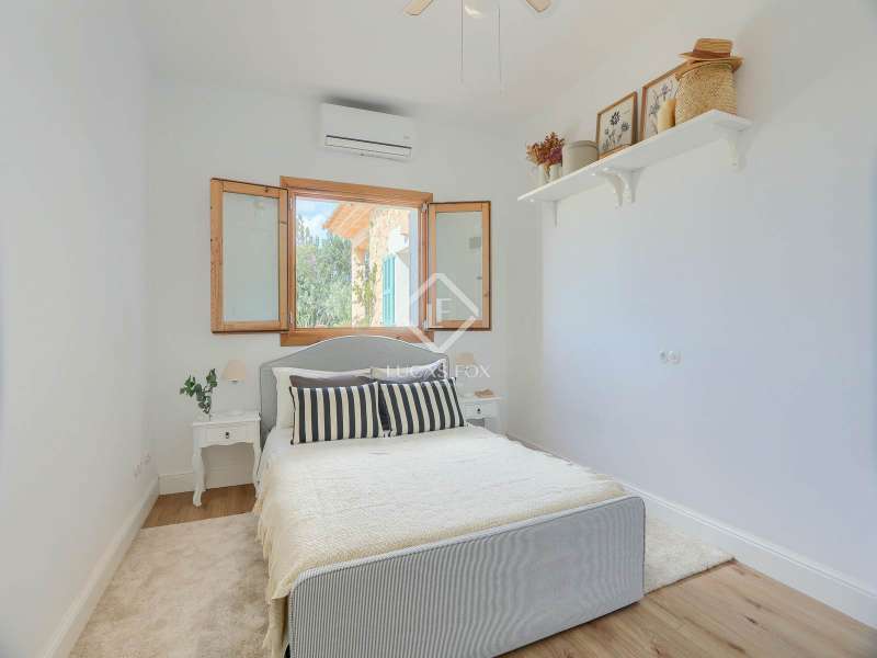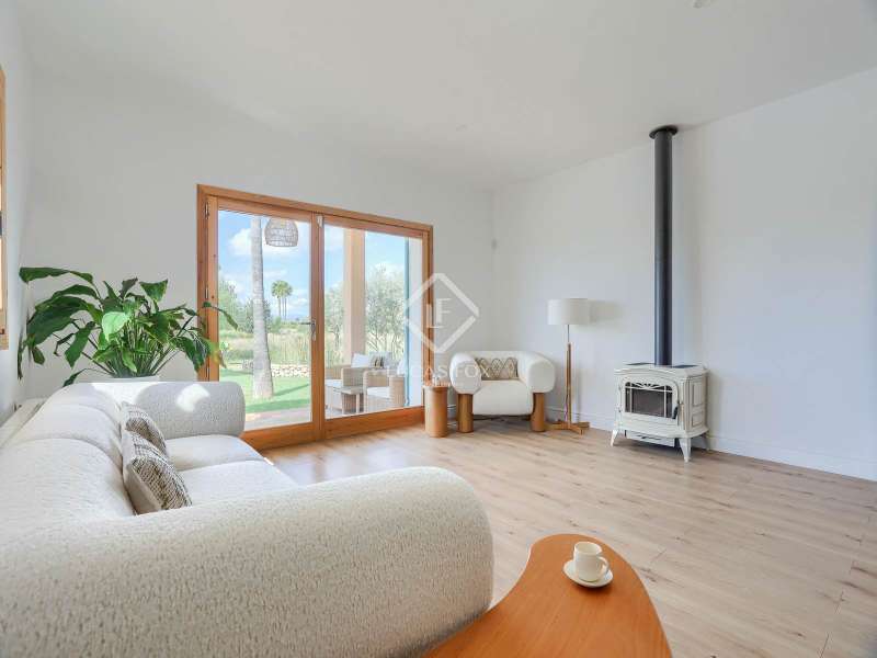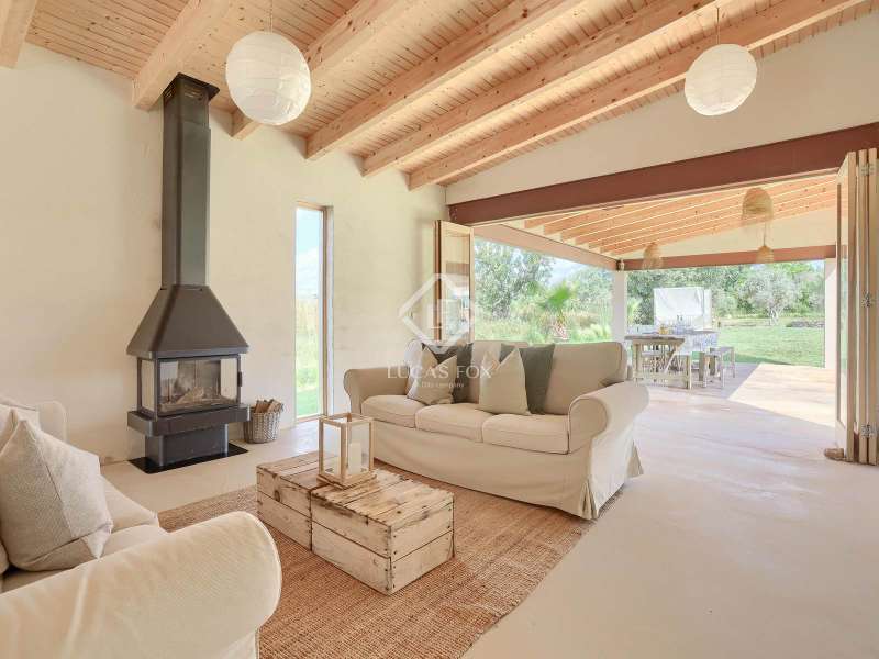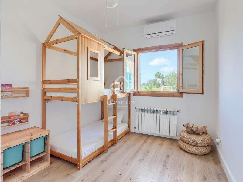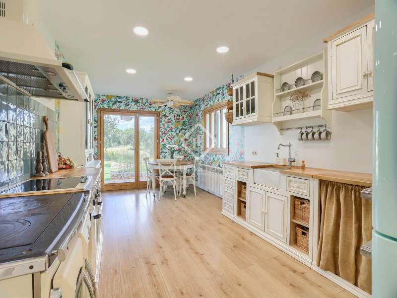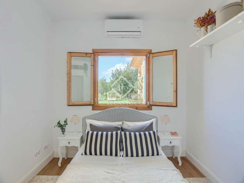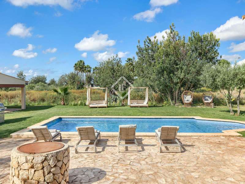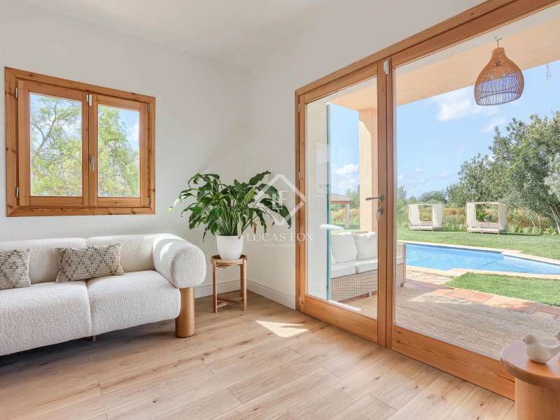 Located just a stone’s throw from the prestigious international school The Academy, this stunning estate offers the perfect blend of Mediterranean charm and modern comfort. Set on a generous 15,000 sqm plot, the property includes a beautifully designed 220 sqm main residence and a fully equipped 100 sqm guest house with a charming porch. The grounds are a true paradise for nature lovers, featuring a wide variety of mature fruit trees—algarrobo, fig, lemon, orange, lime, plum, apricot, and almond—along with a flourishing vegetable garden, perfect for enjoying fresh, homegrown produce year-round. Sustainability meets convenience with 20 solar panels (9.8 kW) powering the entire property, including the outdoor lighting and pool system. A private well ensures a free, self-sufficient water supply, complemented by a water softener and osmosis system. The main house offers three spacious bedrooms, two elegant bathrooms (including a luxurious en-suite with clawfoot bathtub), and a dedicated home office. The kitchen is a chef’s dream—fully fitted with high-end SMEG appliances, a wood-fired stove and oven, and an additional induction hob. The home is sold fully furnished and features independent air conditioning units in every room, fitted wardrobes, and solar-filtered windows for optimal temperature control. Security is a top priority, with a comprehensive alarm system, interior cameras, and contact sensors on all windows and doors. The guest house offers its own slice of comfort and privacy, complete with a bedroom, bathroom, mini kitchen, and a stunning lounge area with a fireplace—perfect for hosting visitors or extended family. Step outside and you'll find a private oasis: a saltwater pool, a bamboo poolside bar ideal for summer entertaining, and a play area for children. And for animal lovers, the property includes eight hens, a rooster, and a beloved pony named Campanilla—all of whom can remain or be relocated at your request. The design of the property is truly remarkable. Every detail has been thoughtfully curated, combining authentic Mallorquín architecture with the warm, minimalist elegance of Nordic interior design. The result is a magazine-worthy home that feels both luxurious and inviting. Located just a 10-minute drive from Palma, this is a rare opportunity to own a peaceful countryside retreat with all the modern comforts—and more. Don't miss your chance to fall in love with this unique property.