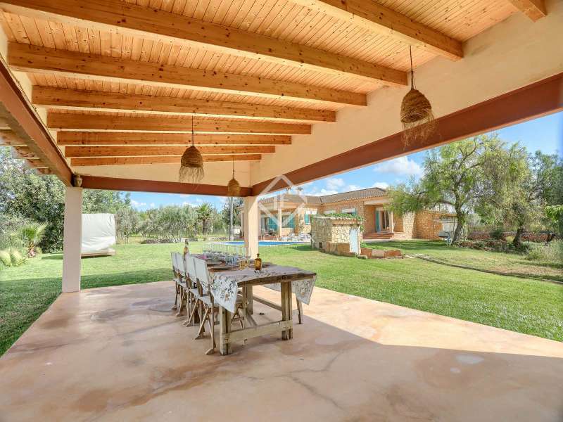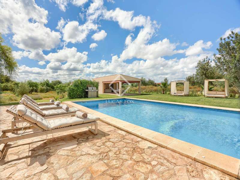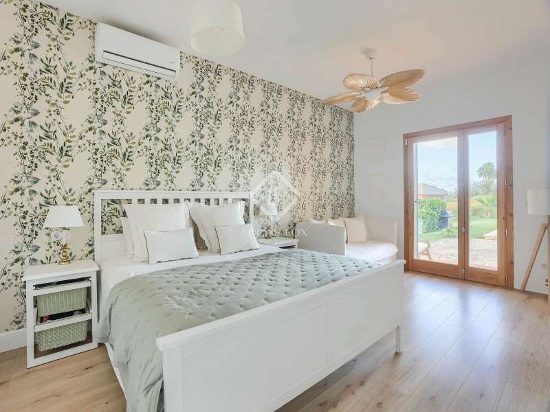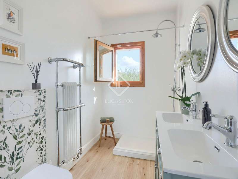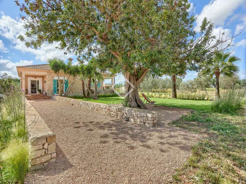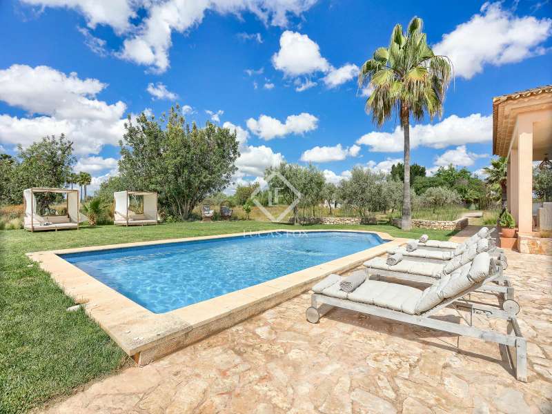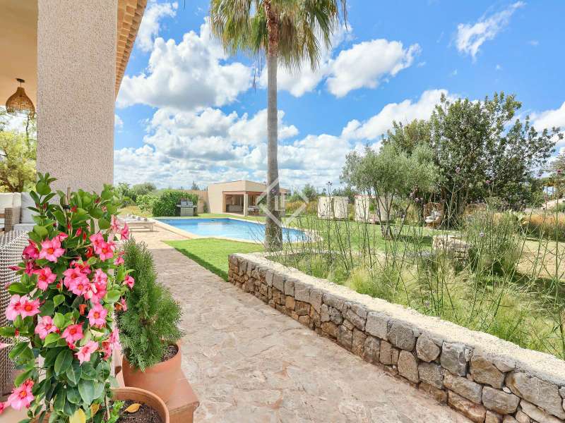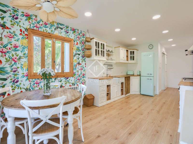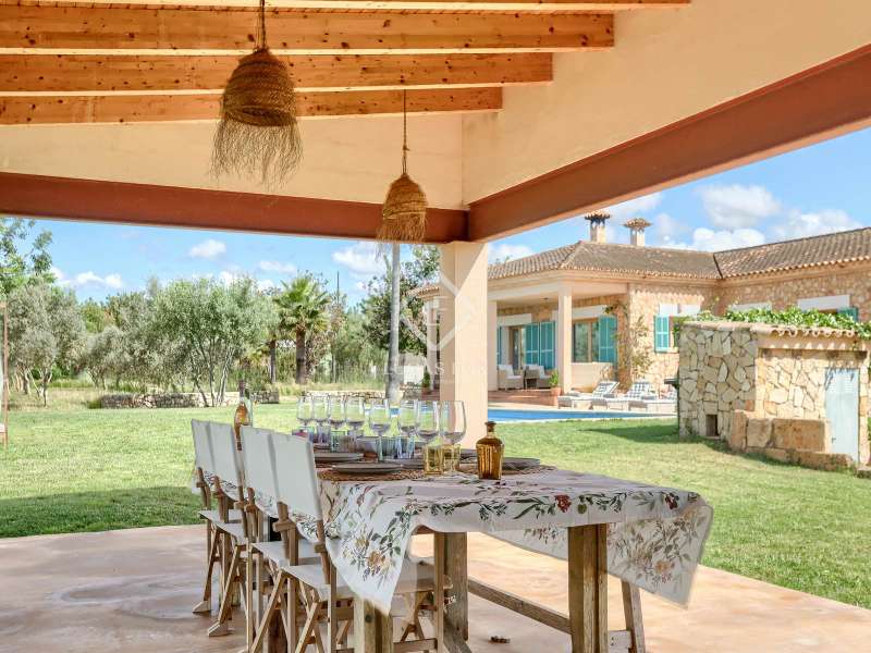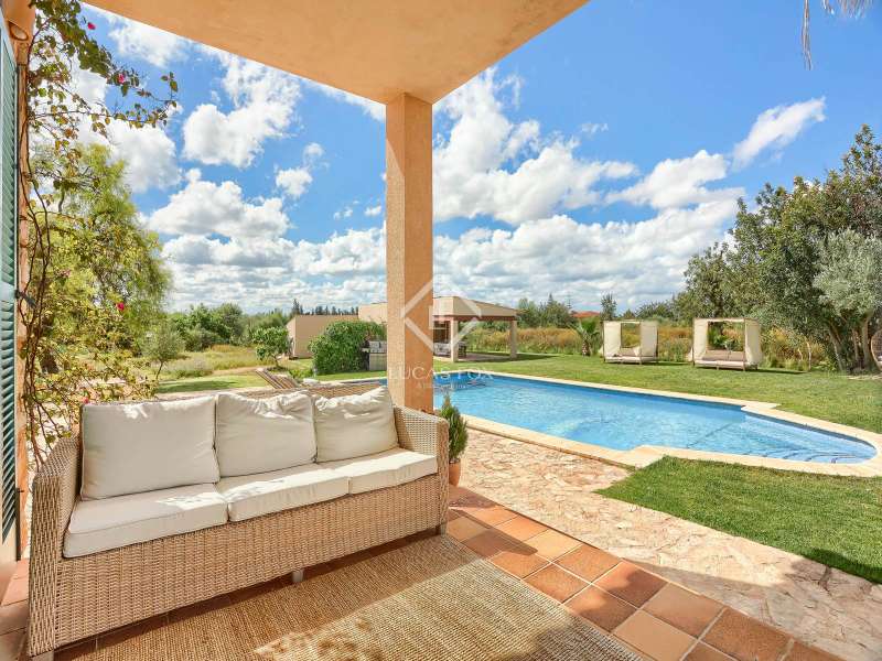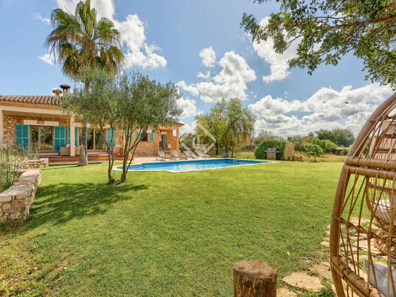 Located just a stone’s throw from the prestigious international school The Academy, this stunning estate offers the perfect blend of Mediterranean charm and modern comfort. Set on a generous 15,000 sqm plot, the property includes a beautifully designed 220 sqm main residence and a fully equipped 100 sqm guest house with a charming porch. The grounds are a true paradise for nature lovers, featuring a wide variety of mature fruit trees—algarrobo, fig, lemon, orange, lime, plum, apricot, and almond—along with a flourishing vegetable garden, perfect for enjoying fresh, homegrown produce year-round. Sustainability meets convenience with 20 solar panels (9.8 kW) powering the entire property, including the outdoor lighting and pool system. A private well ensures a free, self-sufficient water supply, complemented by a water softener and osmosis system. The main house offers three spacious bedrooms, two elegant bathrooms (including a luxurious en-suite with clawfoot bathtub), and a dedicated home office. The kitchen is a chef’s dream—fully fitted with high-end SMEG appliances, a wood-fired stove and oven, and an additional induction hob. The home is sold fully furnished and features independent air conditioning units in every room, fitted wardrobes, and solar-filtered windows for optimal temperature control. Security is a top priority, with a comprehensive alarm system, interior cameras, and contact sensors on all windows and doors. The guest house offers its own slice of comfort and privacy, complete with a bedroom, bathroom, mini kitchen, and a stunning lounge area with a fireplace—perfect for hosting visitors or extended family. Step outside and you'll find a private oasis: a saltwater pool, a bamboo poolside bar ideal for summer entertaining, and a play area for children. And for animal lovers, the property includes eight hens, a rooster, and a beloved pony named Campanilla—all of whom can remain or be relocated at your request. The design of the property is truly remarkable. Every detail has been thoughtfully curated, combining authentic Mallorquín architecture with the warm, minimalist elegance of Nordic interior design. The result is a magazine-worthy home that feels both luxurious and inviting. Located just a 10-minute drive from Palma, this is a rare opportunity to own a peaceful countryside retreat with all the modern comforts—and more. Don't miss your chance to fall in love with this unique property.