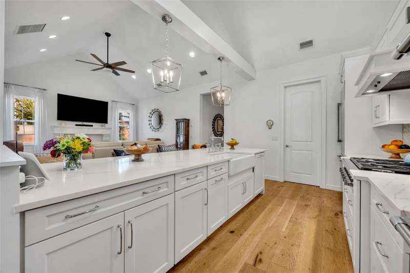 PRICE IMPROVEMENT-Discover this stunning, custom-built home nestled on a tranquil, tree-lined street just steps from all the charm of Winter Park’s renowned Park Avenue. Located in a peaceful neighborhood, this elegant residence combines sophisticated craftsmanship with luxury features throughout its expansive 2,860 square feet of thoughtfully designed living space. Relax on the charming front covered porch, the perfect spot to enjoy your morning coffee. Step inside to find meticulous attention to detail—from stunning wide white oak floors to exquisite custom millwork and soaring ceilings that create an airy, welcoming atmosphere. The chef-inspired kitchen is the heart of the home, featuring an abundance of custom solid-wood cabinets, gleaming quartz countertops, and a large island with seating for four. A generous walk-in pantry with custom shelving and top-of-the-line Thermador stainless steel appliances—including a 6-burner gas stove, double oven, and deep farm sink—make meal preparation and entertaining effortless. Adjacent to the kitchen, a charming dining area is perfect for memorable dinners, while the adjoining family room boasts a soaring cathedral ceiling, a natural gas fireplace with a custom stone mantel, and large windows that flood the space with natural light. A cozy private den offers an ideal retreat for work or relaxation. On the opposite side of the first floor, you'll find a guest suite with a private bath, two additional bedrooms with custom closets, a stylish full bath, and a laundry room with ample storage and a utility sink. The spacious mudroom, accessible from the two-car garage, provides practical storage with built-in cabinets and hooks. Upstairs, the luxurious primary suite features a spa-inspired bathroom with double sinks, custom Restoration Hardware cabinetry, elegant lighting, and a large walk-in shower. A peaceful sitting area and a walk-in closet with custom shelving create a perfect private retreat. Additionally, an upstairs loft offers versatile space ideal for a home office, gym, or additional quiet area. Outside, enjoy a private backyard oasis designed for relaxation and entertainment. Highlights include a “Michael Phelps Chilly Goat” hot/cold tub combo, outdoor TV, and speakers—creating your personal weekend paradise. Additional amenities include a large two-car garage, solid-core doors, crown molding, wide base moldings, dual tankless water heaters, fully-owned solar panels (reducing energy costs), a water softener and purifier, new exterior paint (2023), professionally installed closet shelving (2023), and professionally landscaped gardens. Flooded with natural light and warmth, this exceptional home offers a cozy yet elegant atmosphere. Zoned for top-tier schools—including Winter Park High School—and conveniently located near Lake Highland, Trinity Prep, the Winter Park YMCA, Racquet Club, and Interlachen Country Club, it’s ideal for a vibrant Florida lifestyle. Walkable to Winter Park’s renowned shopping and dining destination, don’t miss the opportunity to make this exquisite property your new home! AVAILABLE BY APPOINTMENT ONLY