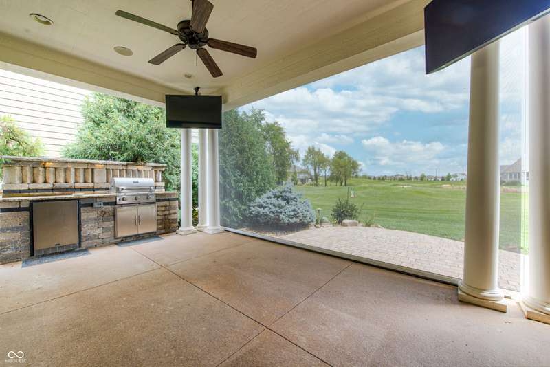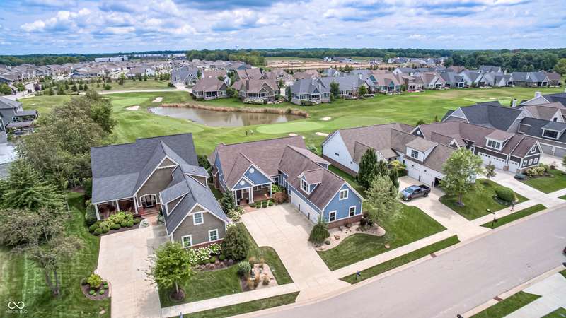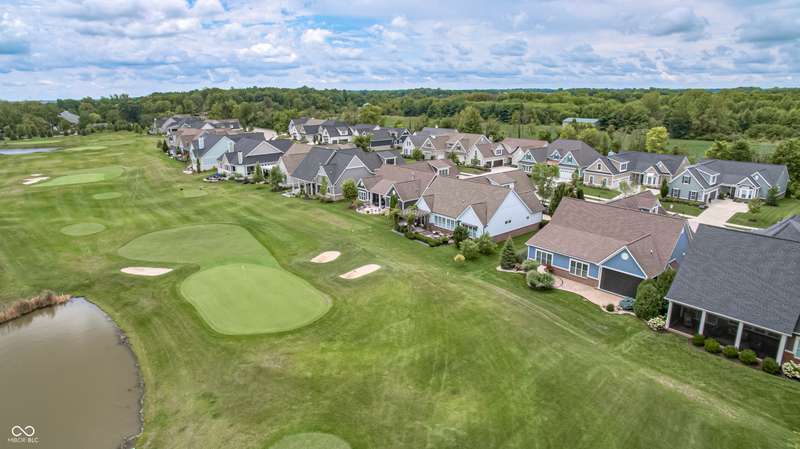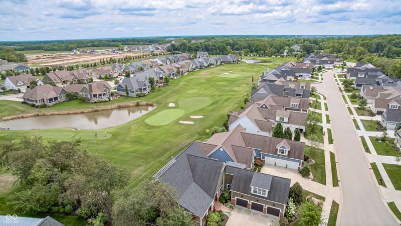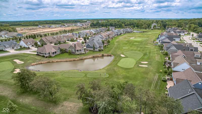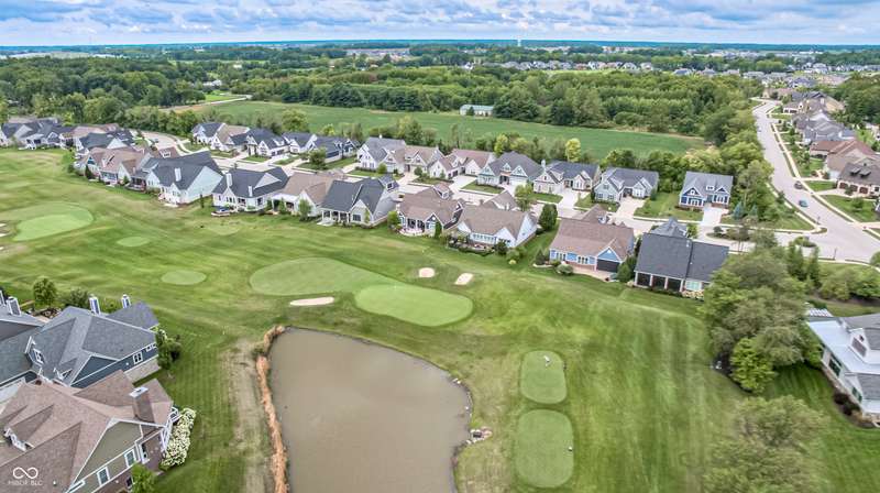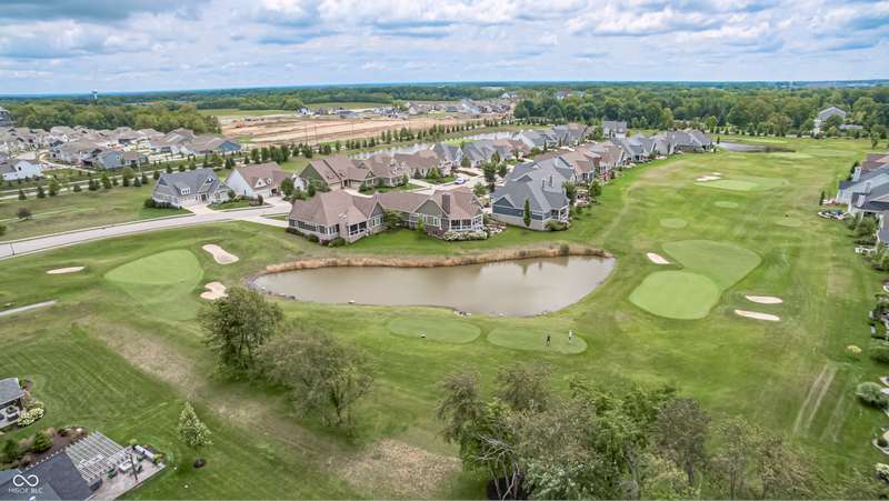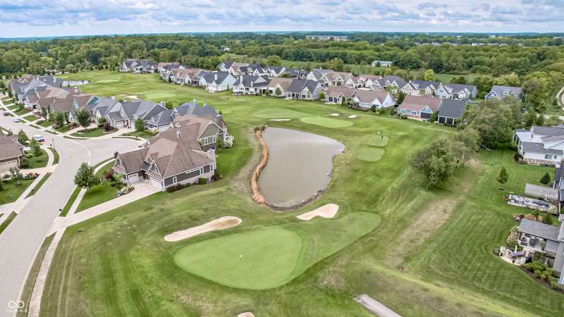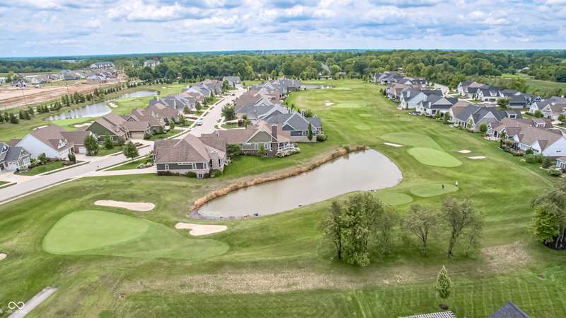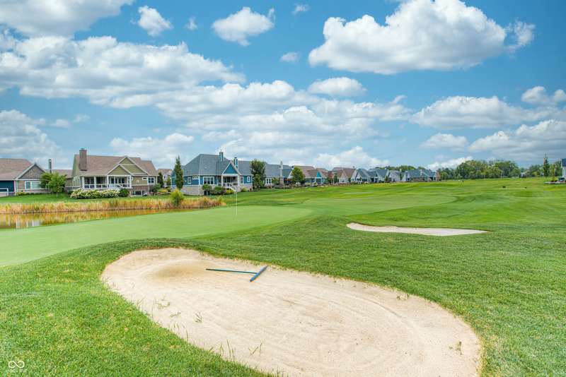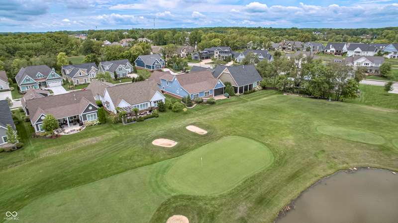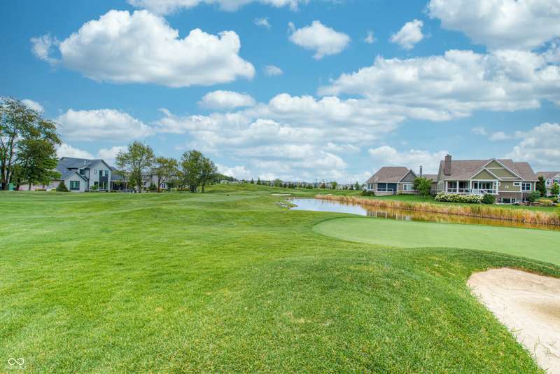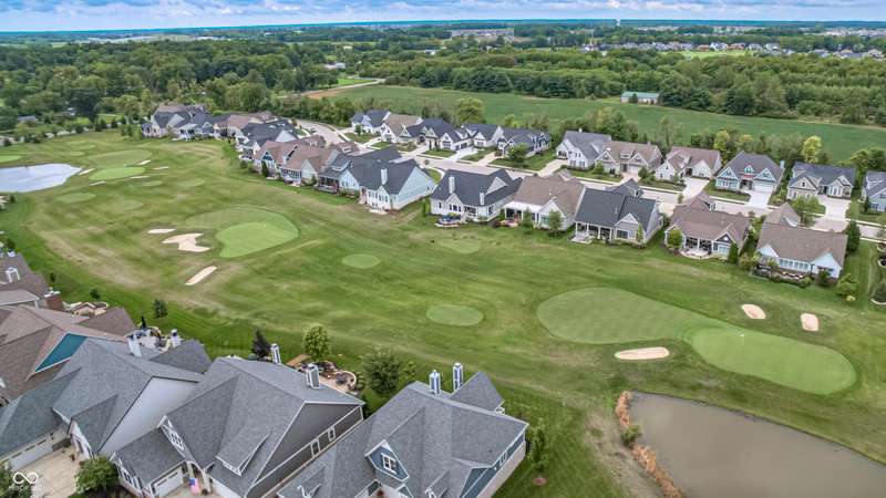 Why wait to build when you can move right into this stunning John McKenzie home on the 8th green of Chatham Hills' Par 3 course in Westfield? This custom built home is a masterpiece of open-floor-plan living, featuring gleaming hardwood floors, soaring ceiling heights, and abundant natural light. The inviting great room showcases a gorgeous fireplace framed by custom built-ins, creating a warm and welcoming atmosphere. The chef's kitchen is a dream, with white cabinetry, a large central island, tile backsplash, quartz countertops, and stainless steel appliances. The main floor primary suite is a private retreat with double sinks, a large walk-in closet, and elegant finishes throughout. Off the foyer, an office with French doors, built-ins, and a charming window seat offers the perfect workspace. Upstairs, you'll find a versatile bonus room/3rd bedroom with a full bath, walk-in closet, and additional space/exercise room/bonus room, ideal for a variety of uses. The outdoor living area is exceptional, featuring a covered patio with a built-in grill and refrigerator, a paver patio, and a fire pit-perfect for entertaining or relaxing. This home is enhanced with numerous extras, including built-ins, professional landscaping, outdoor lighting, and plantation shutters. As an added benefit, ownership offers a Social Membership to the Chatham Hills Club, granting you access to a wealth of amenities: the golf course, a dual-sided driving range with heated stalls, swimming pools, tennis courts, a fitness center, an indoor basketball court, bowling lanes, a golf simulator lounge, sport locker rooms, and diverse dining options. Outdoor enthusiasts will appreciate over 40 acres of parks, a private dog park, and convenient access to the Monon Trail. Full Golf Memberships are also available. Experience unparalleled luxury and lifestyle amenities in Chatham Hills.
