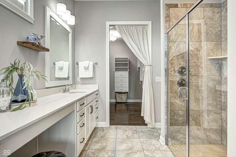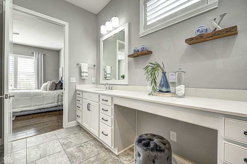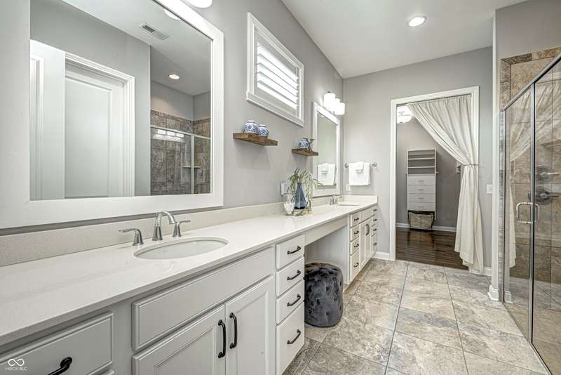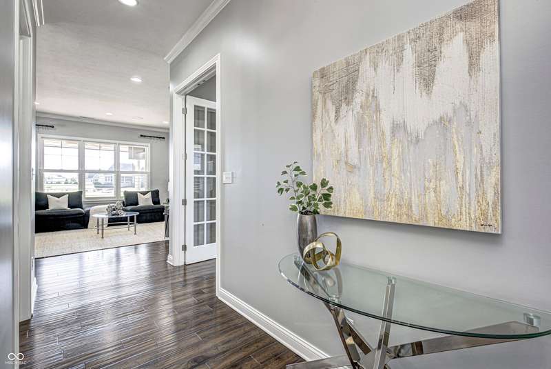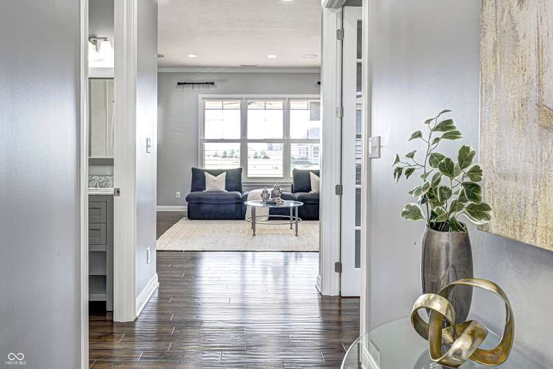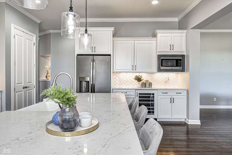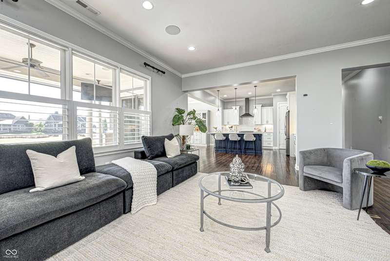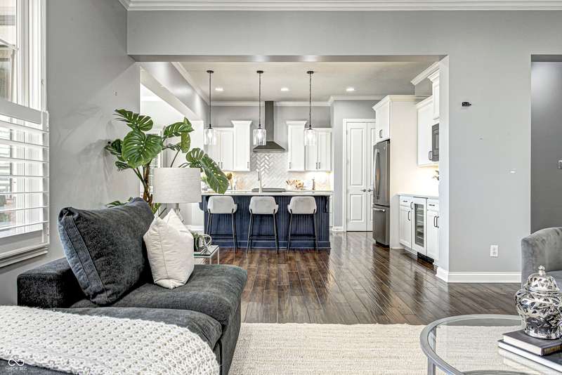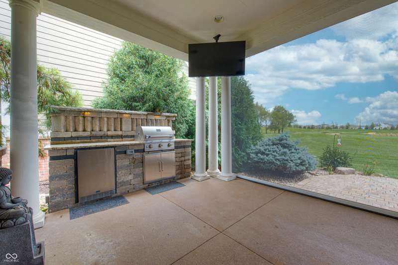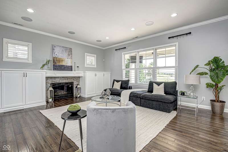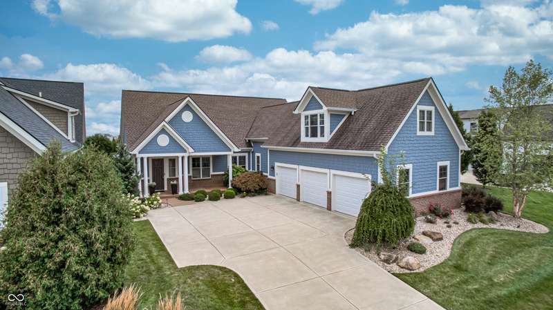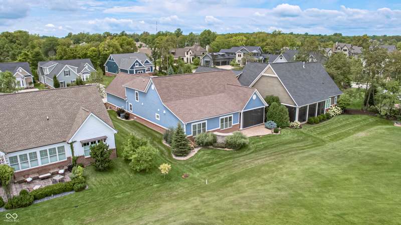 Why wait to build when you can move right into this stunning John McKenzie home on the 8th green of Chatham Hills' Par 3 course in Westfield? This custom built home is a masterpiece of open-floor-plan living, featuring gleaming hardwood floors, soaring ceiling heights, and abundant natural light. The inviting great room showcases a gorgeous fireplace framed by custom built-ins, creating a warm and welcoming atmosphere. The chef's kitchen is a dream, with white cabinetry, a large central island, tile backsplash, quartz countertops, and stainless steel appliances. The main floor primary suite is a private retreat with double sinks, a large walk-in closet, and elegant finishes throughout. Off the foyer, an office with French doors, built-ins, and a charming window seat offers the perfect workspace. Upstairs, you'll find a versatile bonus room/3rd bedroom with a full bath, walk-in closet, and additional space/exercise room/bonus room, ideal for a variety of uses. The outdoor living area is exceptional, featuring a covered patio with a built-in grill and refrigerator, a paver patio, and a fire pit-perfect for entertaining or relaxing. This home is enhanced with numerous extras, including built-ins, professional landscaping, outdoor lighting, and plantation shutters. As an added benefit, ownership offers a Social Membership to the Chatham Hills Club, granting you access to a wealth of amenities: the golf course, a dual-sided driving range with heated stalls, swimming pools, tennis courts, a fitness center, an indoor basketball court, bowling lanes, a golf simulator lounge, sport locker rooms, and diverse dining options. Outdoor enthusiasts will appreciate over 40 acres of parks, a private dog park, and convenient access to the Monon Trail. Full Golf Memberships are also available. Experience unparalleled luxury and lifestyle amenities in Chatham Hills.