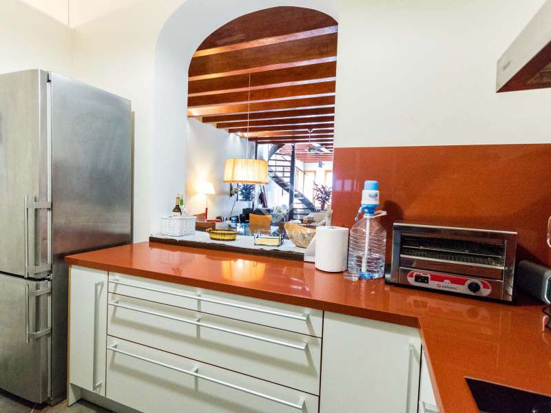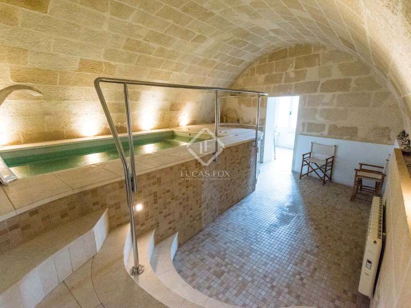 Magnificent manor house located in the heart of the old town and with wonderful views of the port of Maó. Made up of three homes and with a surface area of 698 m², the house was completely renovated in 2006. The main home is accessed through the ground floor hall, where we find a 40 m² garage, a lift and a staircase with a skylight that connects with the other two houses. This level consists of a bathroom, a kitchen and a spacious and comfortable living room with high ceilings with wooden beams, a fireplace and large windows overlooking the port of Maó. This room also connects with the terrace on the upper level through a spiral staircase, as well as with the lower area, which houses a pool-jacuzzi with vaulted stone ceilings, a gallery with a relaxation area and a viewpoint to the port, as well as a service bedroom and a bathroom. On the first floor of the main house we have a master suite with parquet flooring, private bathroom and access to the terrace with panoramic views of the port. This level also offers a skylight patio and a double bedroom with a private bathroom. The second floor has a double bedroom with a small kitchen, a bathroom and access to the terrace. On the first floor, facing the street and with independent access from the stairs and / or the lift, there is a 60 m² apartment with a double bedroom, a bathroom, an open kitchen and a living-dining room. Finally, on the second floor we have a third duplex-type home with a hall, two double bedrooms and a bathroom. The attic, which has sloping roofs, houses a bedroom, a bathroom, a modern open kitchen and a living room with access to the upper terrace and panoramic views of the port and the city. The entire building was renovated with great taste, using top quality materials and preserving decorative details in a stately style. Without a doubt, a unique home with all the necessary comforts to spend great moments with family and friends. It would also be ideal to live all year round and enjoy the historic centre of Maó. The information described here is merely informative and is assumed to be accurate, however, the above data may be subject to errors, price changes or changes in conditions without prior notice.