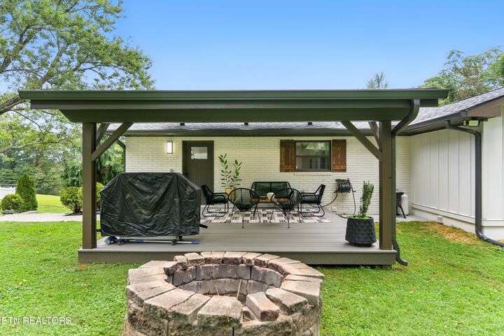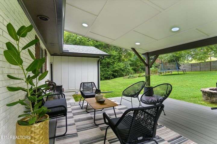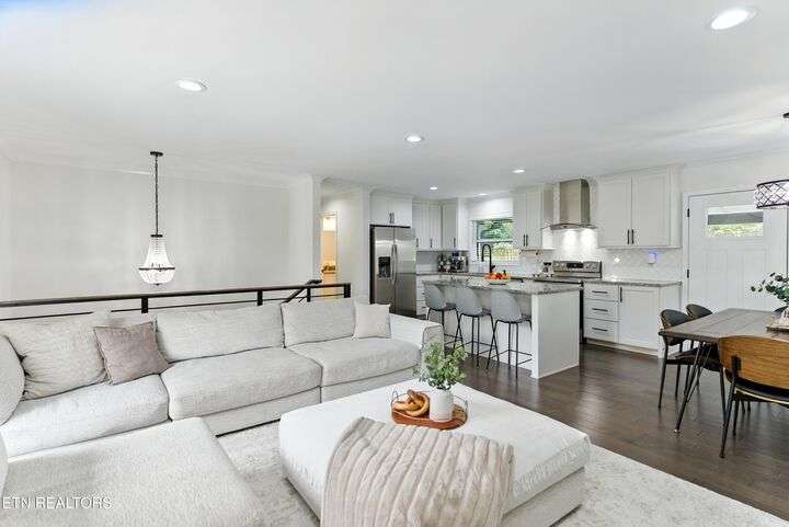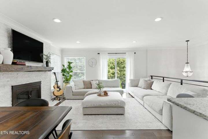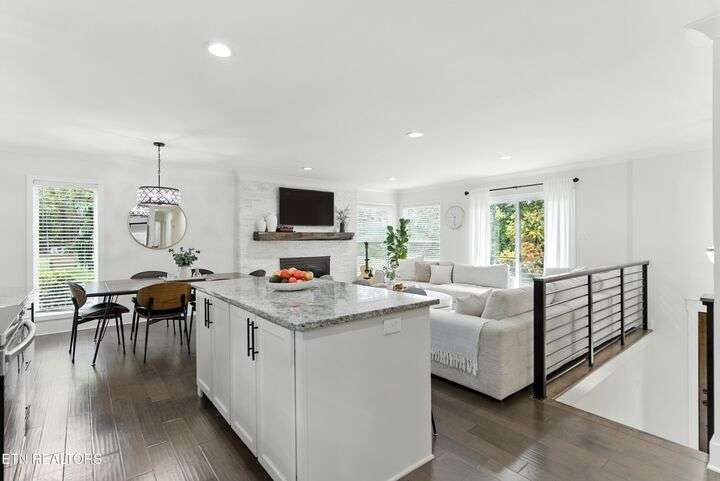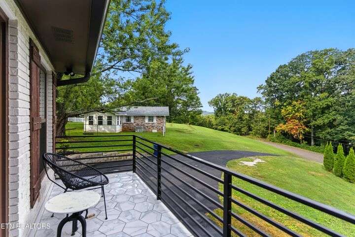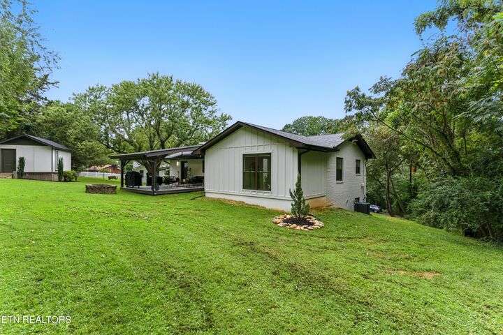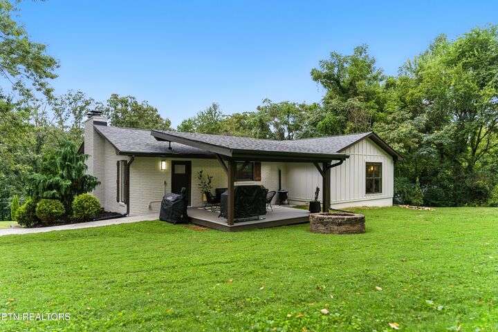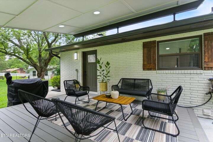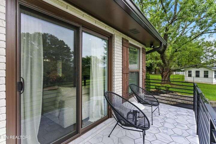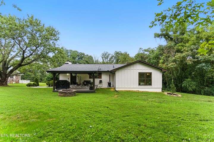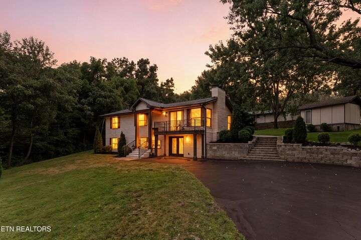 Beautifully Renovated 5-Bedroom Home with Spacious Living Areas This meticulously updated split-level home features 5 bedrooms and 3 bathrooms with a versatile, open layout. The main level showcases a bright living room with a stone fireplace, dining area, and balcony. The master suite and two additional bedrooms are conveniently on the main floor. The fully finished basement offers two more bedrooms, a second living area, and direct outdoor access—ideal for guests, extended family, or a home office. Enjoy outdoor living with a covered back patio, fire pit area, and a landscaped yard. The exterior has been refreshed with painted brick and charming wood accents, creating excellent curb appeal. Conveniently located near numerous restaurants, shopping centers, and just 15 minutes to downtown Knoxville and the University of Tennessee, this move-in ready home blends modern updates with abundant space for comfortable living.