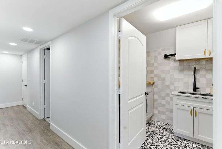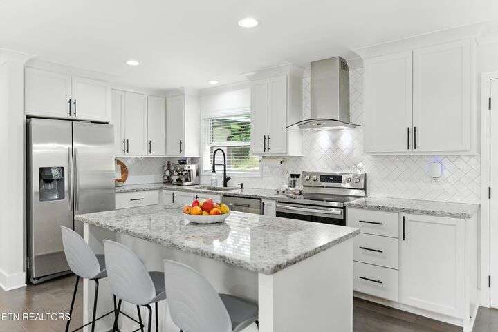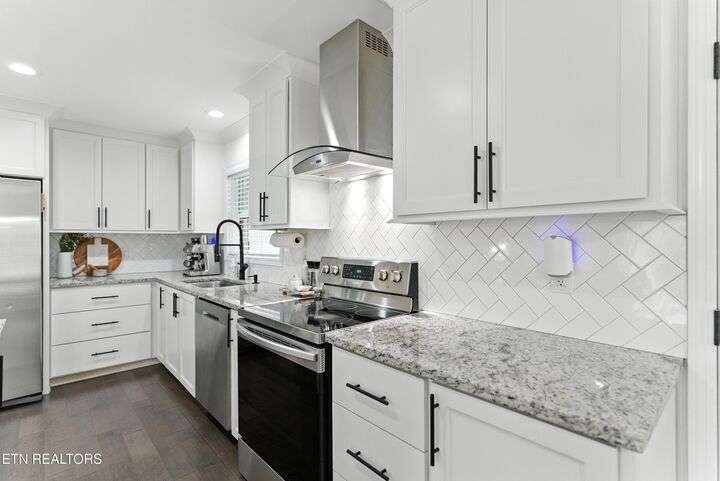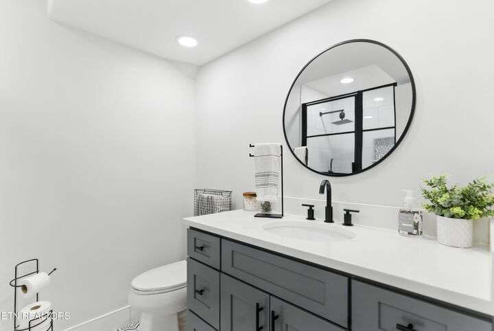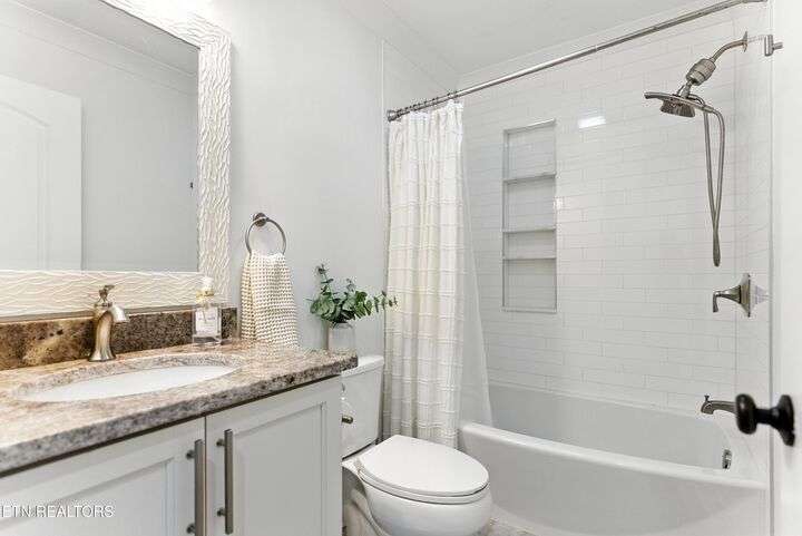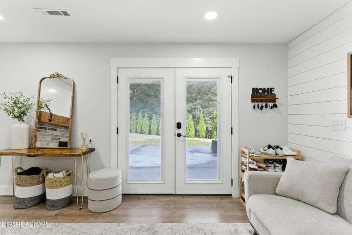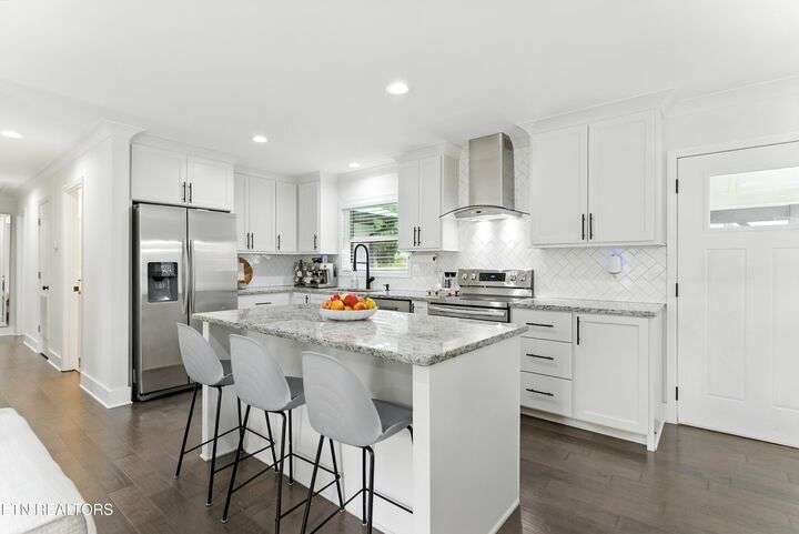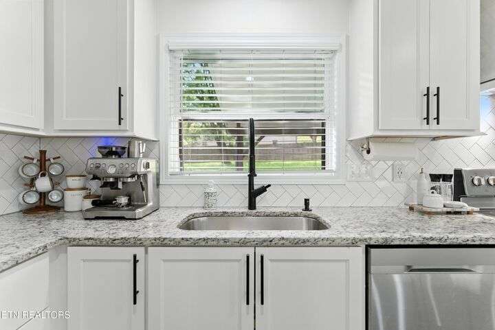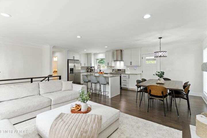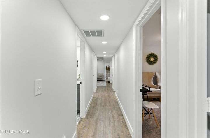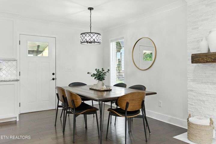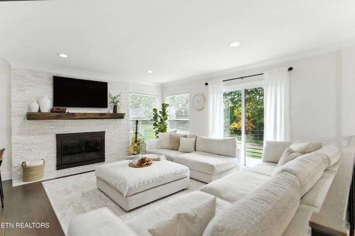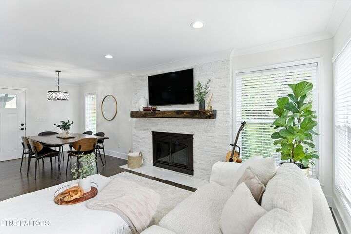 Beautifully Renovated 5-Bedroom Home with Spacious Living Areas This meticulously updated split-level home features 5 bedrooms and 3 bathrooms with a versatile, open layout. The main level showcases a bright living room with a stone fireplace, dining area, and balcony. The master suite and two additional bedrooms are conveniently on the main floor. The fully finished basement offers two more bedrooms, a second living area, and direct outdoor access—ideal for guests, extended family, or a home office. Enjoy outdoor living with a covered back patio, fire pit area, and a landscaped yard. The exterior has been refreshed with painted brick and charming wood accents, creating excellent curb appeal. Conveniently located near numerous restaurants, shopping centers, and just 15 minutes to downtown Knoxville and the University of Tennessee, this move-in ready home blends modern updates with abundant space for comfortable living.