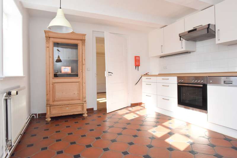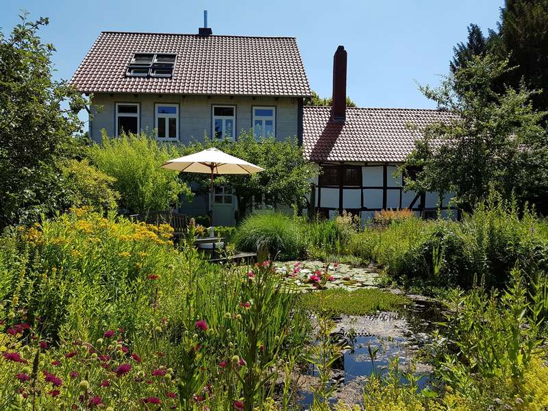You enter the 2,654 m² property through a large wooden gate. Framed by two lime trees over 100 years old, there are two half-timbered houses and several outbuildings arranged in a U-shape on a natural courtyard. The stylish, well-kept garden with a cottage garden features a historic arbor, a pond, wooden terraces, a perennial garden and a small orchard. A brick grotto currently serves as a laundry area. Half-timbered house on the right ("House 1"): The half-timbered house was built around 1902, has a living space of approx. 200 m², beautiful high and bright rooms with historic interior doors including handles and has a full basement. The entrance area was fitted with a stylish oak front door in 2021, which can be fully opened with two leaves. On the first floor, you enter a beautiful, large, representative hallway with refurbished, historic terrazzo flooring. The floor is adorned with a decorative circular tile. North and south bedrooms and a renovated shower room are located on the first floor. The upper floor is reached via the wide, refurbished oak staircase with stylish, turned banisters. The fitted kitchen and bath, two rooms and a large hallway area, most of which has sanded and sealed original wooden floorboards, lend style and charm to the upper floor. A refurbished, wide wooden staircase leads to the fully developed attic with a wood-burning stove, which is currently used as a living room. The roof, covered with clay roof tiles, is designed as a so-called "Harz roof", insulated and fitted with two Velux skylights facing north and south. The large east gable facing the Asse mountain range is glazed and offers a beautiful view over the village to the forest. The house has a full basement and offers several storage rooms and storerooms. Modern, stylish wooden windows were installed in the large half-timbered house in 2013 in accordance with energy and safety regulations. The front door is as good as new, floors and wall surfaces have been refurbished and renovated. The electrical system has been modernized, internet connection and cable connection are of course available. The exterior beams have been cleaned and painted, and the timber framing has been repointed. The basement windows have been fitted with burglar bars. The half-timbered house on the left ("House 2") is a listed building: The half-timbered house on the left dates from 1730, completely renovated in keeping with the original style with a living area of approx. 95 m² (floor area approx. 170 m², partly low ceiling height - included in the calculation of the living area). Visible half-timbered beams, the original oak staircase and the wooden paving in the hallway give the house a special charm. The rest of the house has vinyl flooring. A traditional brick tiled stove and a built-in shelf in the living room, as well as a large floral window make the room feel cozy. The fitted kitchen with terracotta flooring and the bathroom with bathtub are also located on the first floor. On the upper floor there is a large bedroom with a walk-in dressing room, a north and south room and a large hallway area that can be designed as a living corridor. The loft above offers plenty of storage space. The property was completely renovated after the last tenants moved out. The house has a partial basement.