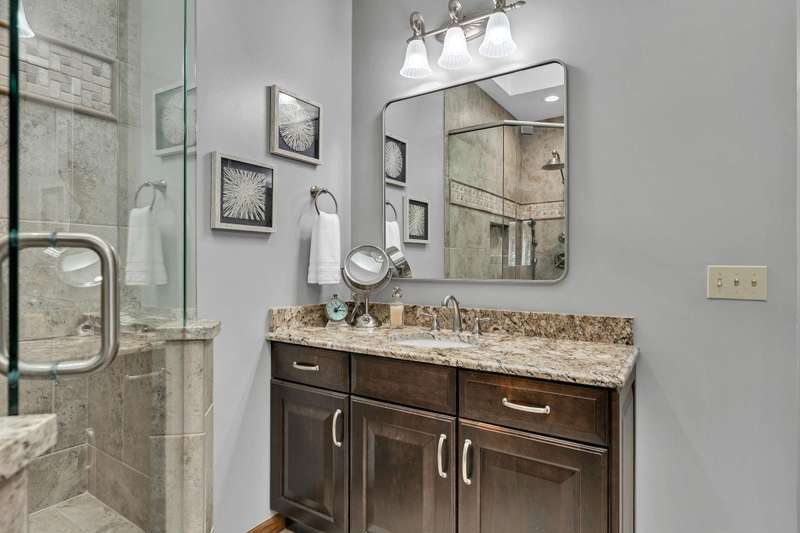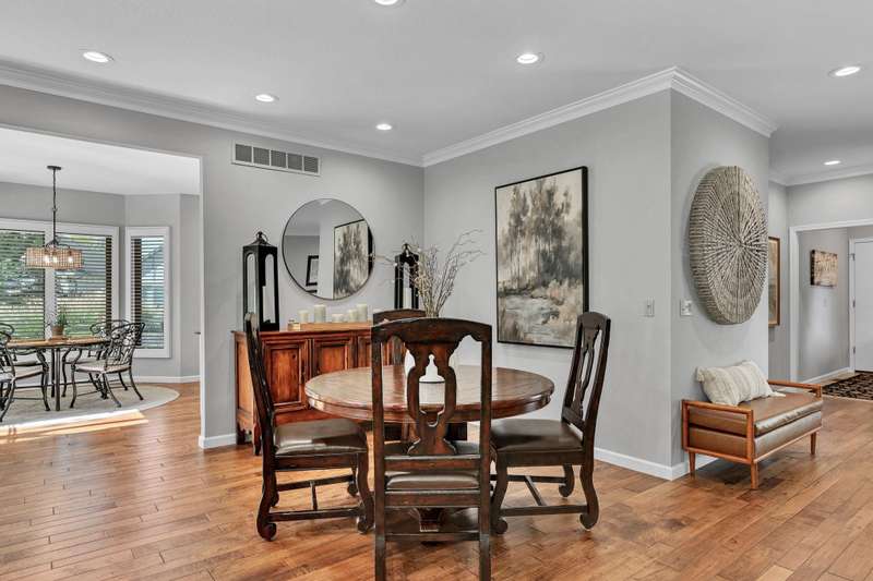 Welcome home to a special street where neighbors become friends. This beautifully remodeled patio home offers the perfect blend of elegance and ease, featuring a chefs kitchen with a gas stove, stunning finishes, and options for dining in the kitchen or formal dining room. The spacious living room boasts gorgeous views and a cozy fireplace, creating the ideal space to relax or entertain. The main-floor laundry provides ample room for linens and storage, while the primary suite impresses with a large walk-in closet, walk-in shower, dual vanities, and exquisite finishes. Downstairs, the entertainers dream basement awaits, filled with natural light and featuring a large wet bar, space for a game table, and a comfortable area to watch the big game. Additional highlights include a finished office, cedar closet, and generous storage room. Nestled in the highly sought-after Reflection Ridge community, this home truly has it all!