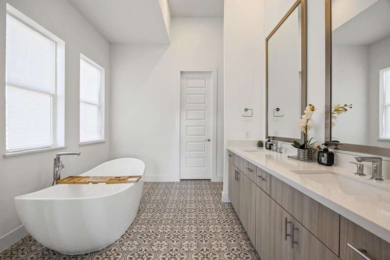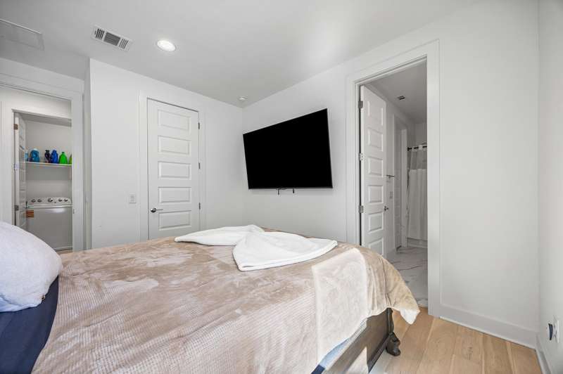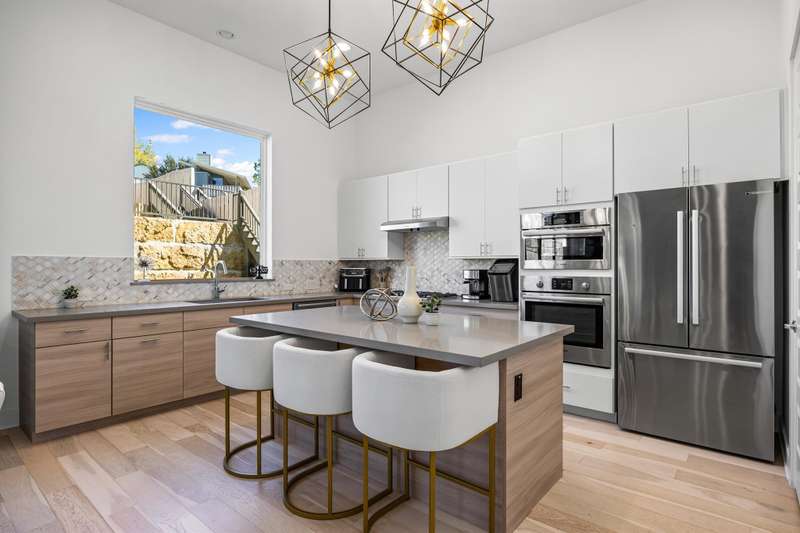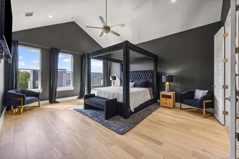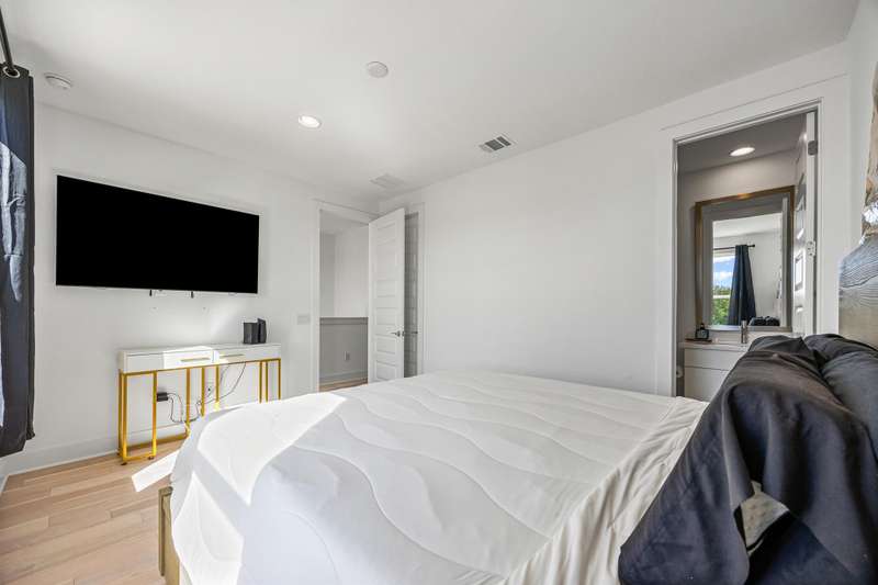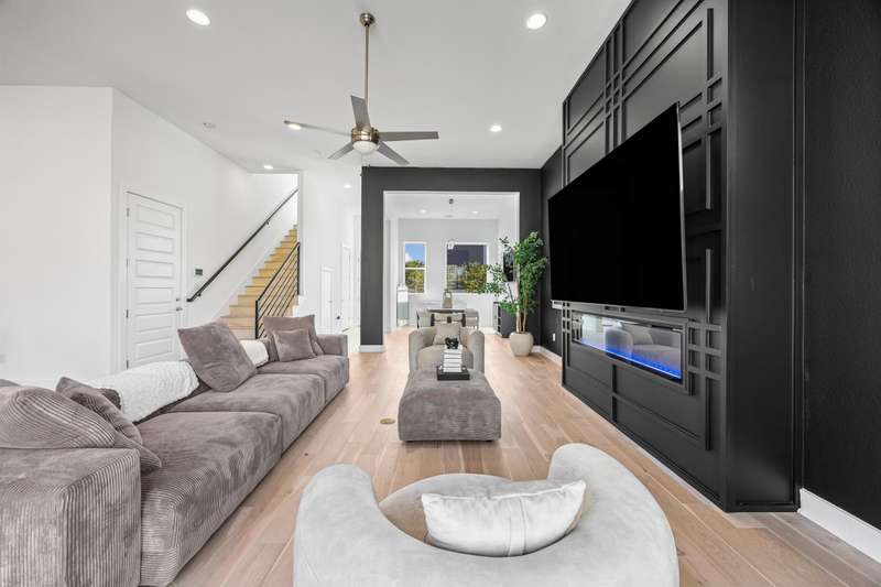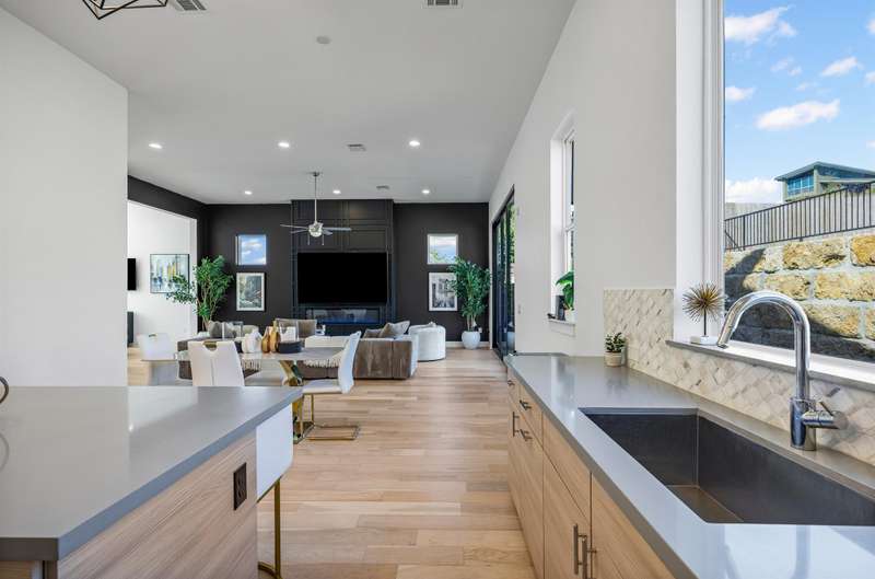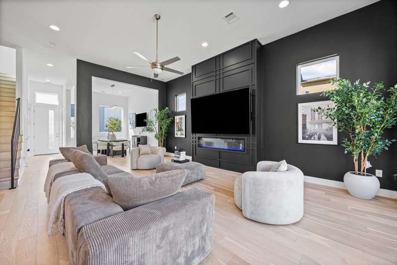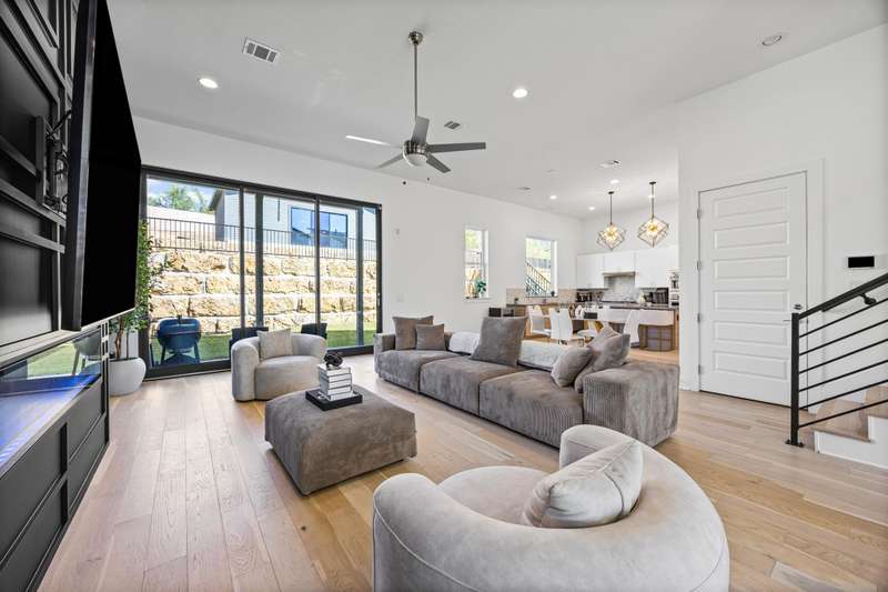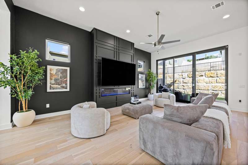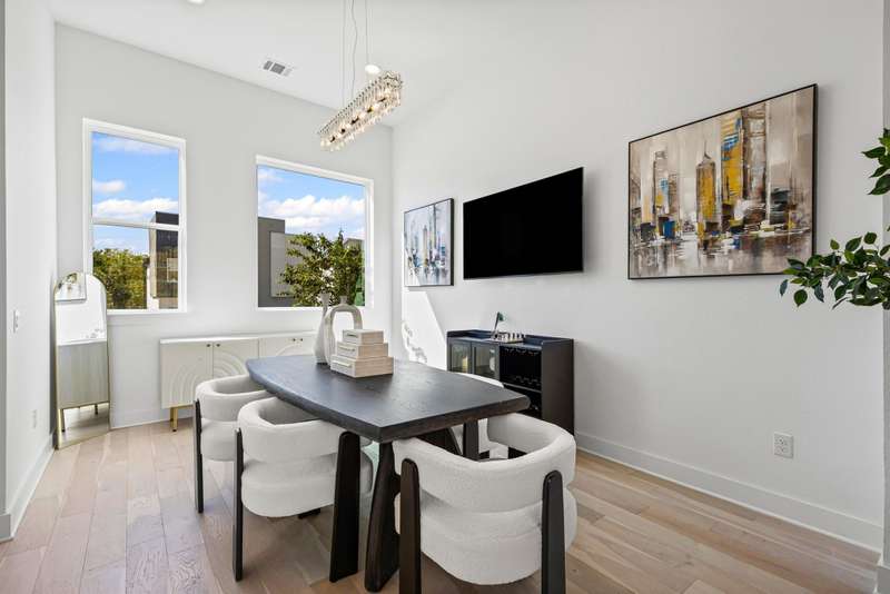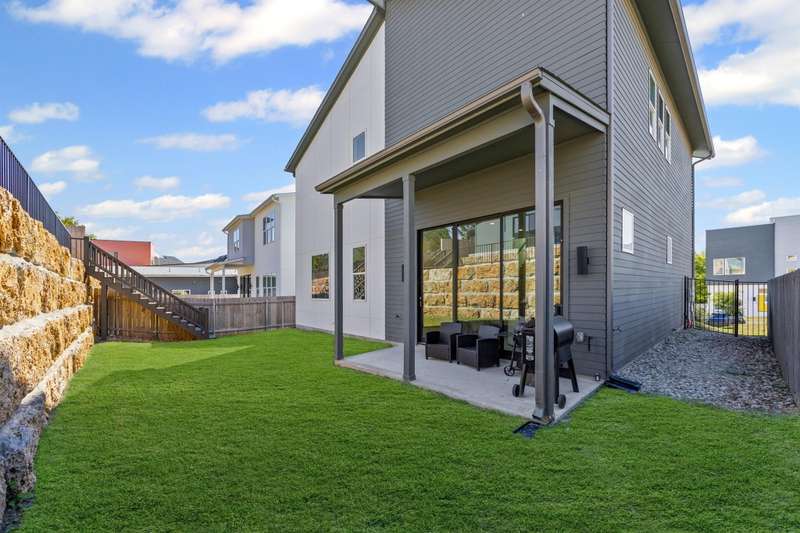 Modern Luxury Living in East Austin’s Coveted Agave Community Experience contemporary sophistication in this architecturally striking 4-bedroom, 3.5-bath residence located in East Austin’s highly sought-after Agave community. Designed for modern living and effortless entertaining, this upgraded home combines sleek aesthetics, thoughtful functionality, and an exceptional location just minutes from downtown and the vibrant East Side. Step inside to an airy open-concept layout bathed in natural light from expansive windows that frame treetop and city views. Soaring ceilings, warm wood floors, and gorgeous quartz countertops create a harmonious blend of comfort and refinement. The chef-inspired kitchen boasts premium Bosch appliances, streamlined cabinetry, and designer tile finishes, while the electric fireplace in the living room adds an elegant focal point and cozy ambiance. Upstairs, the primary retreat is a true sanctuary featuring vaulted ceilings, a spa-like ensuite bath with a sculptural freestanding tub, and custom walk-in closets for an elevated daily experience. Each secondary bedroom is generously sized, providing flexible options for family, guests, or a dedicated home office. Outdoors, enjoy a private backyard oasis complete with a detached ADU/gym — a unique architectural gem that rises above the main home and offers expansive downtown Austin views. Perfect as a creative studio, fitness space, or guest suite, this retreat enhances both lifestyle and long-term value. Additional upgrades include dual Tesla wall chargers in the garage, energy-efficient systems, and premium finishes throughout. Located within minutes of Austin’s best restaurants, breweries, and music venues, this home offers the perfect balance of urban convenience and refined tranquility. Discover your modern masterpiece in Agave — where cutting-edge design meets East Austin charm.