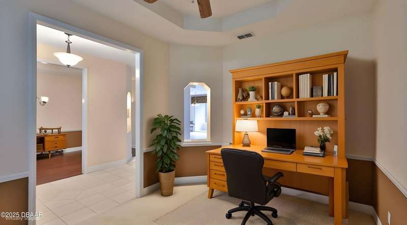 Don't miss out on this great Home in Halifax Plantation!. Nearly 2200 Living Space.. Nine Foot Ceilings. Formal Dining and Living Rooms. Large Family Room with a Gas Fireplace. Plantation Shutters Throughout! Light and bright Kitchen Cabinets. Stainless Steel Appliances. Large decorative tiled Screened Porch. Private Backyard backing up to woods. Irrigation system with well/pump. Tray Ceilings. Beautiful Wood plank flooring in Dining Room, Master Bedroom & Hallway. Dual Walk In Closets. Master Bath has a Roman Tub Plus a Separate expansive Shower. Split Plan. Sun Tunnels. Oversized Deep Garage. Gorgeous Mature Landscaping. Big Lot. Halifax Plantation offers numerous amenities, centered around a clubhouse with fine dining, a sports pub, and event facilities, including a grand ballroom and meeting rooms. Residents can enjoy an 18-hole golf course with practice facilities, four clay tennis courts, a Junior Olympic-sized swimming pool, and a fitness center. The community also features miles of tree-lined streets ideal for walking and biking, a pet-friendly environment, and proximity to local parks and beaches. Convenient Location. Steps away from shopping. Quiet Area. Only 15 minutes to the Beach.. Close to Tomoka State Park. Excellent School District. Established Neighborhood!