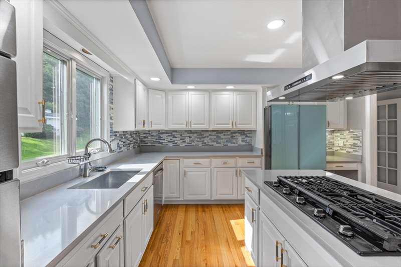 Dripping w/sophistication, this sprawling east-facing 6-bedroom home is ideally sited on a picturesque country road, on just shy of an acre of meticulously manicured grounds. From the moment you step into the dramatic 2-story foyer, you ll be captivated by the home s elegance & thoughtful updates. Flexible floor plan offers formal living & dining rooms, perfect for entertaining. Show-stopping family rm, featuring soaring cathedral ceilings, floor-to-ceiling stone fireplace & access to a screened porch & private backyard oasis w/tranquil koi pond. A chef s kitchen has center island & plenty of space for casual dining & gatherings. 1st flr office/bedroom, full bath & laundry rm. Upstairs, the luxurious primary suite offers a spa-like bath & walk-in closet, 4 add l generously sized bedrooms including private ensuite w/skylights, walk-in closet & full bath ideal for multigenerational living. This home offers refined living in a peaceful setting, making it a rare & exceptional find!