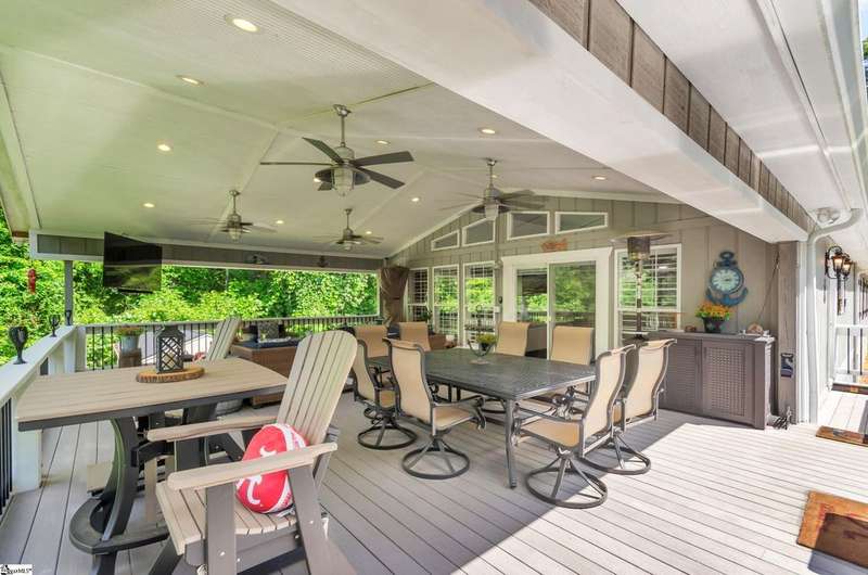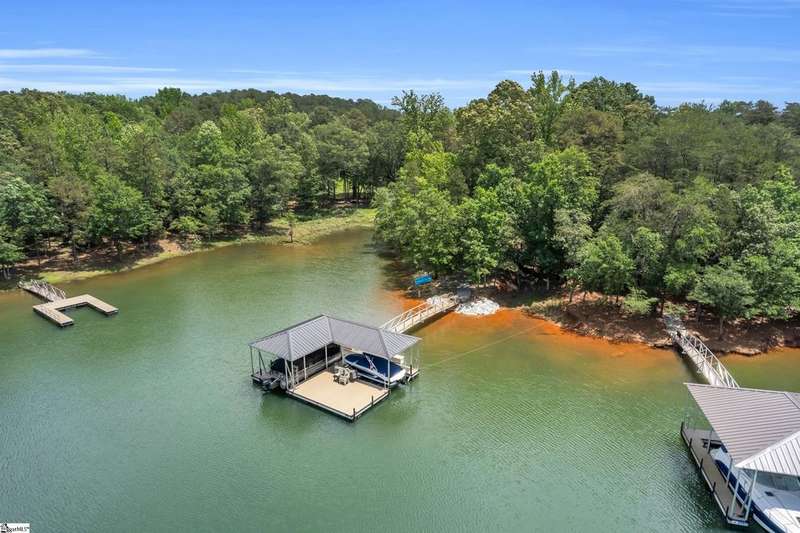Welcome to Luxury Lakefront Living on Lake Hartwell! Discover your dream home with this stunning 3-bedroom, 3-bath perfectly positioned on a spacious lot with water views and direct access to deep water. As you step through the door, you're immediately greeted by an open-concept living area framed by breathtaking lake views. The heart of the home is the chef's kitchen, featuring custom cabinetry, quartz countertops, an expansive island, and a walk-in pantry with additional built-in cabinetry for generous storage. The main level primary suite is a true retreat, showcasing his-and-hers custom walk-in closets and a luxurious ensuite bath complete with double vanities, quartz countertops, a freestanding jetted tub, a marble tile walk-in shower, and marble flooring. A second bedroom and full bath are also conveniently located on the main level. Step outside to the expansive covered deck, ideal for year-round outdoor living and entertaining. Downstairs, the finished basement offers additional living space, a third bedroom, and a full bath. Just off the bedroom, a covered patio invites more outdoor relaxation and lakefront enjoyment. Follow the paved, level path perfect for walking or golf cart rides down to your private dock. Designed for fun and functionality, the dock is fully equipped with power, water, double boat slips with lifts, a jet ski lift, and plenty of space to lounge, swim, or fish in the quiet, deep water cove. Located just 10 minutes from downtown Hartwell and a short boat ride to Big Water Marina and Lake Hartwell Marina, convenience meets tranquility in this ideal lakefront setting. Both marinas have waterfront dining, making it easy to enjoy a meal or drinks by the water after a day on the lake. Whether you're seeking a full-time waterfront escape or a weekend retreat, this move-in ready home offers the perfect blend of comfort, elegance, and outdoor enjoyment. Don't miss your chance to call this exceptional property home schedule your private showing today and be ready to enjoy summer on the lake in style!