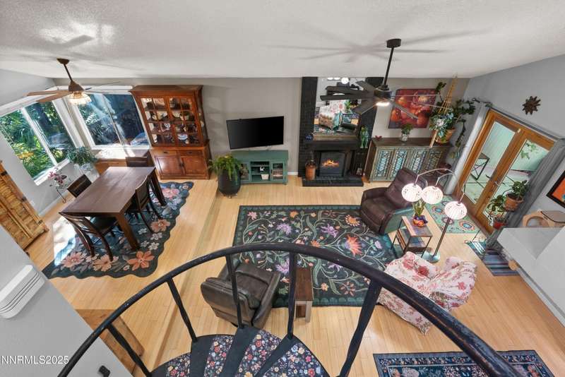Light, bright, and beautifully renovated, this 2,151-square-foot home blends modern upgrades with timeless comfort. Nearly 100K in improvements since 2021 include dual-pane Low-E windows, professional interior paint, a new 125-amp electrical panel, tankless water heater, remodeled hall bathroom, lighted ceiling fans, a rebuilt Trex deck and a whole-house security system. Many Smart Home features. Kitchen has custom cabinets with pull-out shelves. Vaulted ceilings add character to the spacious great room with a fireplace. Main-floor primary bedroom with 2 large closets. Renovated bath with walk-in shower. A second bedroom, full bath and extra closets complete the main level. A classic spiral staircase leads to a loft/office/third third bedroom. Outside, low-maintenance perennial plants and trees give the yard privacy, color and tranquility. Meadowridge maintains the front of the property, as well as the pool, tennis courts and walking trails. Walk to shopping, parks, a popular elementary school. Just a 10-minute drive to the Reno-Tahoe Airport.