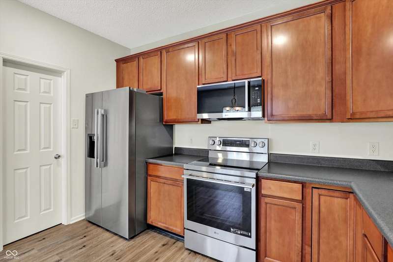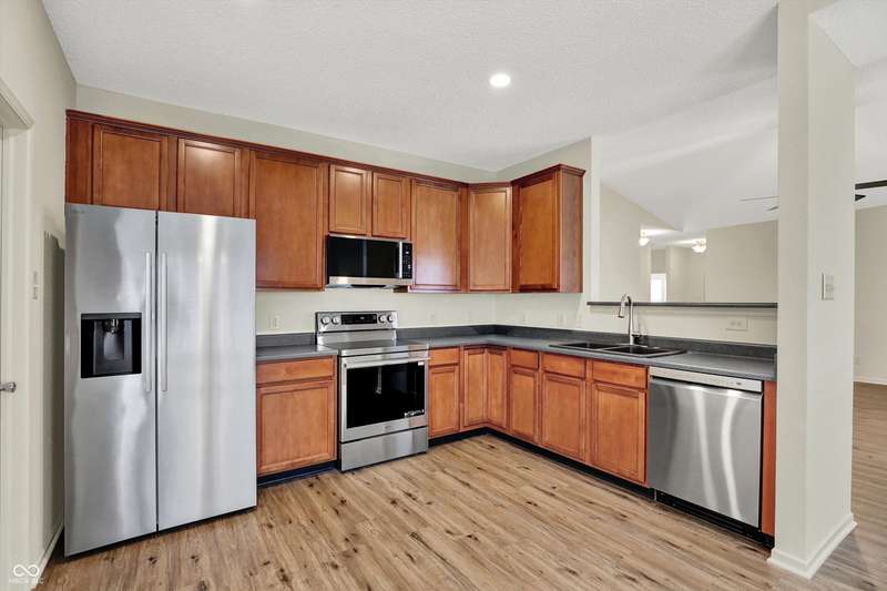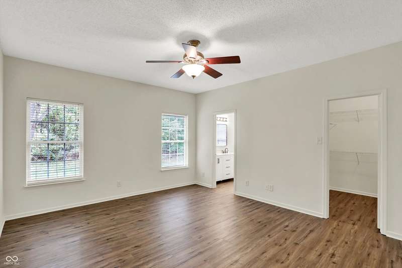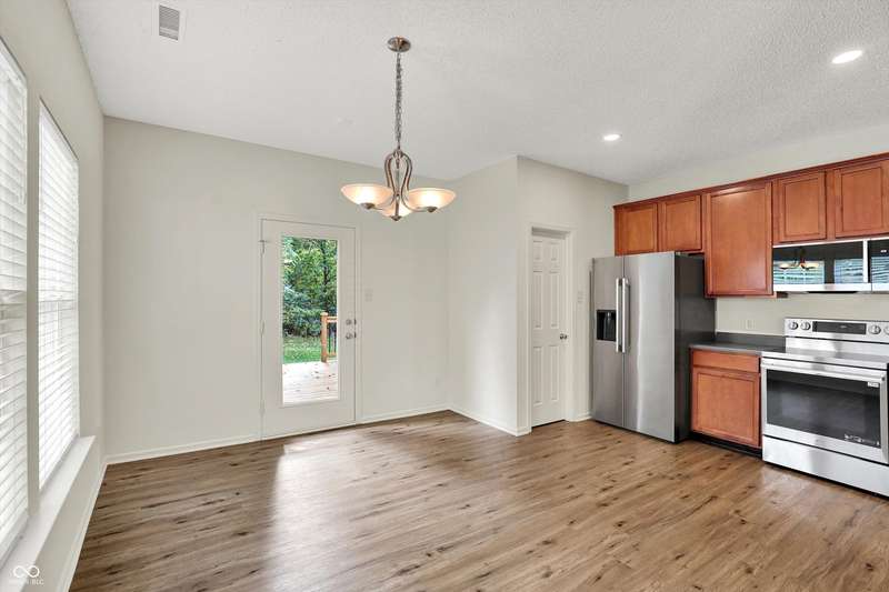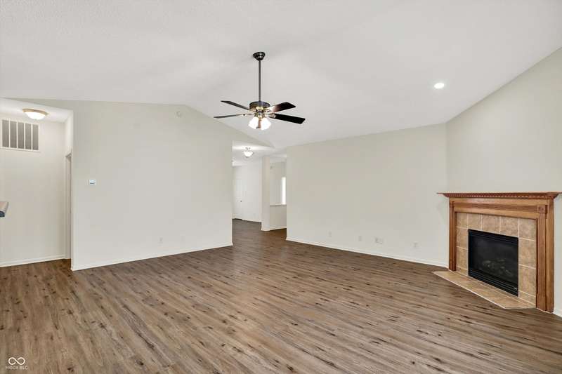 Welcome to this move-in ready, spacious ranch home featuring an open and inviting floor plan! The generous and open great room boasts a vaulted ceiling, cozy gas fireplace, and new LVP flooring throughout. The large eat-in kitchen offers brand-new stainless steel LG appliances, a walk-in pantry, and plenty of space for cooking. The primary suite includes a large walk-in closet and a freshly updated bathroom with a new dual-sink vanity, quartz countertops, and modern finishes. A versatile flex room provides endless possibilities-home office, gym, or play area. Step outside to enjoy a huge, refinished deck overlooking a private backyard, perfect for relaxing or entertaining. Recent updates provide peace of mind, including a brand-new roof (2025), HVAC (2023), water softener (2025), and fresh neutral interior paint. Convenient location to Hamilton Town Center, shopping, restaurants, and more!