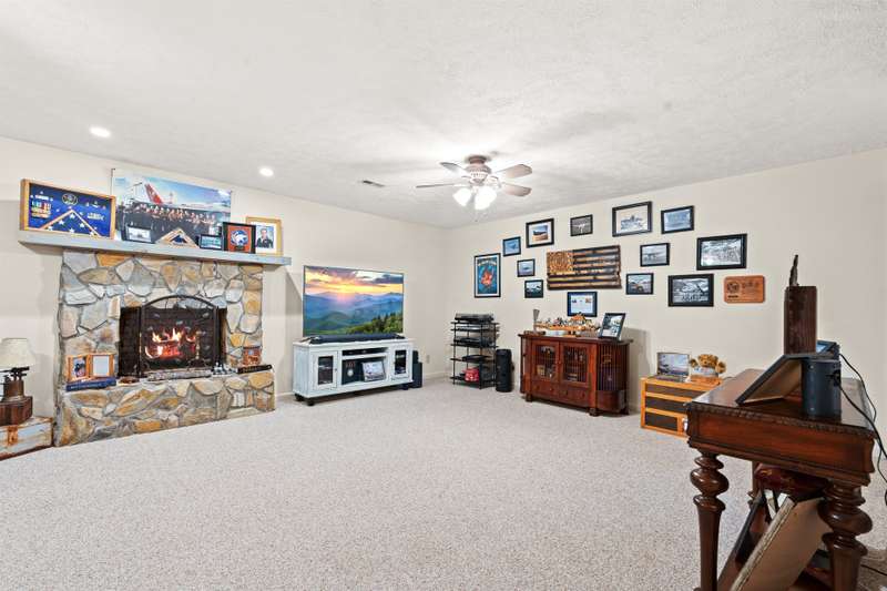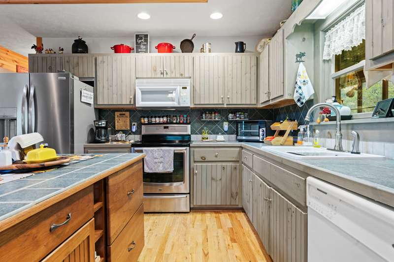 This charming log cabin, situated on 0.98 acres, is nestled on the North Carolina and Virginia border. It features a covered rocking chair front porch, perfect for enjoying the beautiful, changing mountain seasons and pastoral views. Inside, you'll find an open-concept floor plan with wood flooring and tongue-and-groove accents on most walls and ceilings. A beautiful, stacked-stone, Propane fireplace enhances the log cabin ambiance and provides warmth. This property offers over 1,700 square feet of living space, with a main-floor laundry, two bedrooms, and two full bathrooms, including an en-suite primary bath. The lower level provides a spacious den with a wood-burning fireplace and a propane wall unit heater. There is also an oversized one-car basement garage that can accommodate both a vehicle and an ATV. A screened-in porch spans the back of the house, offering wooded views and opportunities to observe wildlife. It's an ideal setting for gathering with friends and family or relaxing to the sounds of nature. Approximately 20 minutes to Jefferson. Both short-term and long-term rentals are permitted. **NEW** New American Standard heat pump installed in 2020, whole house generator 10/24, New kitchen refrigerator 6/25, 2 new commodes, new primary walk in shower, new tankless water heater, and new gutter leaf guards.** Please note that this property is owner-occupied, so we kindly request a minimum of one hour's notice for all appointments.