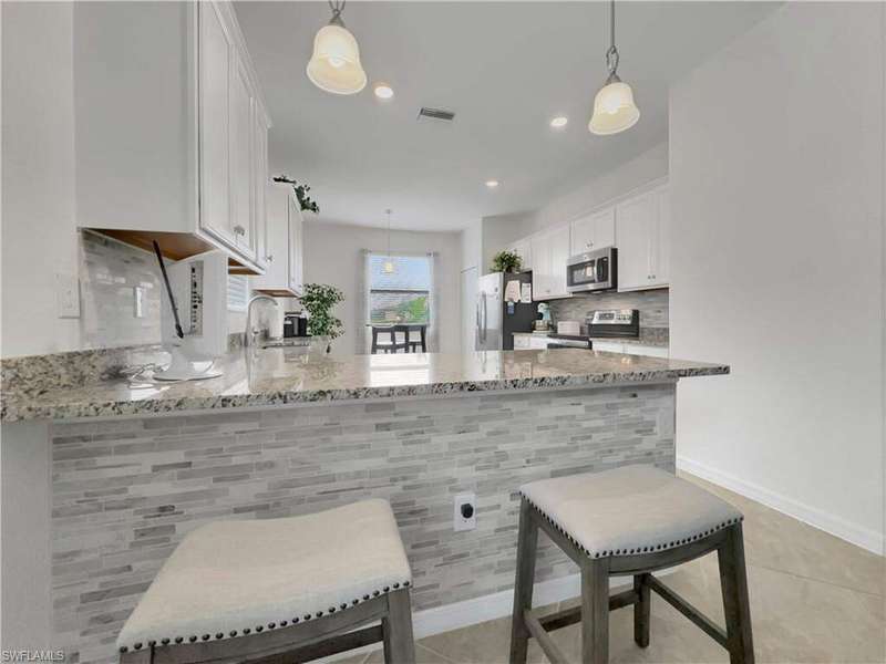 BEAUTIFULLY UPGRADED FLORIDA DREAM HOME, LOCATED IN HIGHLY DESIRABLE PORTICO PHASE 1! QUICK MOVE-IN POSSIBLE! Discover the allure of this 3 bedroom / 2 bathroom residence, nestled in the vibrant and family-friendly Portico community in Fort Myers, FL. This stunning Capri floorplan by Lennar combines modern comfort, thoughtful upgrades, and the serene charm of an amenity-rich neighborhood. Built in 2018, the home seamlessly blends modern luxury with a smart and stylish layout, creating an ideal sanctuary for families, professionals, and retirees alike. It includes a 2-car garage, smart home technology, energy-efficient appliances, and high-quality finishes throughout. You will love the open living concept of this home! The great room flows effortlessly into the dining area and gourmet kitchen, making it perfect for hosting gatherings or spending quality time with loved ones. The kitchen is a chef's dream, feat. white cabinets, stainless-steel appliances, a large counter (granite) with breakfast bar seating + breakfast nook by the front window, and a stylish kitchen + island backsplash. Retreat to your luxurious owner's suite, complete with a large walk-in closet and a spa-inspired en-suite bathroom w/dual vanities, a soaking tub, and a separate walk-in shower. Two additional bedrooms, each thoughtfully designed with comfort and privacy in mind, can easily be transformed into guest rooms, home offices, or playrooms, accommodating your family's unique needs. Tall sliding glass doors lead from the living room to the covered and fully screened-in lanai, which has been extended by the current owners to create a large sun deck, providing an ideal space for entertaining, relaxing, or enjoying Florida's gorgeous sunsets in comfort and privacy. The lanai can also be accessed from the 2nd bathroom through an extra door, giving you the option to use it as a pool bath. The lovely backyard has plenty of room to add a pool! A big plus and valuable upgrade of this property are the rolling aluminum STORM SMART HURRICANE SHUTTERS ($11,000 value), which protect all windows around the house! FURTHER UPGRADES of this fantastic property include laminate flooring in owner's suite and one other bedroom, screened-in entry, A/C with UV-Filter & upgraded condenser, Google Nest thermostat, garage isolation, epoxy garage floor, new generator & hook-up in garage, upscale ceiling fans and light fixtures, upgraded landscaping, and more. Washer and dryer are also included, located in a laundry room inside the residence, for your convenience! NO FLOOD INSURANCE REQUIRED! PORTICO is a highly sought-after, access-controlled community w/Low HOA fees. Residents enjoy resort-style amenities, including a clubhouse, community pool, gym, yoga/exercise room, tennis, pickleball, basketball + play area. Pets, Fences & LSVs permitted! Great location, short drive to I-75, shopping, dining & more!