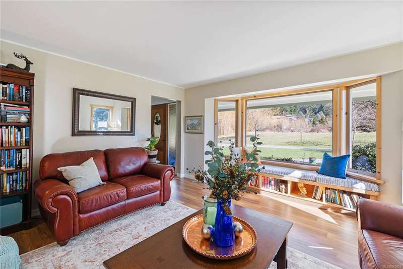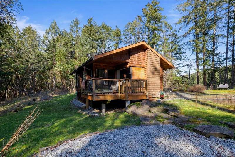 Set your sights on this inspiring, serene, ten acre, sun drenched, home and cottage retreat, with a fantastic Sunset Drive location, peek a boo ocean view and the most gorgeous mix of gently sloping meadow (including fenced areas for furry friends), thoughtful tended plantings and calming natural west coast landscape. Quality built impeccable inviting and comfortable 3 bed/3 bath home, with oversized windows welcoming perfect light, aesthetically pleasing and stylish décor palette and an appealing floor plan. Privately set from the home sits an adorable 602 sq. ft. country cottage; a fabulous space for accommodating visiting family and friends. Other admirable features include the double attached garage, animal shelter, pole barn and two woodsheds. This special property is ready for your idyllic dream of rural island life!