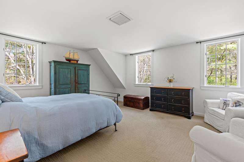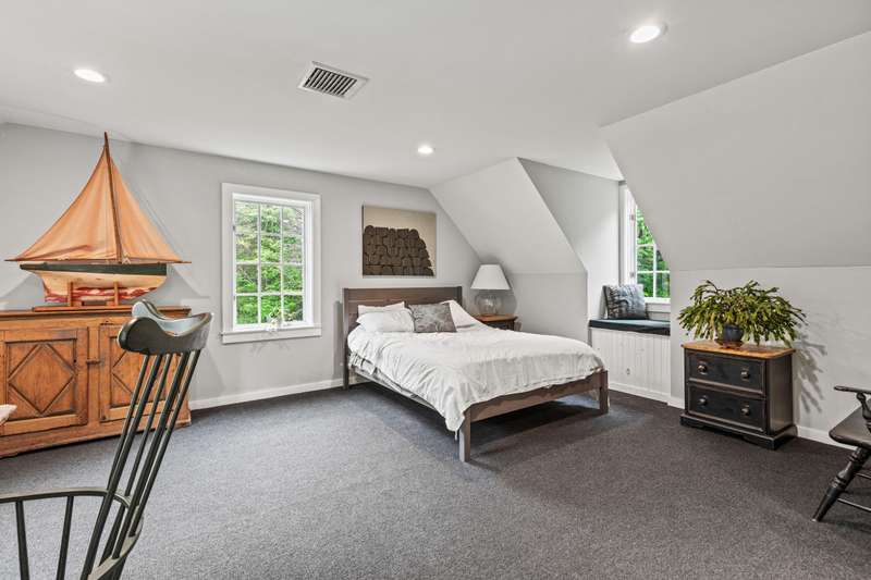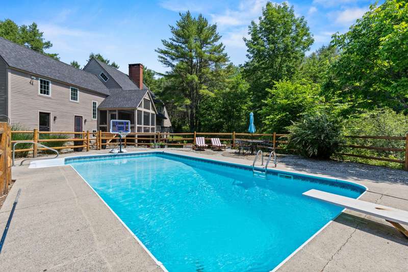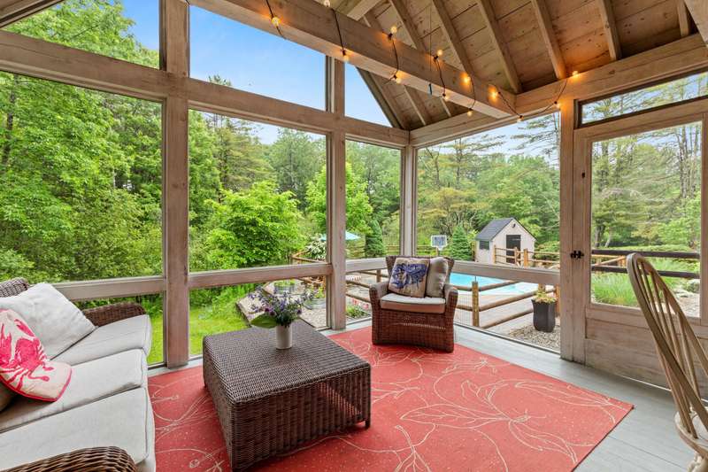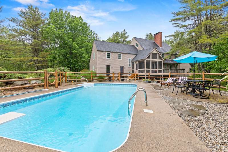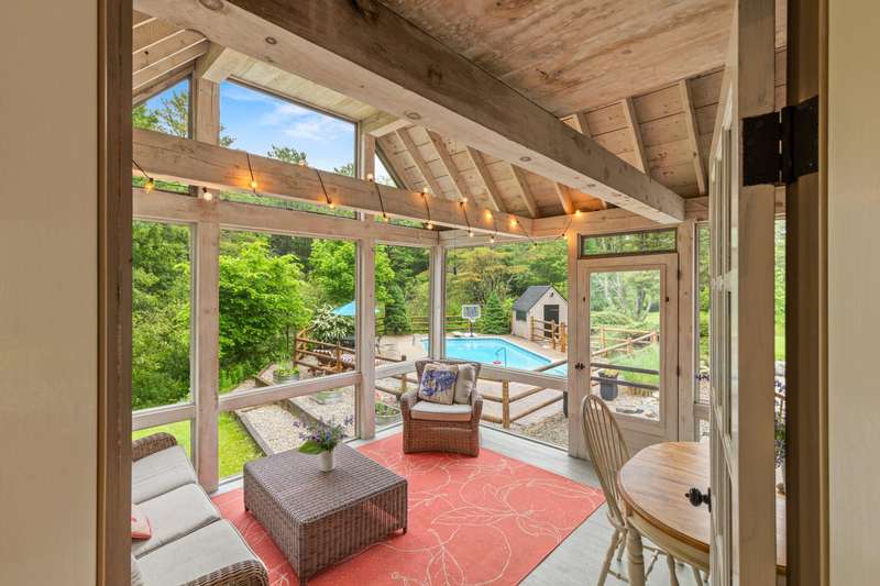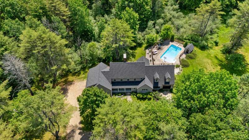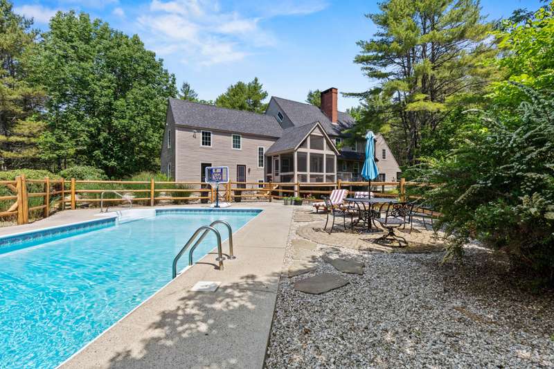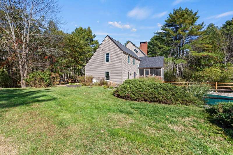 Nestled on 9.21 acres of wooded land, this beautiful property offers the perfect blend of privacy, comfort, and convenience - just a few minutes drive to Yarmouth Village and steps to Pratt's Brook Park, with its 220 acres and six miles of walking and cross-country skiing trails. A winding 600-foot driveway leads you from Ledge Road to a meticulously maintained farmhouse, architecturally designed and built in 2000. Encompassing over 3,800 square feet across three levels, this home provides generous living spaces and indoor parking for three vehicles. The first floor welcomes you with a relaxed, open-concept layout featuring a large kitchen with a center island and walk-in pantry, adjoining a spacious dining area and cozy family room with a wood stove. Just beyond, a screened three-season porch overlooks the backyard and the heated, in-ground pool-perfect for entertaining or quiet summer evenings. A separate living room with a wood-burning fireplace, mudroom entry, and half bath complete the main level. Upstairs, you'll find four spacious bedrooms, including a serene primary suite with a walk-in closet, renovated master bath, and a private adjoining office. Two additional fully updated bathrooms serve the other bedrooms, offering comfort and modern convenience for family or guests. The lower level consists of 550 square feet of finished gym/playroom and a full, separate workshop. The home also includes a central air conditioning system. An adjacent 3.12-acre parcel is also available for purchase at a reduced rate to the buyer of this property, providing the opportunity to expand or develop one or two additional lots. Located in the desirable Ledge Road neighborhood, this home offers a rare combination of seclusion, natural beauty, and community, just minutes from Yarmouth's award-winning public schools and charming village amenities.