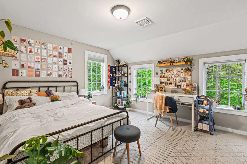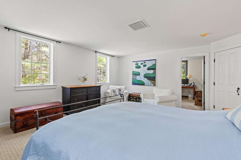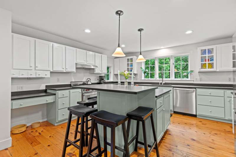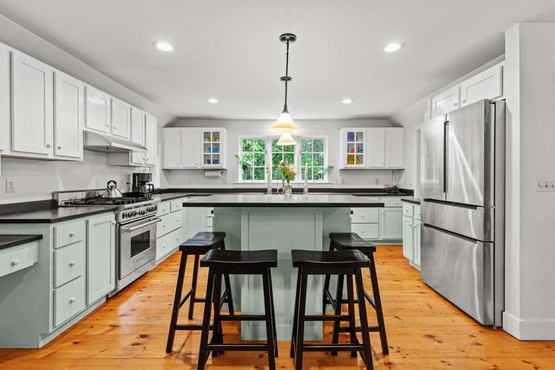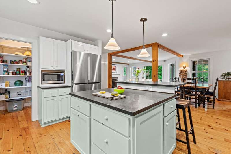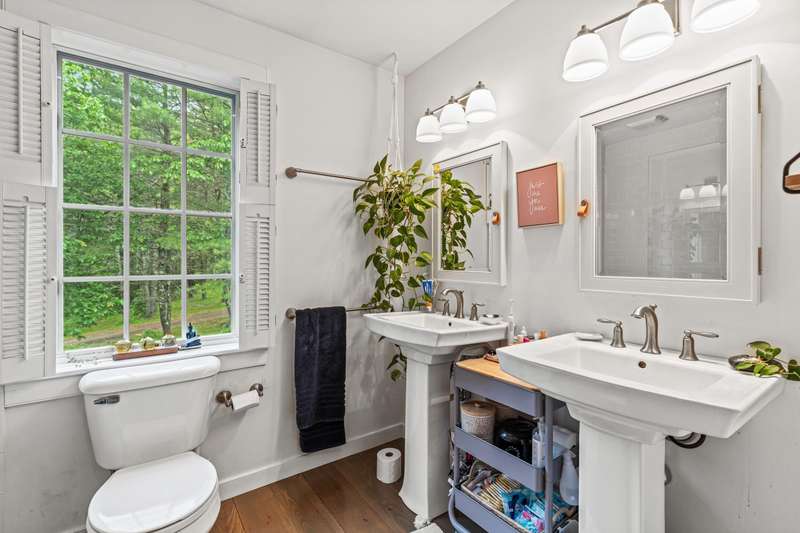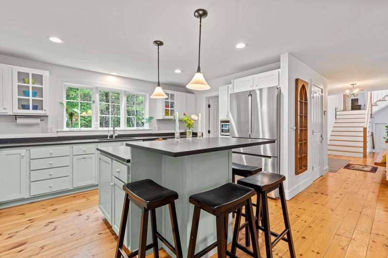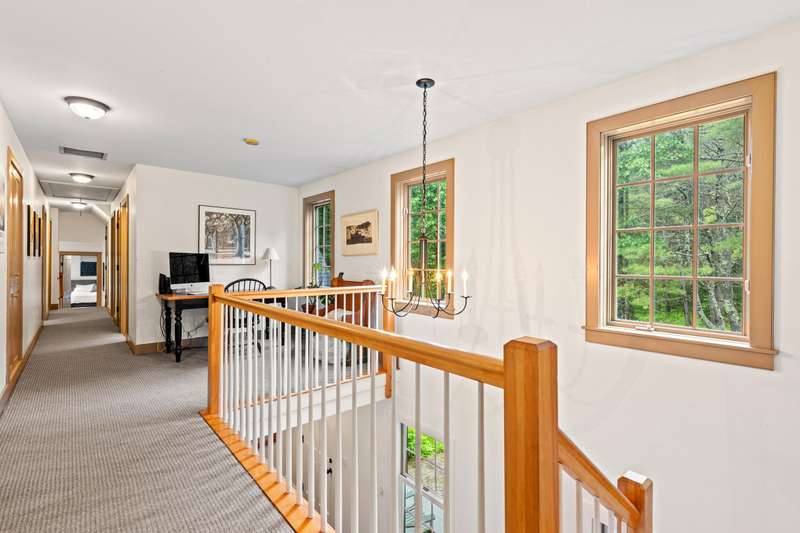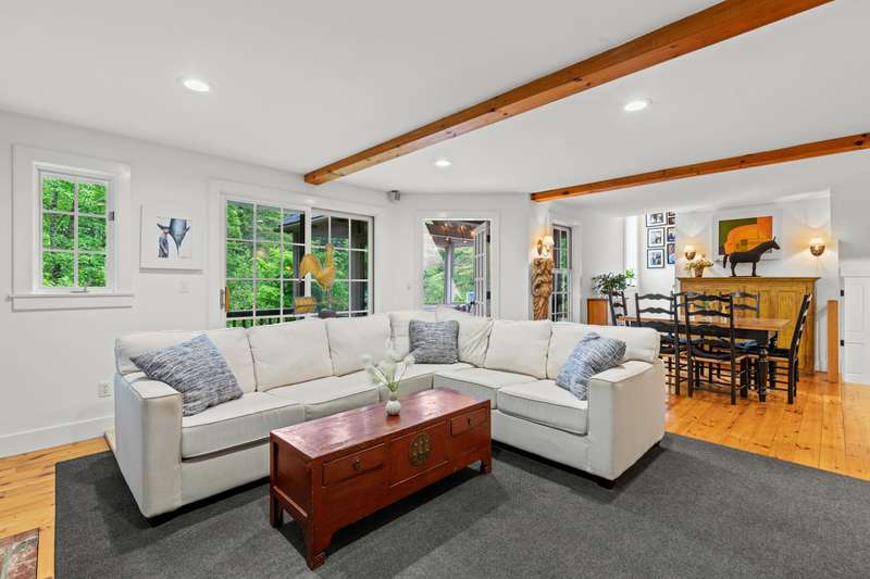 Nestled on 9.21 acres of wooded land, this beautiful property offers the perfect blend of privacy, comfort, and convenience - just a few minutes drive to Yarmouth Village and steps to Pratt's Brook Park, with its 220 acres and six miles of walking and cross-country skiing trails. A winding 600-foot driveway leads you from Ledge Road to a meticulously maintained farmhouse, architecturally designed and built in 2000. Encompassing over 3,800 square feet across three levels, this home provides generous living spaces and indoor parking for three vehicles. The first floor welcomes you with a relaxed, open-concept layout featuring a large kitchen with a center island and walk-in pantry, adjoining a spacious dining area and cozy family room with a wood stove. Just beyond, a screened three-season porch overlooks the backyard and the heated, in-ground pool-perfect for entertaining or quiet summer evenings. A separate living room with a wood-burning fireplace, mudroom entry, and half bath complete the main level. Upstairs, you'll find four spacious bedrooms, including a serene primary suite with a walk-in closet, renovated master bath, and a private adjoining office. Two additional fully updated bathrooms serve the other bedrooms, offering comfort and modern convenience for family or guests. The lower level consists of 550 square feet of finished gym/playroom and a full, separate workshop. The home also includes a central air conditioning system. An adjacent 3.12-acre parcel is also available for purchase at a reduced rate to the buyer of this property, providing the opportunity to expand or develop one or two additional lots. Located in the desirable Ledge Road neighborhood, this home offers a rare combination of seclusion, natural beauty, and community, just minutes from Yarmouth's award-winning public schools and charming village amenities.
