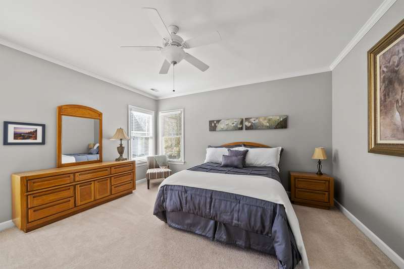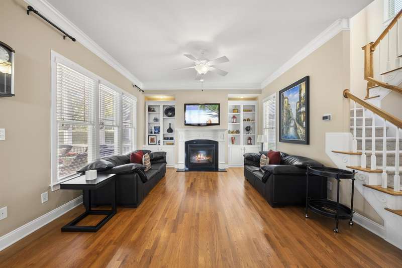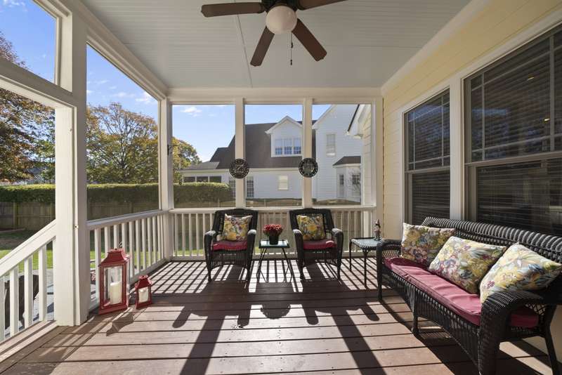 Your Charleston style home awaits you! Located in the popular Bedford at Falls River neighborhood, featuring a large fenced-in backyard and 3 porches! Enter through the front door onto a private porch. Once inside the main door, enjoy the beautiful hardwoods and a large family room with custom built-in cabinets on either side of the fireplace. Then pass through into the dining room which can also be used as an office space. Make your way past a generous sized butlers pantry and large walk-in pantry, to a large kitchen overlooking a breakfast nook and view into the family room. Enjoy your morning coffee on the screened porch overlooking the private backyard. Upstairs find an owner suite with large bathroom featuring individual vanities, huge walk-in shower, large closet, and garden tub. Plus 2 additional bedrooms with a jack and jill bath. Do not miss the large bonus room! This home has many living spaces both inside and out. New roof 2020, new water heater 2019, new HVAC systems 2019 and 2021, new garage door opener and rollers 2025. Do not miss the quiet community park across the street from the property. Walk to the neighborhood pool, tennis, and pickleball courts PLUS several playgrounds throughout the community. Retail and shopping within and surrounding the area, plus easy access to Hwy 540 and US 1. Turn key and ready for its next owner, be sure to visit soon, this one is a charmer!