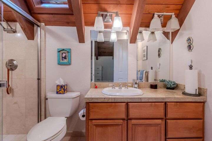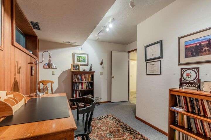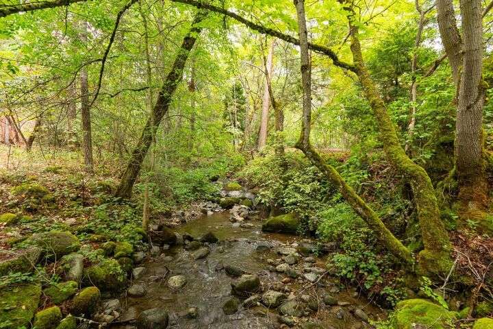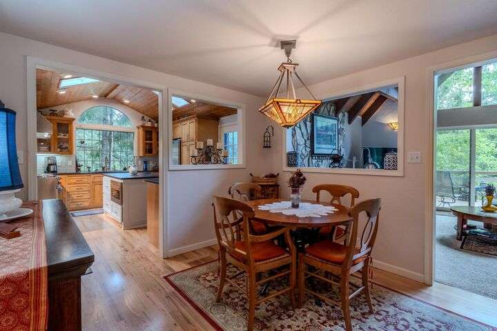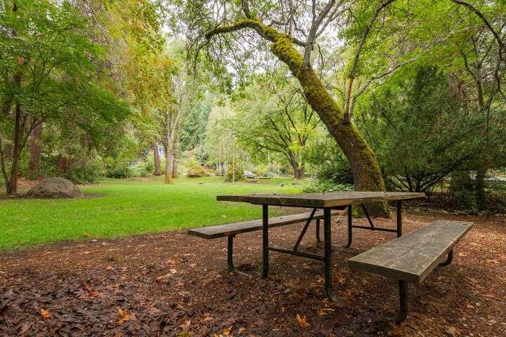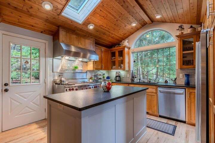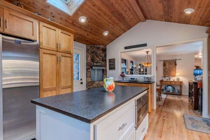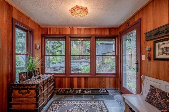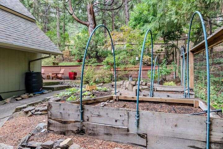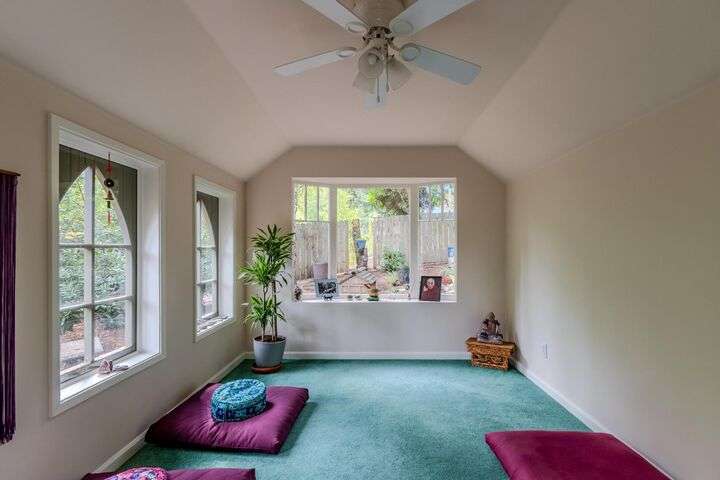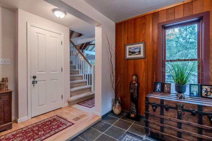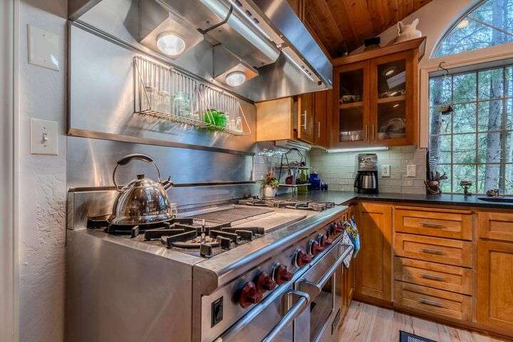 This storybook home blends timeless charm w/thoughtful updates in a private setting across from Lithia Park. Tucked back from Granite street on landscaped .36-acre TID-irrigated lot among cedars & dogwoods, it offers both tranquility & convenience. Light-filled living room w/floor-to-ceiling windows opens to a roomy deck, the perfect spot for enjoying the melodious sounds of Ash Creek winding through the park. The remodeled gourmet kitchen features custom cabinetry, leathered granite, tile backsplash, island w/microwave drawer, gas Wolf range & gas pizza oven. Two main-level bdrms open to a fenced yard with patio & enchanting gardens, while the upstairs master suite delights w/walls of windows & built-ins. The lower level provides laundry, 2-car garage, workshop, darkroom & bonus rooms. Detached flexible-use studio ideal for meditation, home office, hobbies. Moments from OR Shakespeare Fest, dining, skiing & trails, pickleball, Japanese gardens, this is a truly special & lovely home!