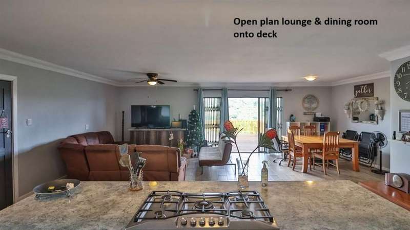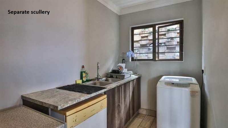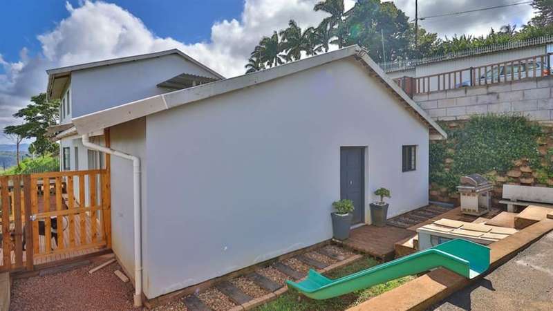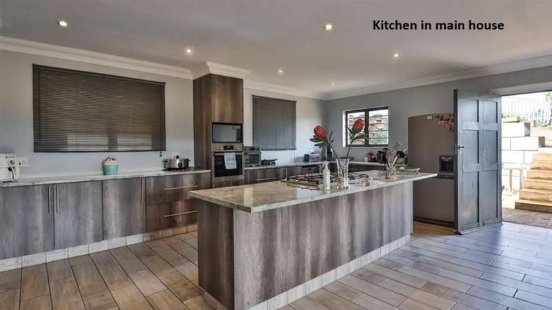 Situated on a tranquil street with a cul-de-sac, this home offers its new owners' numerous opportunities. The main house features four bedrooms with the master ensuite boasting a luxurious bathroom with double vanities, jet bath, and a private balcony. The family bathroom is equipped with a large custom-made bath, and there is an additional guest toilet. The open plan living area features a modern kitchen with a separate scullery, has an eye-level oven, and a gas hob built into a centre island that faces the lounge, allowing you watch your favourite shows while cooking dinner. The open plan lounge dining area has a sliding door that opens onto a large deck with breathtaking of the Gorge. Additionally, there is a one-bedroom cottage located above the main house with its own entrance. It features a private patio, an open-plan kitchen and lounge, a modern bathroom, guest toilet, and large bedroom. The cottage offers expansive open-plan living with the potential to be converted into a two-bedroom space - excellent for extended family or to supplement your bond with rental income The large workshop and Garage fit for 4 vehicles and additional 4 open parking days offers a work from home opportunity or serves as a great space for hobby enthusiasts Spacious property with breathtaking views of the gorge, and resident various wildlife including antelope. Conveniently positioned with easy access to the M13, a variety of public and private schools and less than 4km from Fields Hill shopping centre and Kloof village mall Fully fenced, automated gate and alarm system