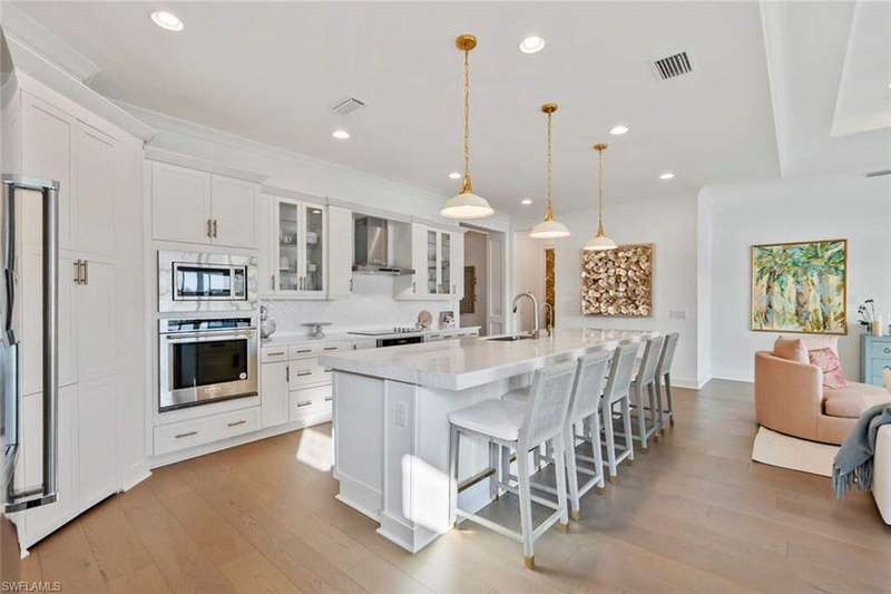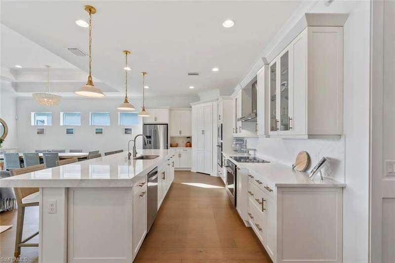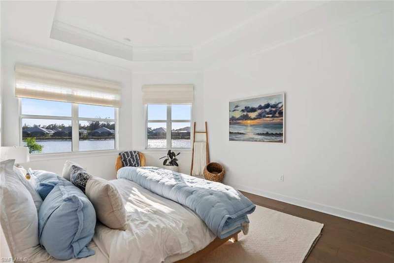 8791 Calypso is a superb single family home, nestled in undoubtedly one of the most popular communities in Naples, and offers both expansive water and west facing sunset views! This exceptional house includes a wealth of features and generous living room with high ceilings, upgrades galore, plenty of natural light and sense of space. A masterful fusion of modern coastal design and elegance, offering an extensive amenity-rich lifestyle with Pickleball, Tennis, Bocce, Fitness Center, Lap and Resort Pool, Restaurant, as well as miles of walking and biking possibilities. On entering this home the key reception areas flow effortlessly from the welcoming hallway, into a fabulous great room with bespoke kitchen, offering plenty of storage, walk-in pantry, quartz countertops and central breakfast island. Dining and living areas with sliding doors opening onto the lanai and pool area, (fabulous pool is in the process of being built - estimated completion January 2026) provide for al-fresco or inside dining and entertaining for family and friends. Four generous sized bedrooms, with the primary suite complete with built in wardrobes in the walk-in closets, and luxurious ensuite bathroom benefitting from dual vanities, walk-in shower and bath. Along with a fabulous study from which to work, there is also a good sized laundry room, powder room and integral double garage. The Isles of Collier Preserve is located next to Naples Botanical Gardens, Naples Pickleball Center, Bayshore Arts District and Bayview Park, fun local restaurants including the Celebration Park and is also minutes from downtown Naples dining, shopping and white sandy beaches